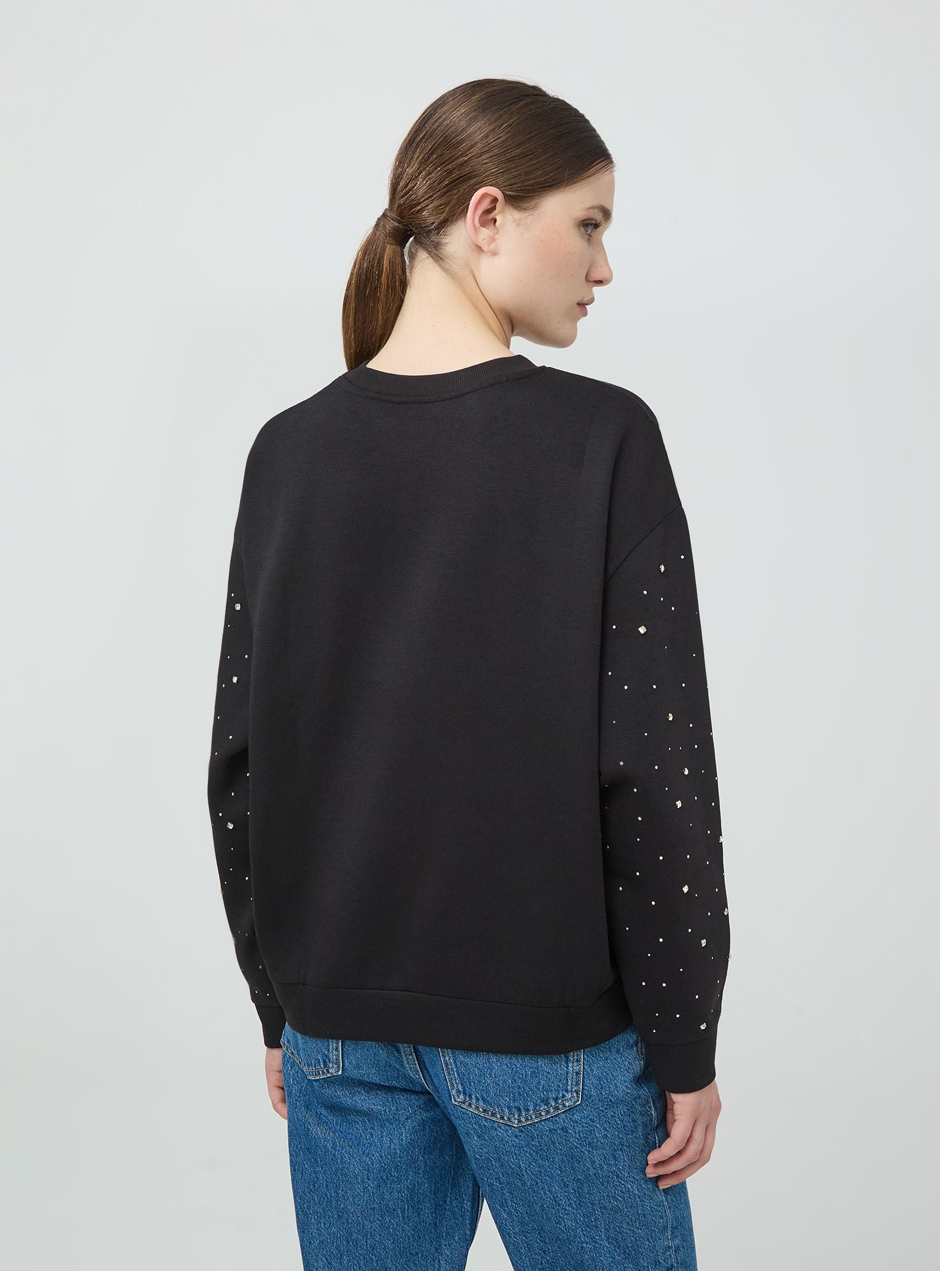 Felpa ampia senza cappuccio con strass nelle maniche