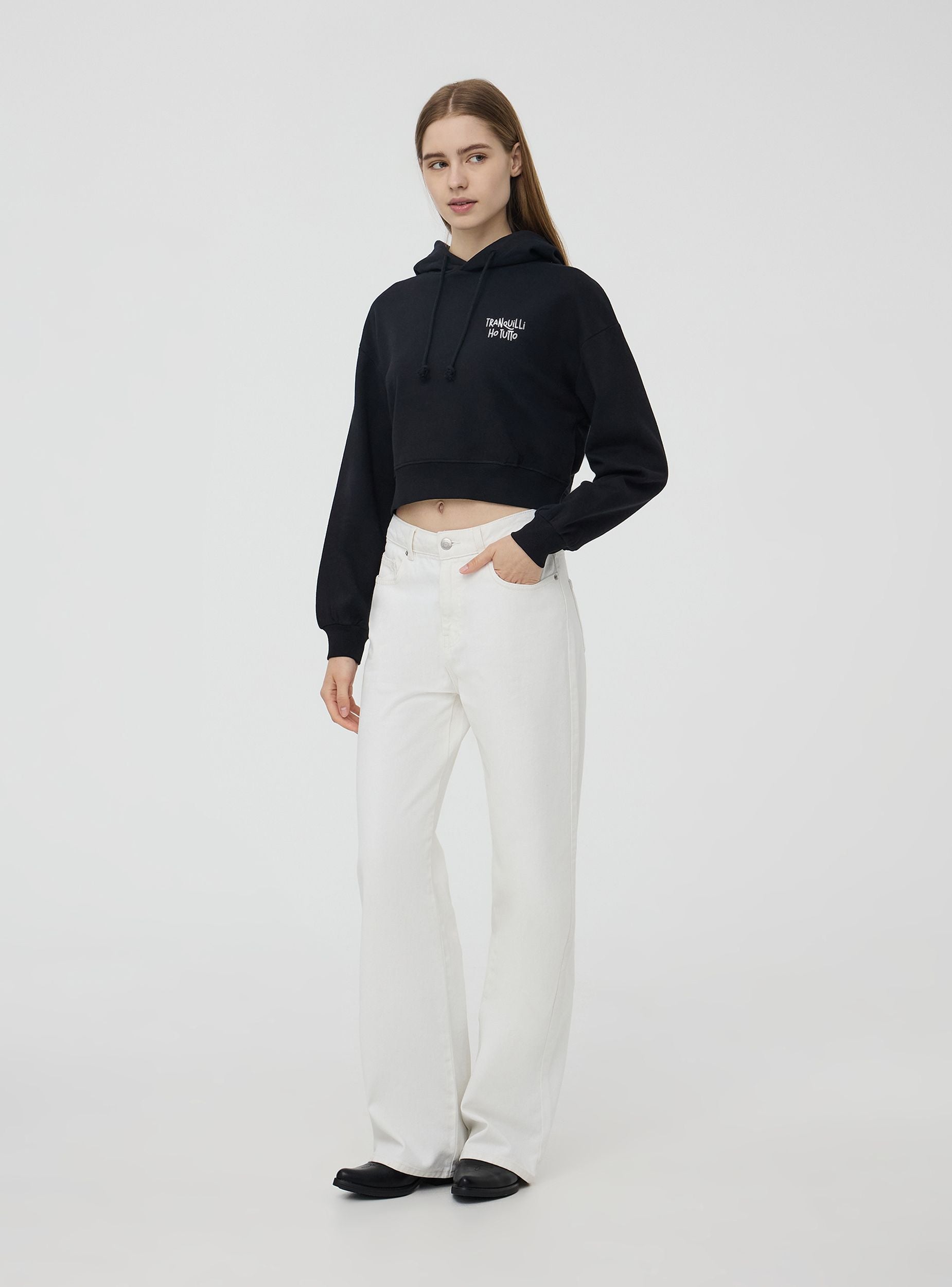 Felpa crop pesante con cappuccio e scritte