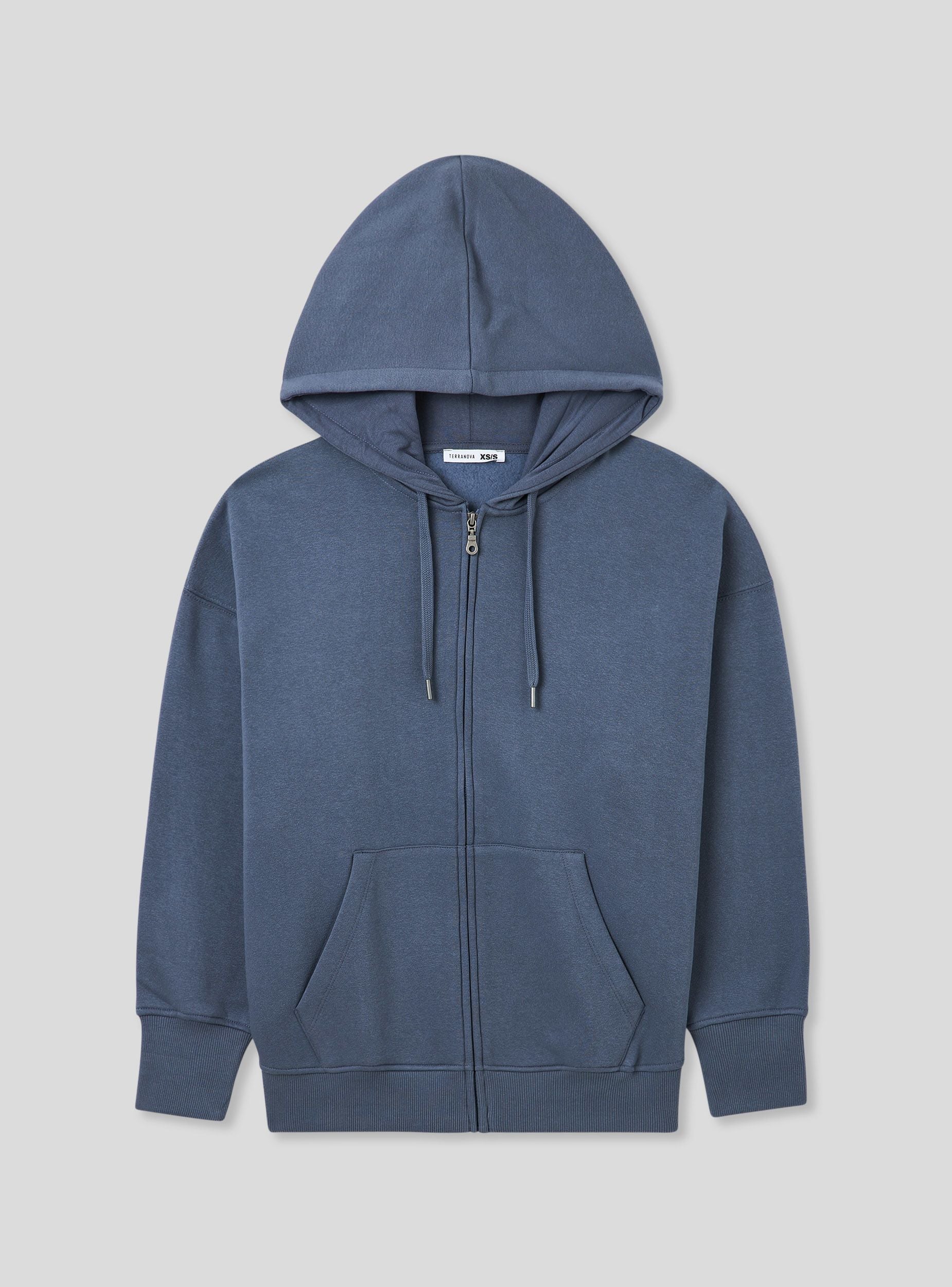Felpa pesante maxi con cappuccio e zip a tinta unita
