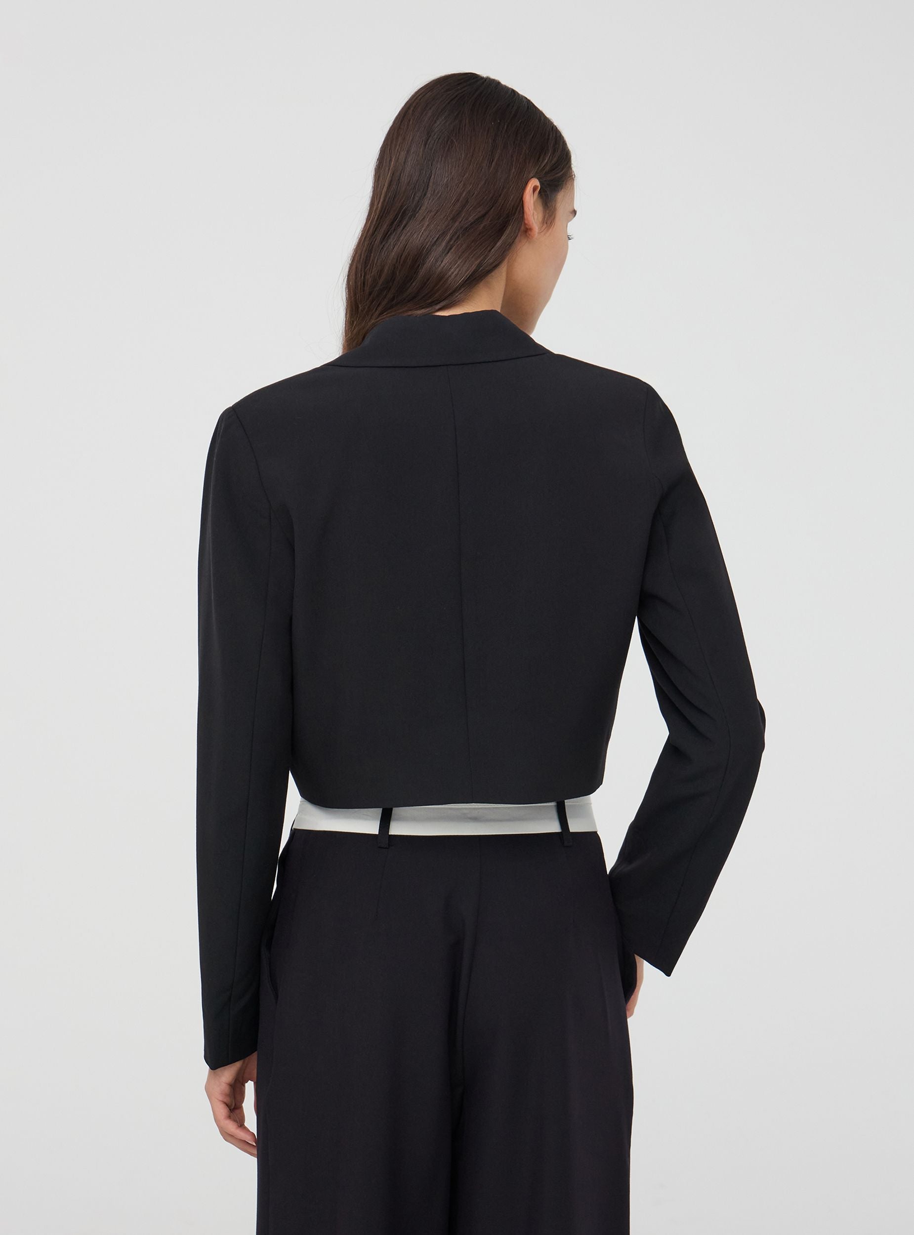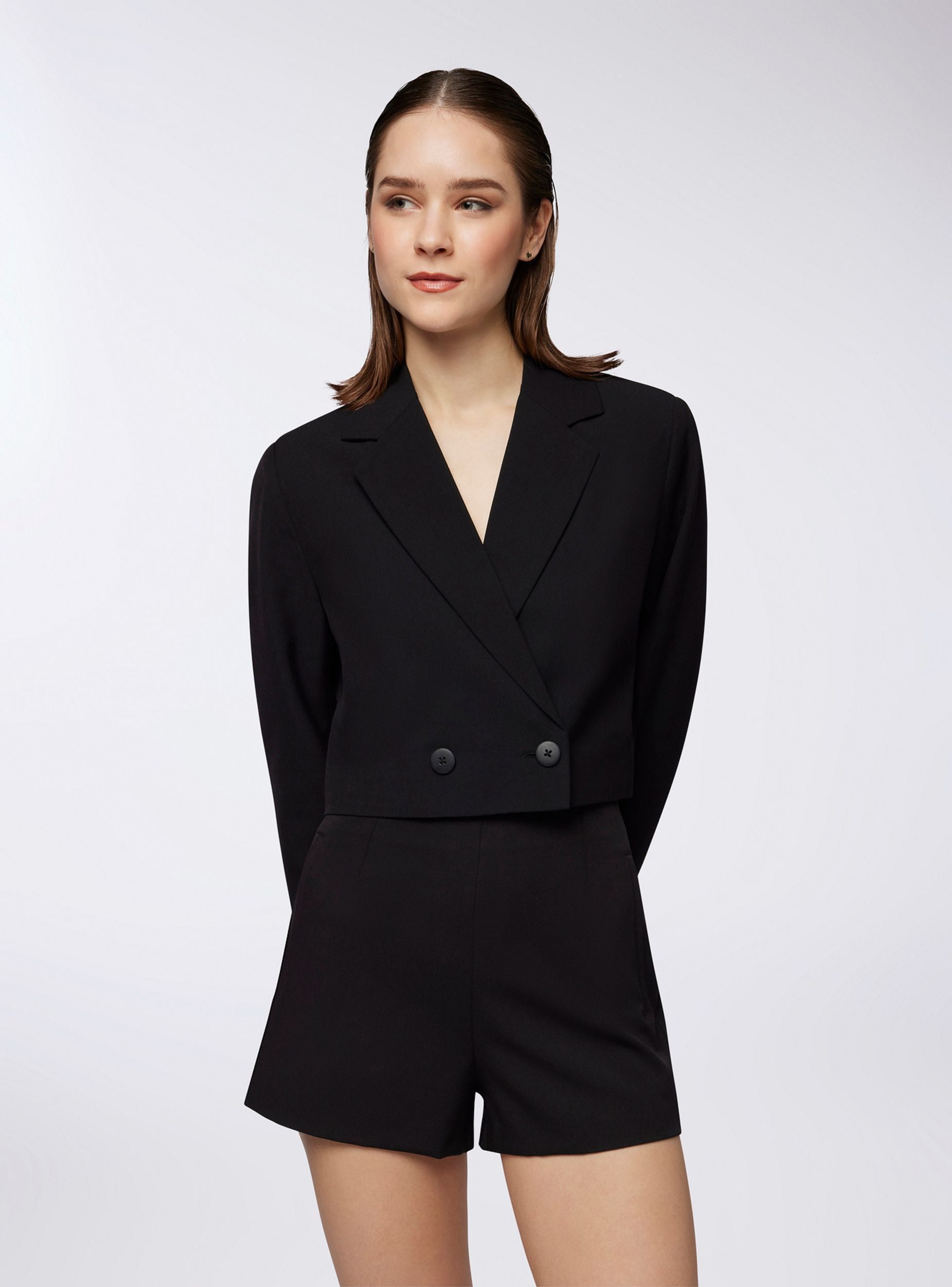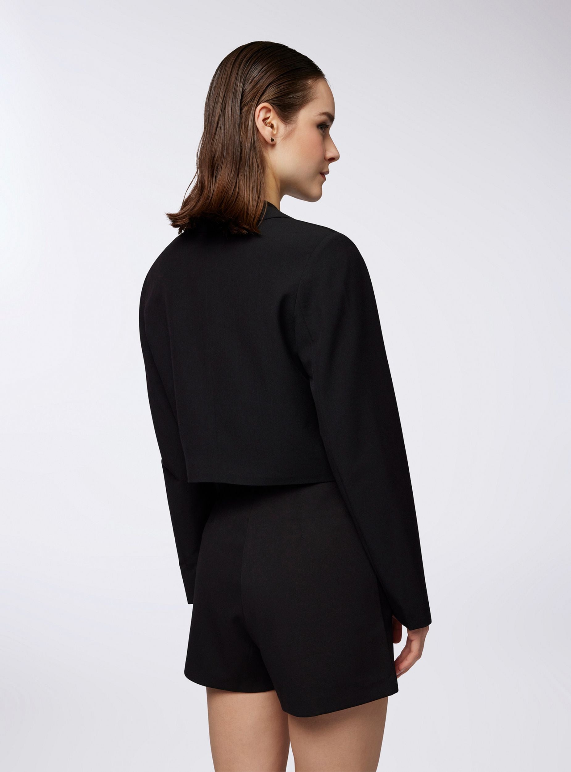 Giacca da donna a tinta unita, con spalle imbottite, dal design moderno e raffinato. Il modello crop aggiunge un tocco di originalità, perfetto per outfit sofisticati e contemporanei. Caratterizzata da bottoni sul davanti e maniche lunghe, è ideale per completare look eleganti o casual-chic. Versatile e femminile, si abbina perfettamente a pantaloni a vita alta o gonne midi.
