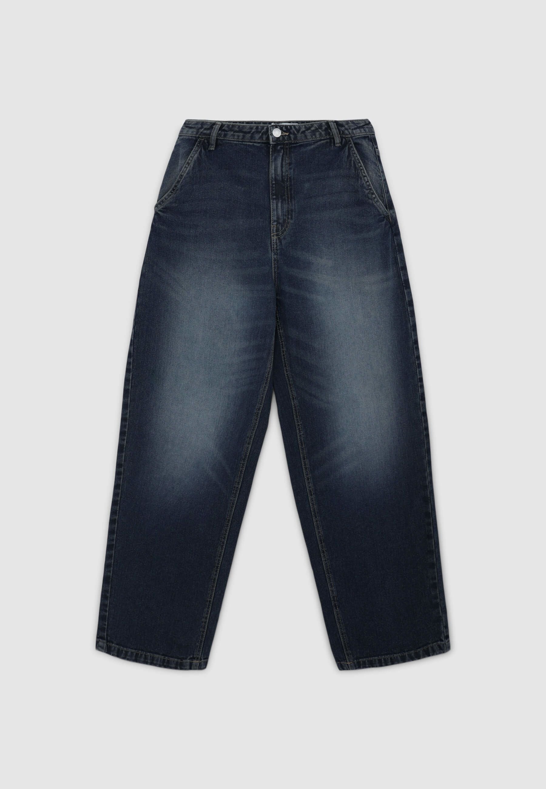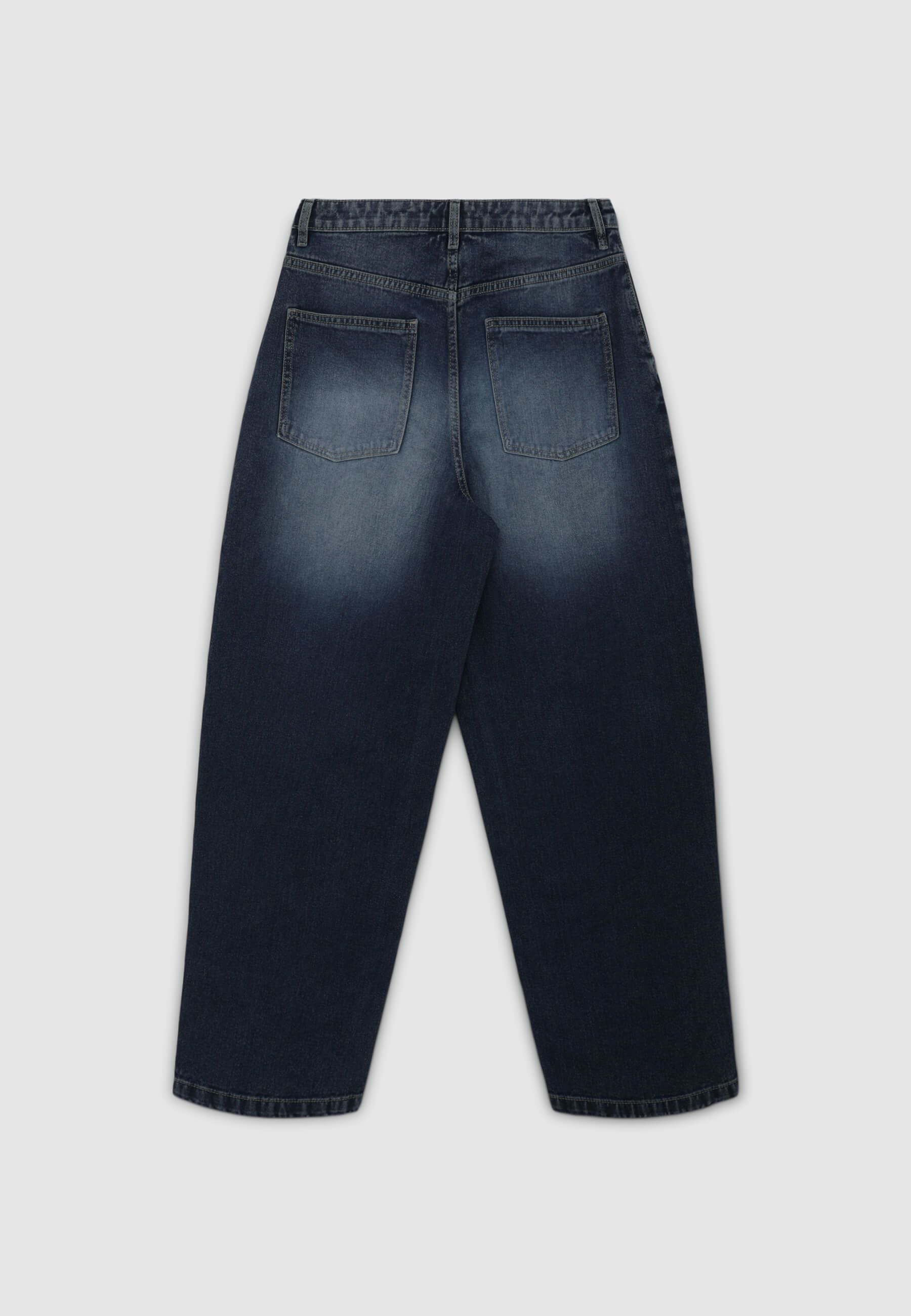 Jeans baggy da donna dal lavaggio scuro e una vestibilità ampia per un look casual e confortevole. Caratterizzati da un design con due tasche frontali e due tasche sul retro, e passanti per cintura in vita. Chiusura con bottone e cerniera. Mentre il taglio rilassato sulle gambe dona un tocco moderno e alla moda. Ideali per un outfit quotidiano e versatile, si abbinano facilmente a t-shirt, felpe e sneakers per un look casual e disinvolto.