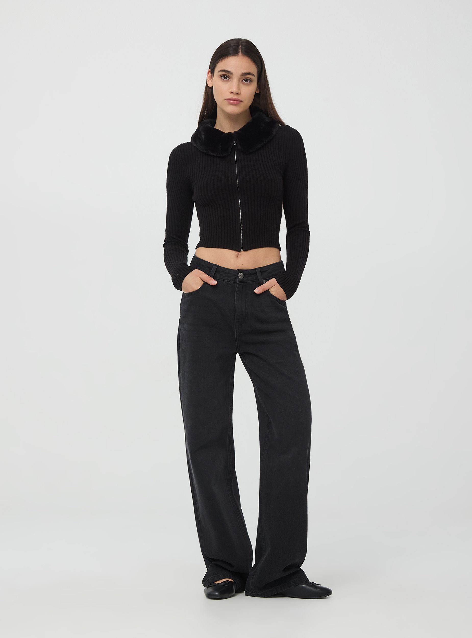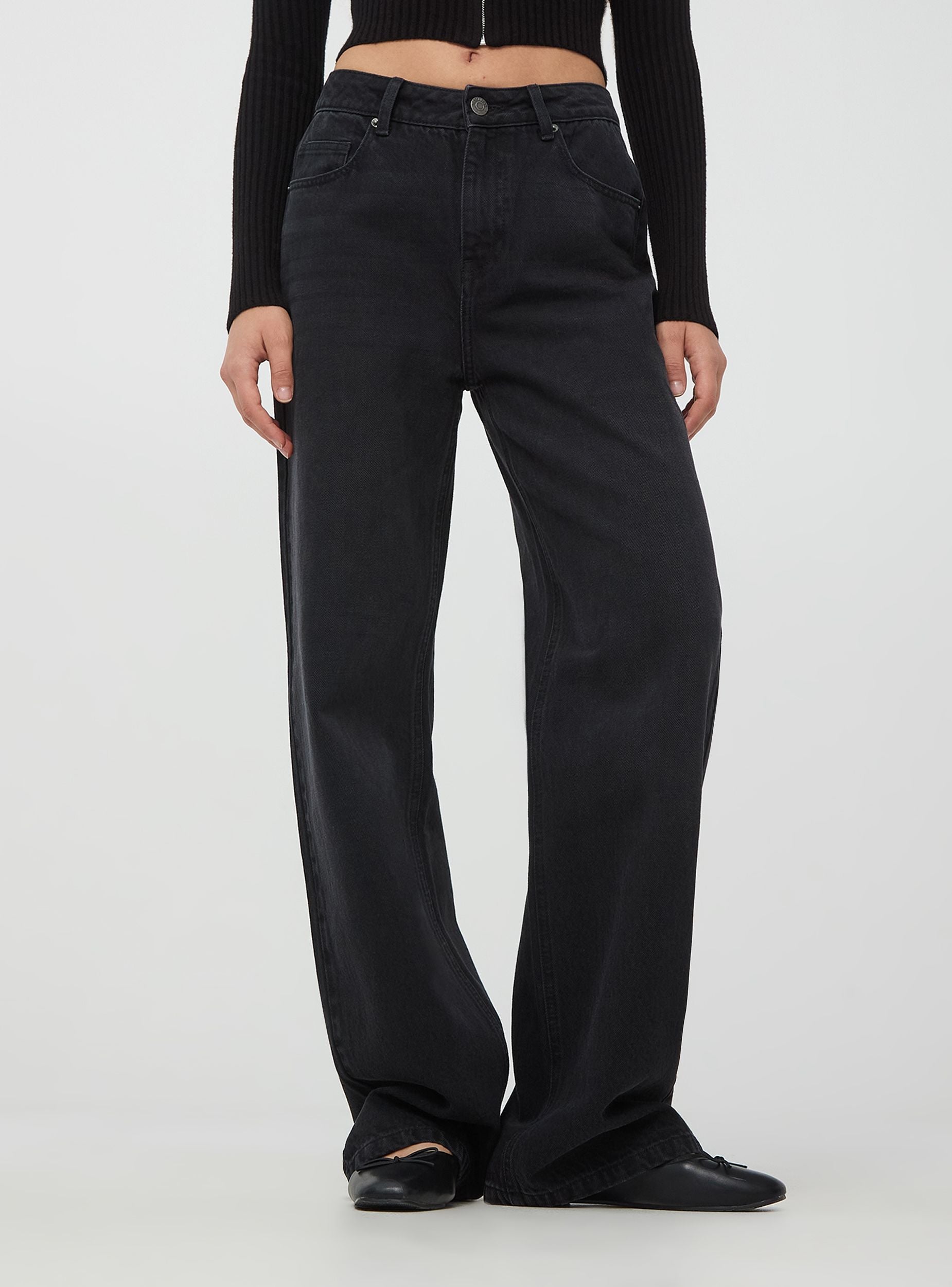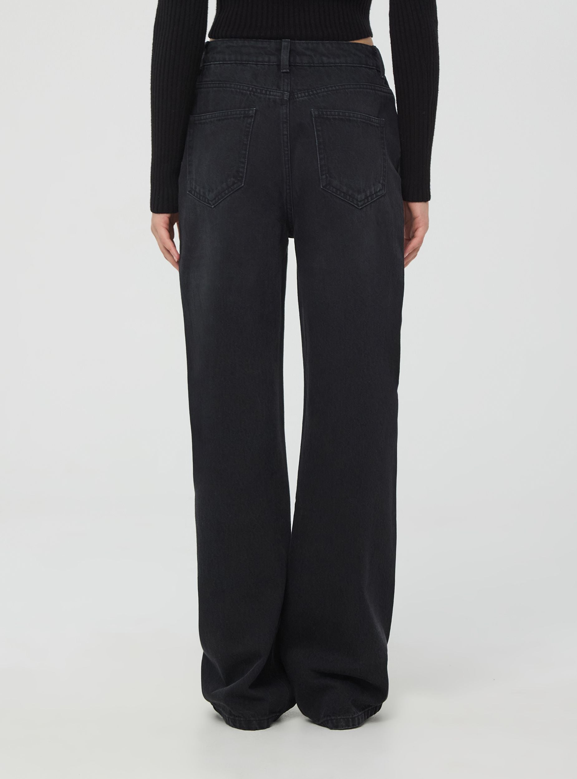 Jeans neri wide leg da donna, modello cinque tasche con passanti in vita e chiusura con bottone e zip. La gamba ampia offre una vestibilità rilassata e confortevole. Ideali per un look casual e moderno, questi jeans sono perfetti per essere indossati sia di giorno che di sera. Abbinali a una maglietta basica per un outfit quotidiano o a una blusa elegante per un tocco più sofisticato. Capo basic indispensabile nel guardaroba di ogni donna.Dettagli