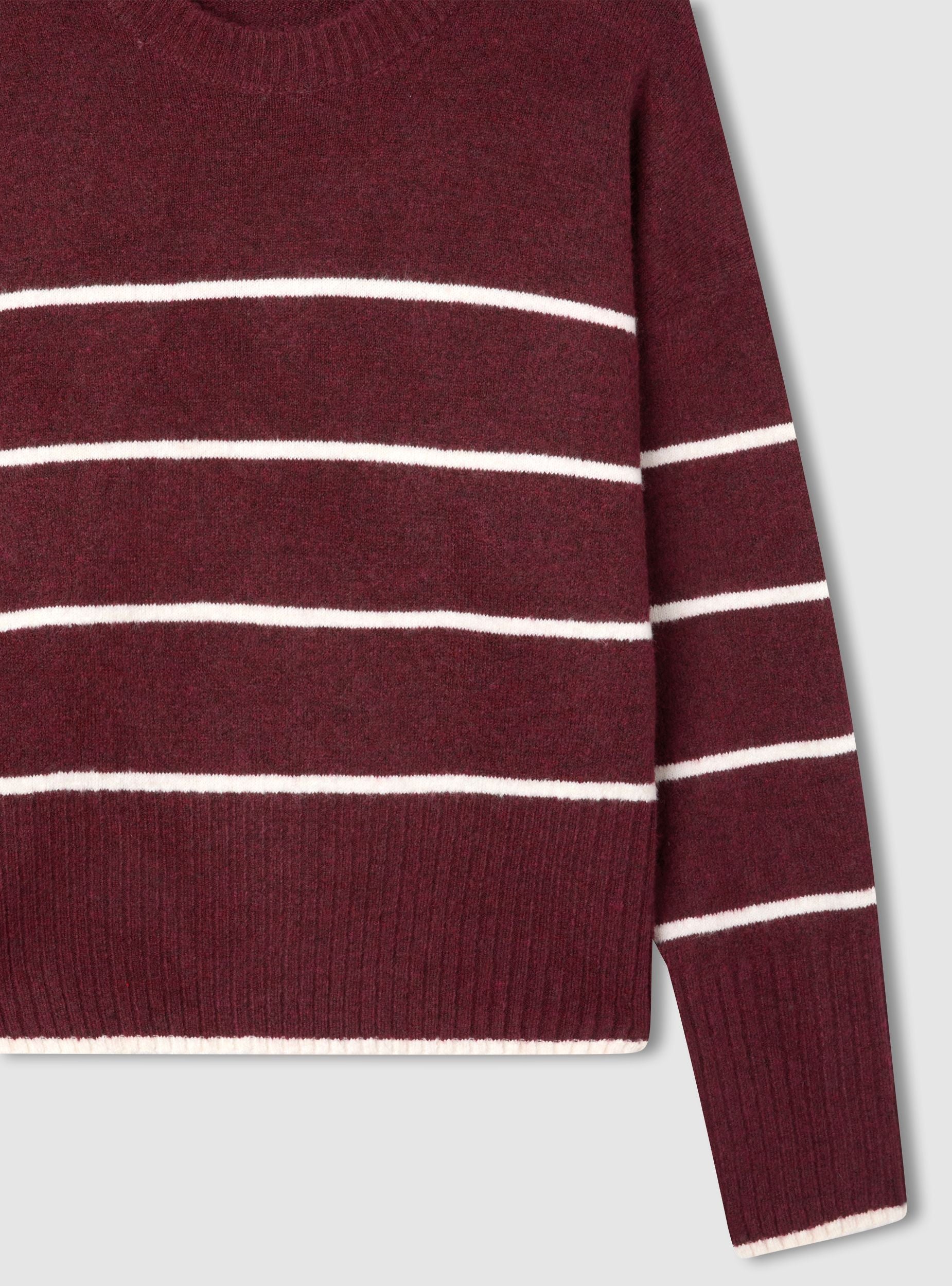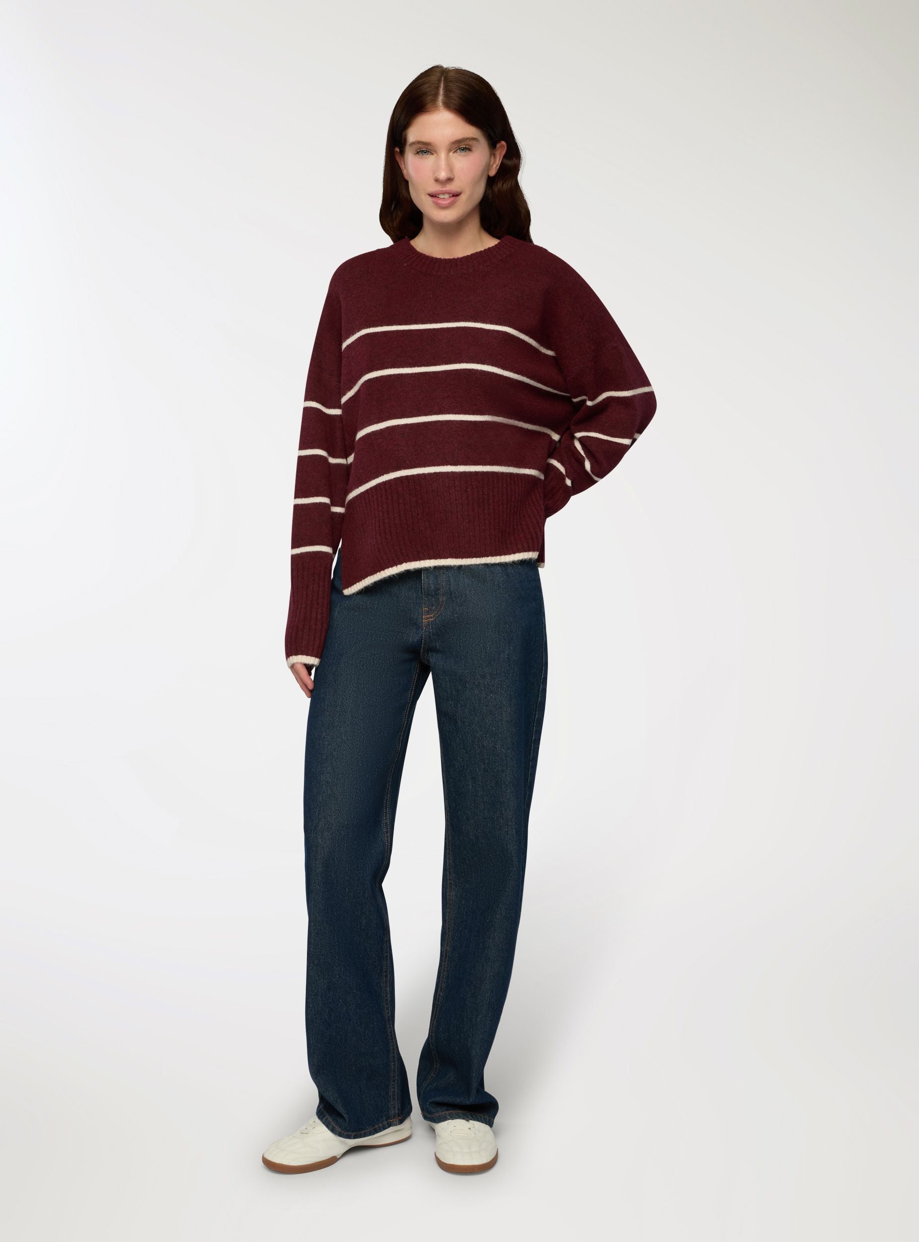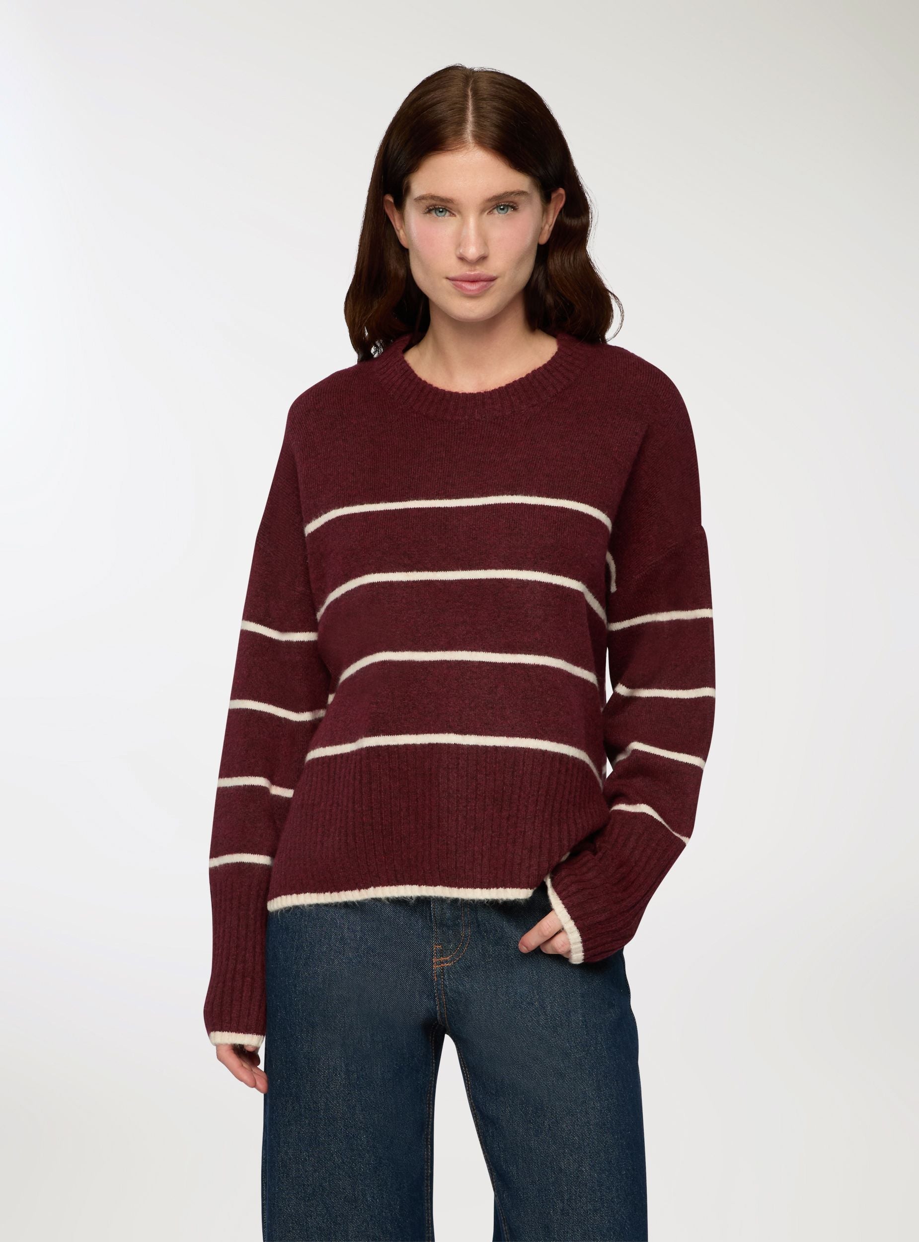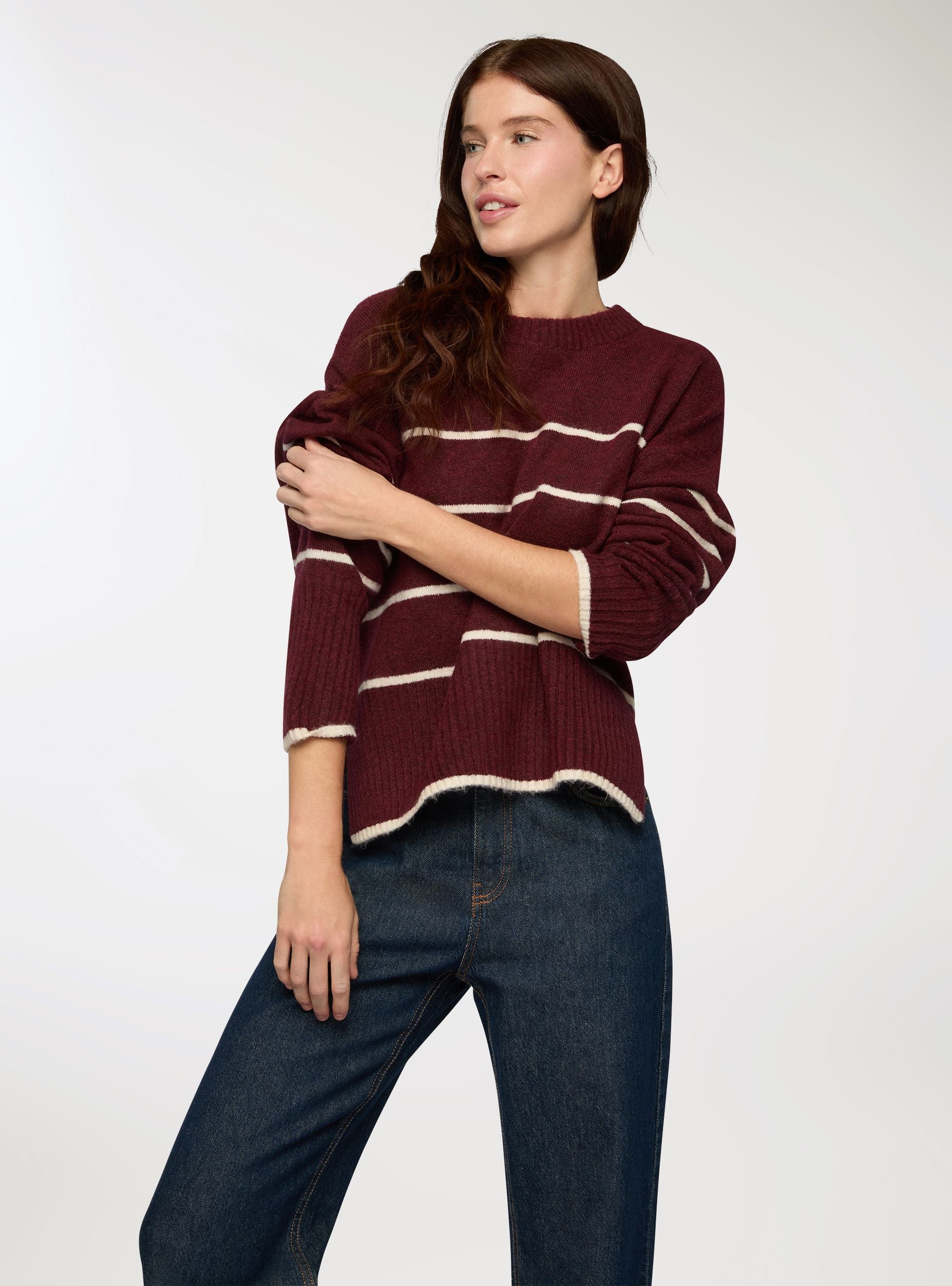 Maglia da donna con design a righe, ideale per un look casual e versatile. Presenta una vestibilità ampia con spacchi laterali, perfetta per abbinamenti con jeans o gonne. Il girocollo e le maniche lunghe aggiungono comfort e stile, rendendola adatta a diverse occasioni. Un capo che unisce praticità e moda.