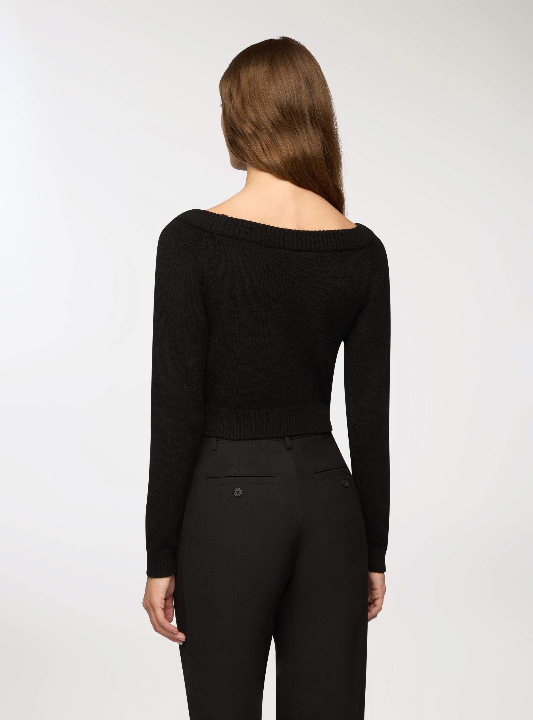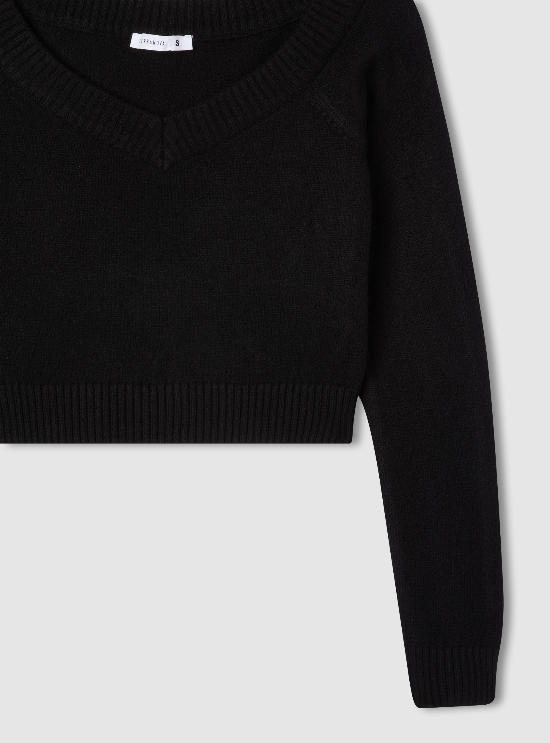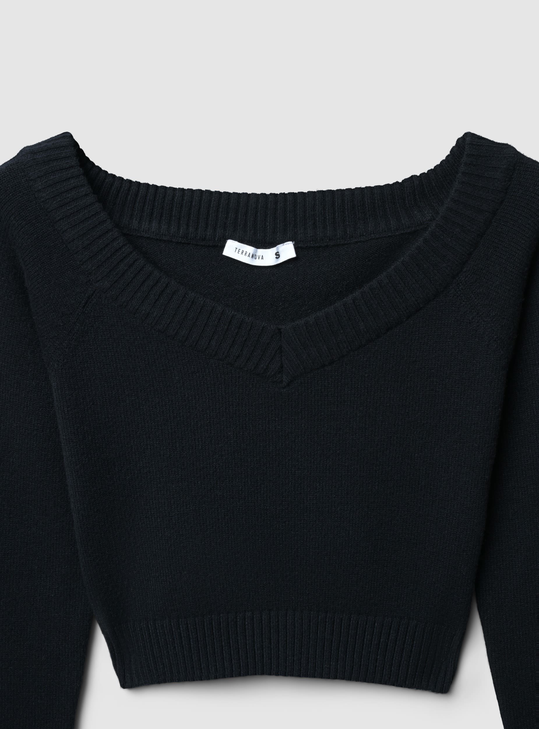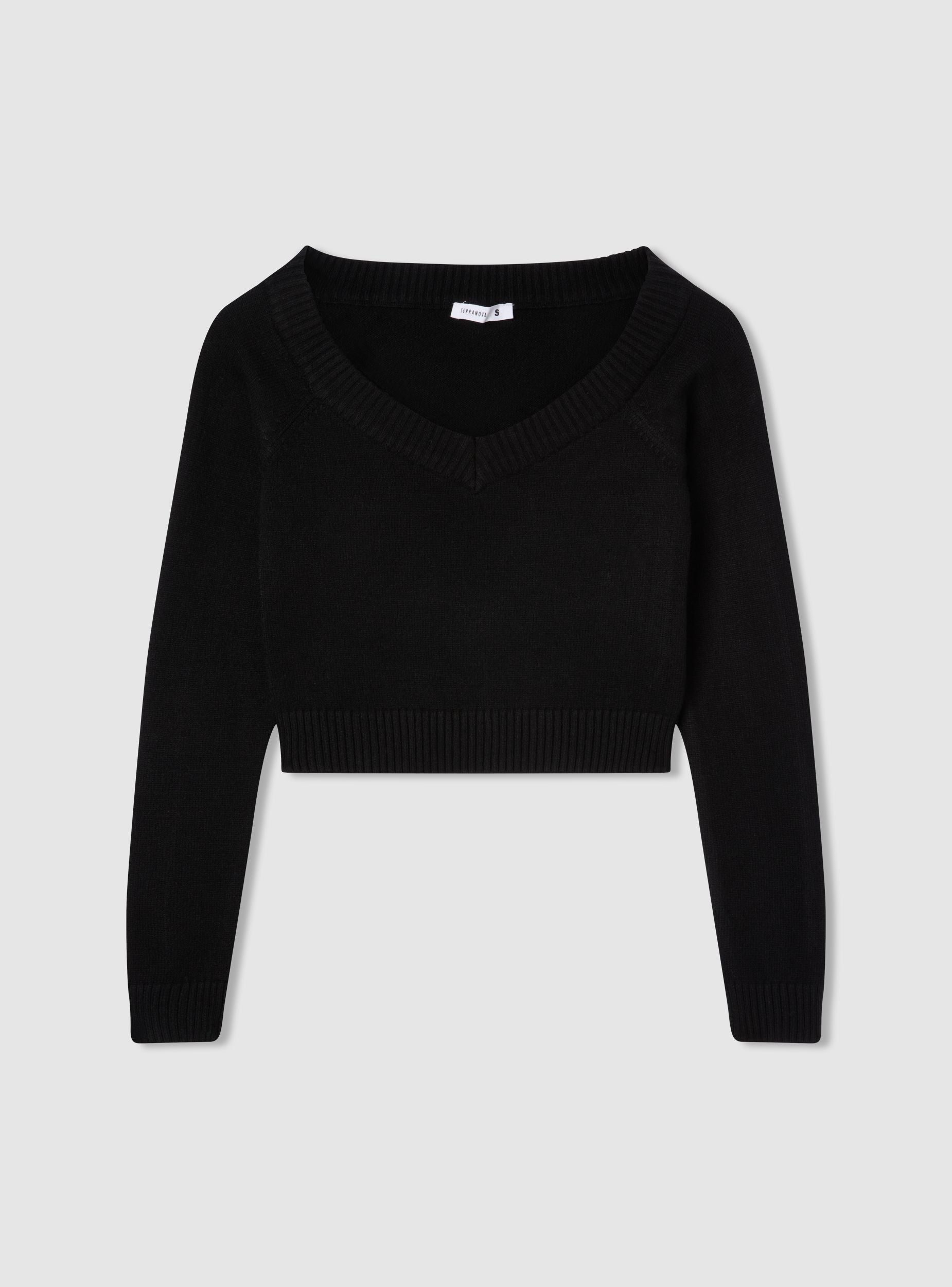 Maglia da donna con scollo a V ampio che lascia le spalle scoperte e vestibilità crop. Ideale per un look casual e moderno, si abbina perfettamente a jeans o gonne a vita alta. Le maniche lunghe e il design semplice la rendono versatile per diverse occasioni, dal tempo libero a un'uscita informale. Perfetta per chi cerca uno stile comodo e alla moda.