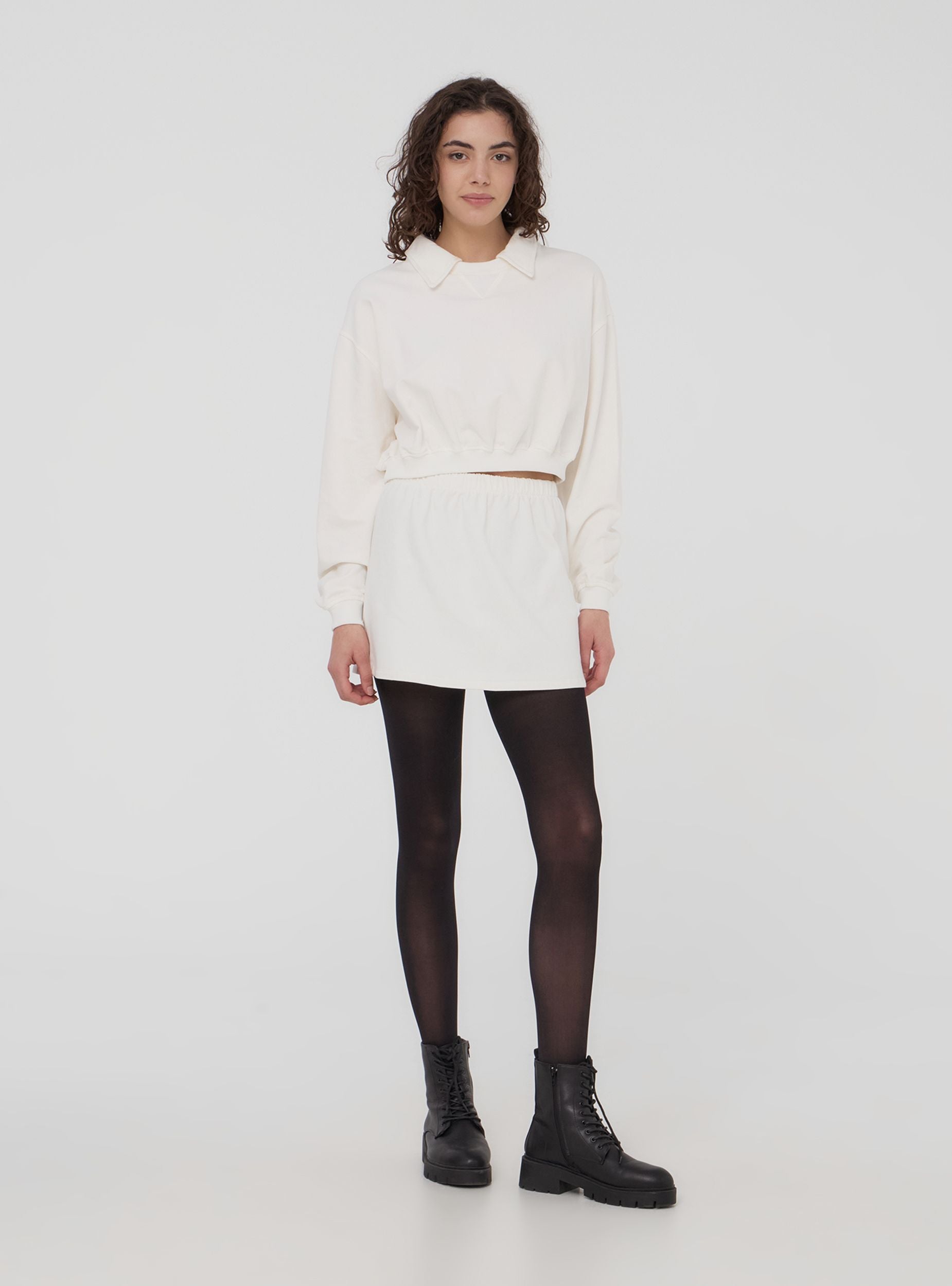 Minigonna in felpa da donna, pensata per chi cerca un look casual e comodo senza rinunciare allo stile. La linea essenziale e il taglio morbido offrono una vestibilità rilassata e versatile, perfetta per accompagnarti nelle giornate più informali. Garantisce praticità e comfort assicurando libertà di movimento. Un capo ideale per abbinamenti con t-shirt e felpe, per un outfit casual e contemporaneo.