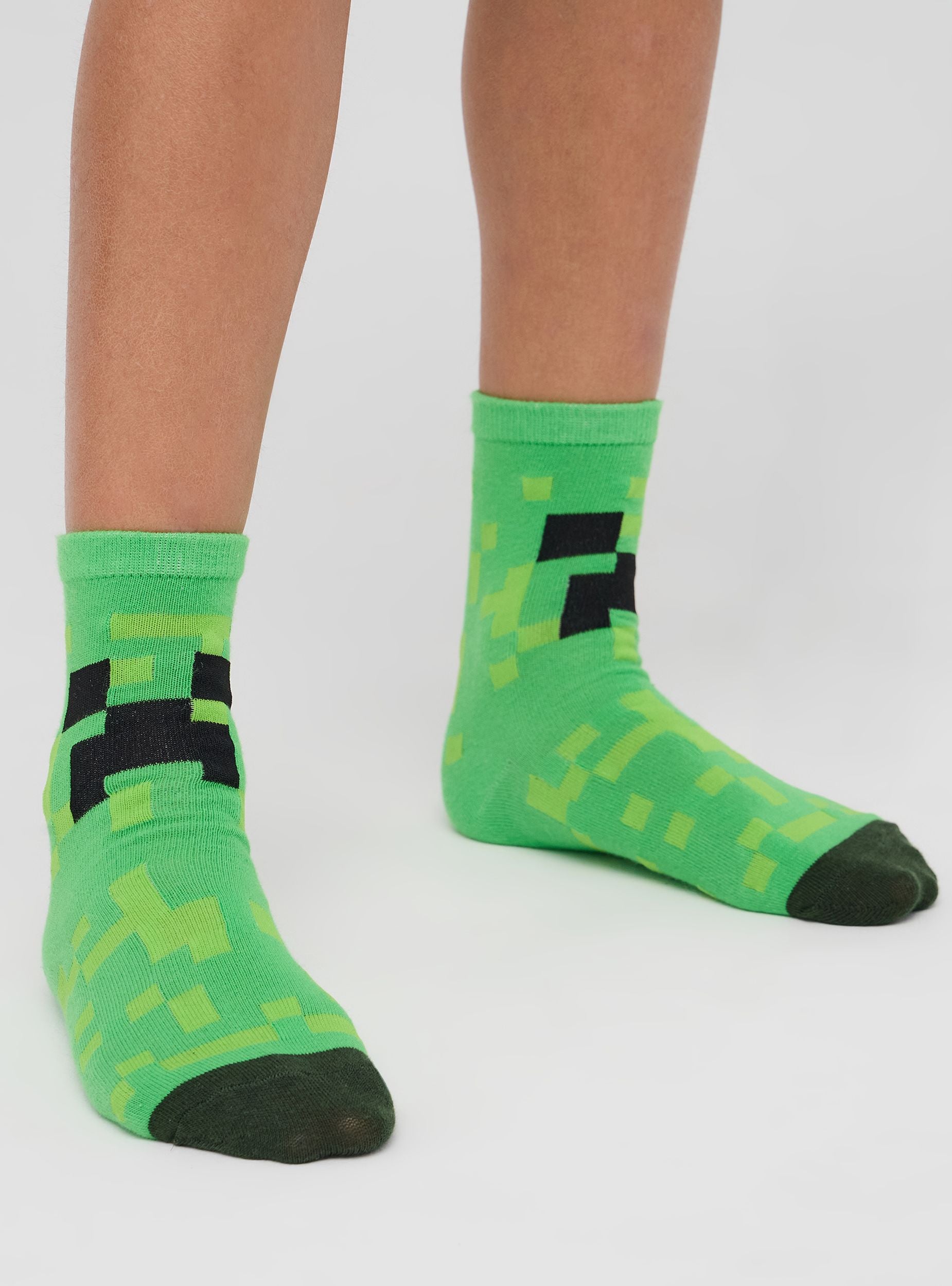 Confezione composta da 2 paia di calzini da bambino ispirati a Minecraft®. Il primo paio è decorato con un Creeper lungo tutta la calza. Il secondo paio presenta un design con un Creeper in movimento. Entrambi i modelli sono progettati per offrire comfort e resistenza, ideali per i piccoli fan di Minecraft che vogliono aggiungere un tocco di avventura al loro abbigliamento quotidiano.