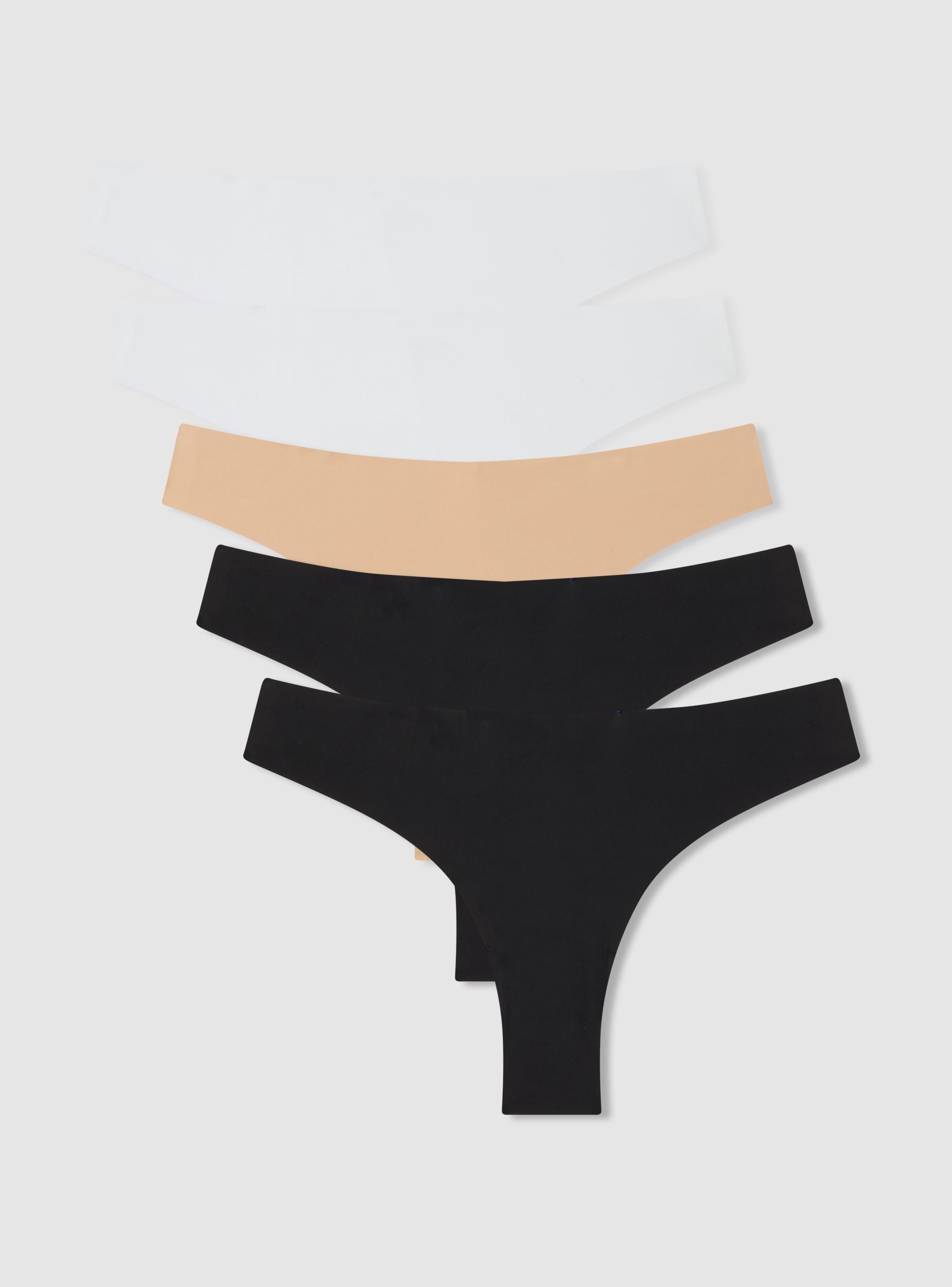 Confezione composta da 5 slip da donna, modello brasiliana in microfibra. Questi slip da donna con design brasiliana sono ideali per un look minimalista e confortevole. Perfetti per essere indossati sotto abiti aderenti grazie alla vestibilità senza cuciture. La tinta unita li rende versatili e adatti a molteplici occasioni. Un capo essenziale per il guardaroba femminile, garantendo comfort e stile in ogni momento.