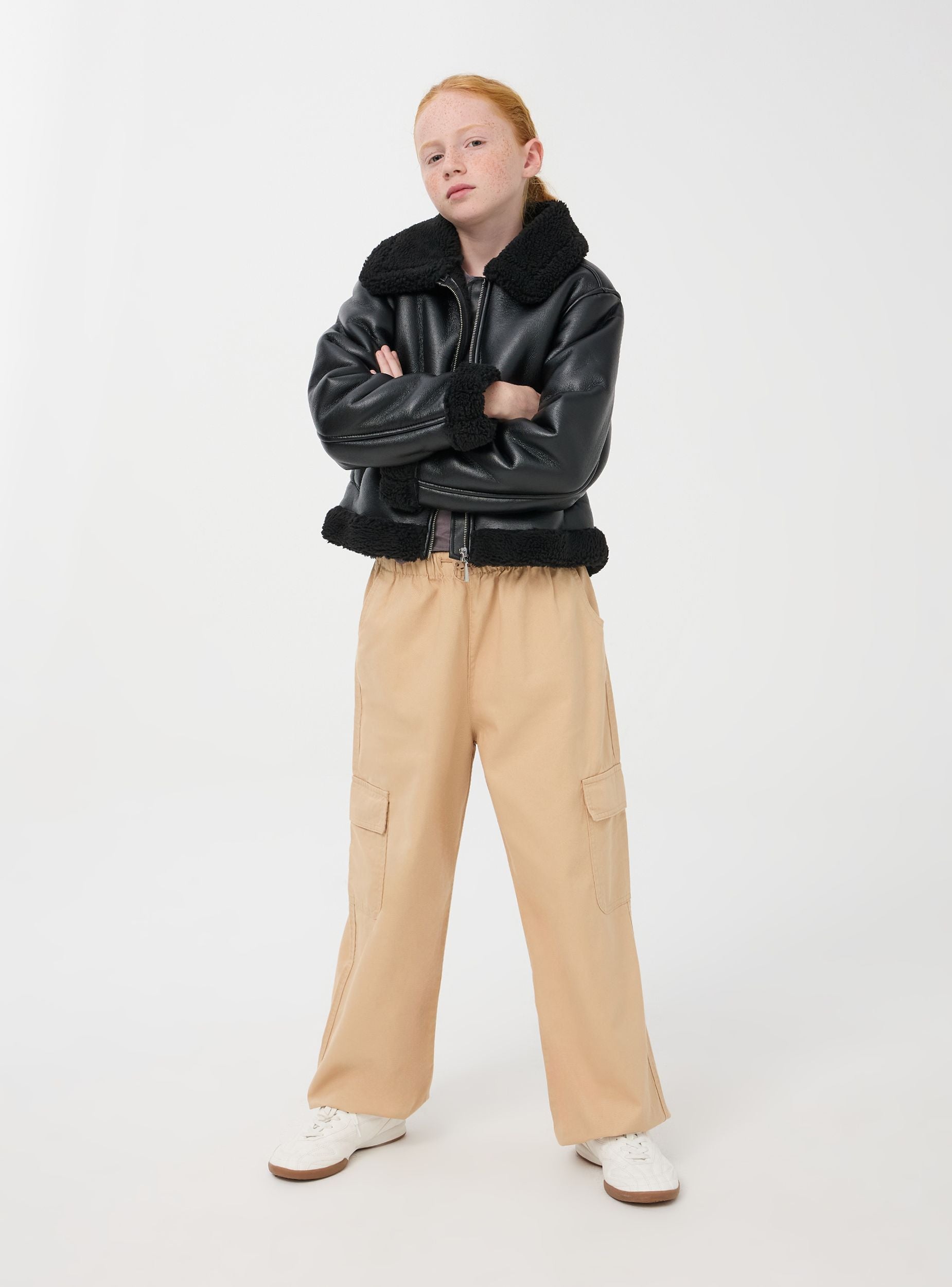 Questi pantaloni cargo da bambina in cotone a tinta unita offrono una combinazione perfetta di stile e funzionalità. Il materiale in cotone garantisce comfort e traspirabilità, ideale per un uso quotidiano. Presentano un design con elastico e stopper in vita ed elastico alle caviglie per una vestibilità comoda e rilassata. Le ampie tasche laterali con patta aggiungono praticità, rendendoli perfetti per un look casual e outdoor.
