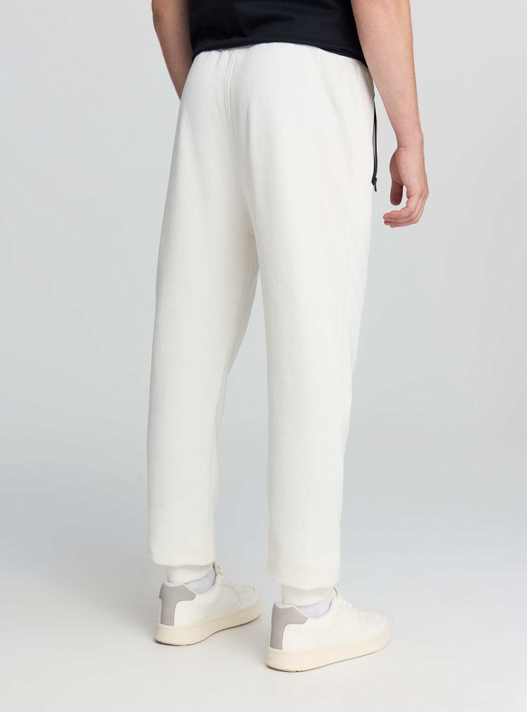 Pantaloni tecnici della tuta pesanti da uomo ideali per il tempo libero e le attività sportive. Presentano una vestibilità regular, fondo gamba con polsino elasticizzato e pratica coulisse regolabile in vita. Dotati di tasche laterali con zip per maggiore sicurezza e dettaglio di stampa con scritta sul davanti. Perfetti da abbinare a felpe o t-shirt per un look sportivo e versatile.Dettagli
