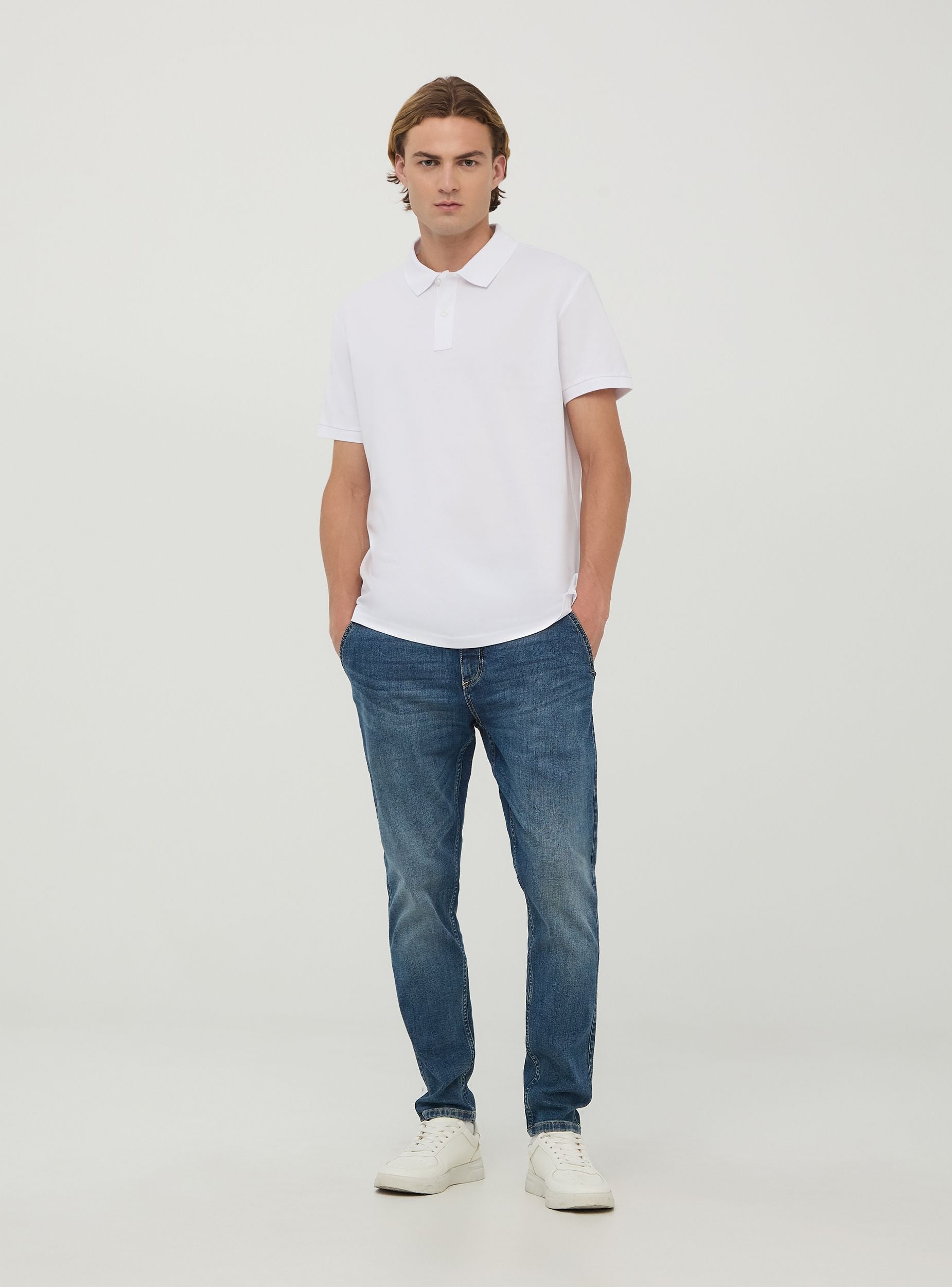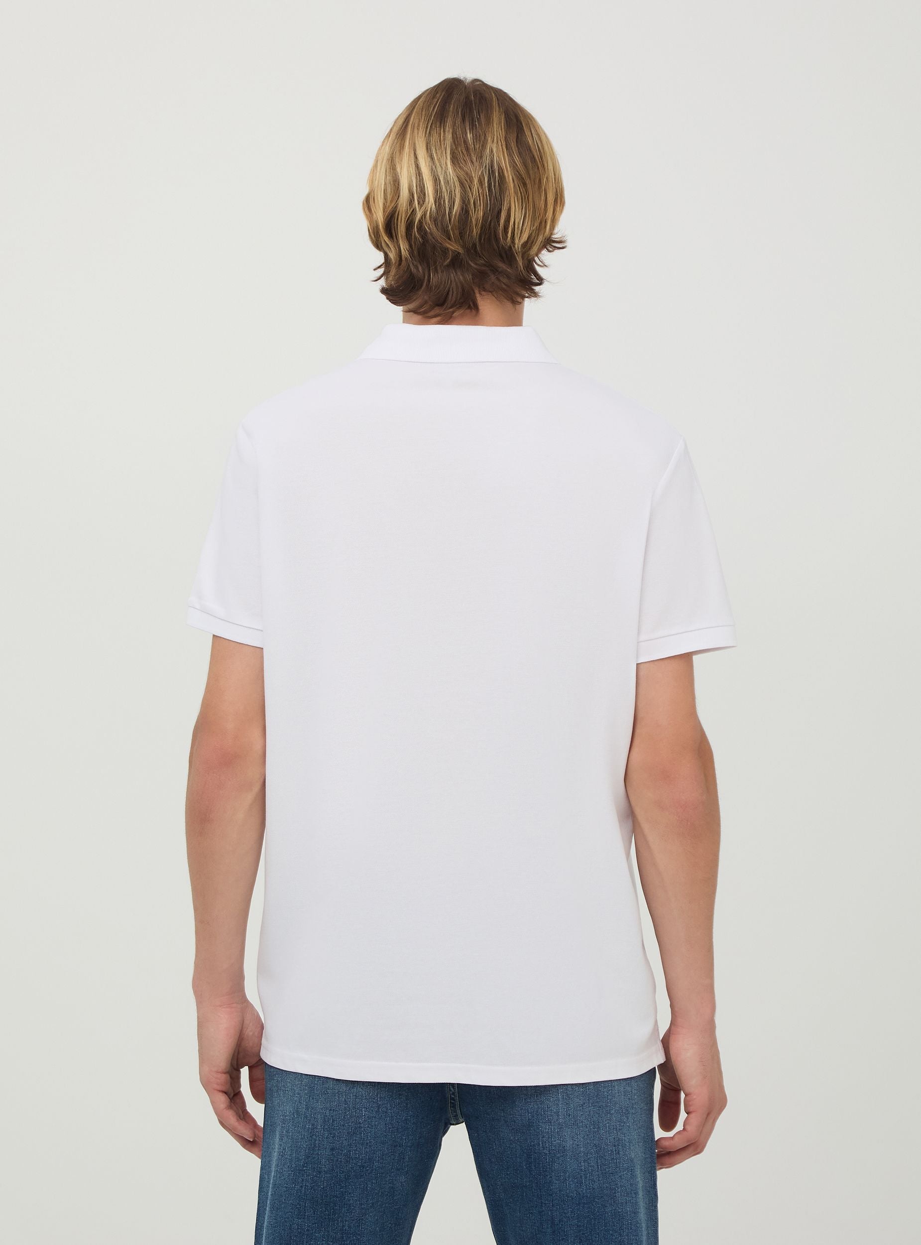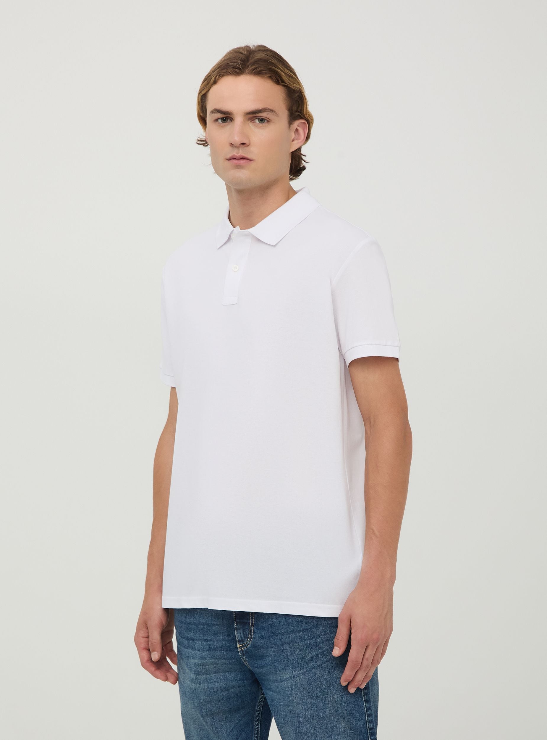 Maglietta da uomo modello polo a tinta unita. Tessuto in cotone piquet. Modello a maniche corte con colletto classico con bottoni. Vestibilità regular.Dettagli