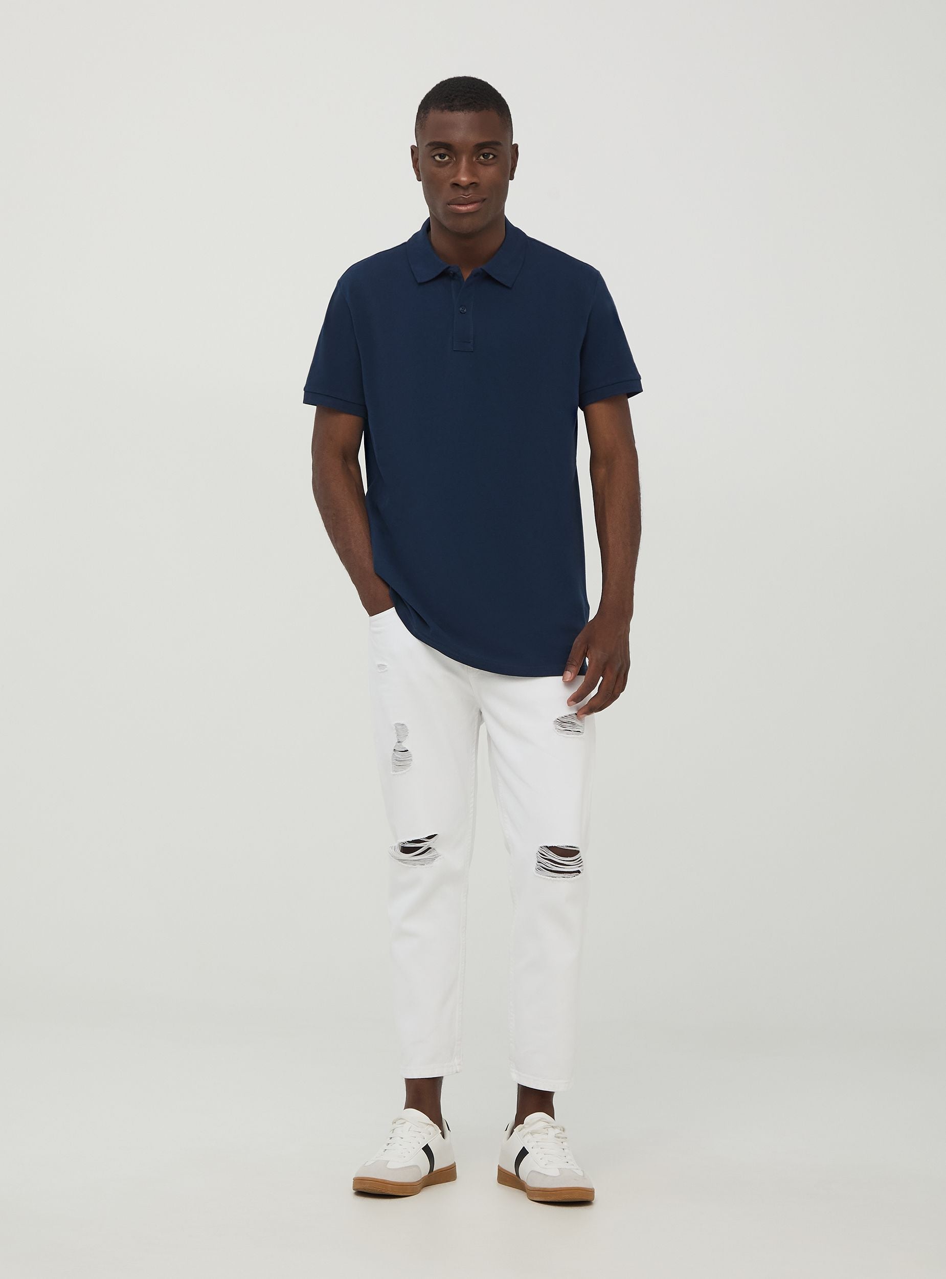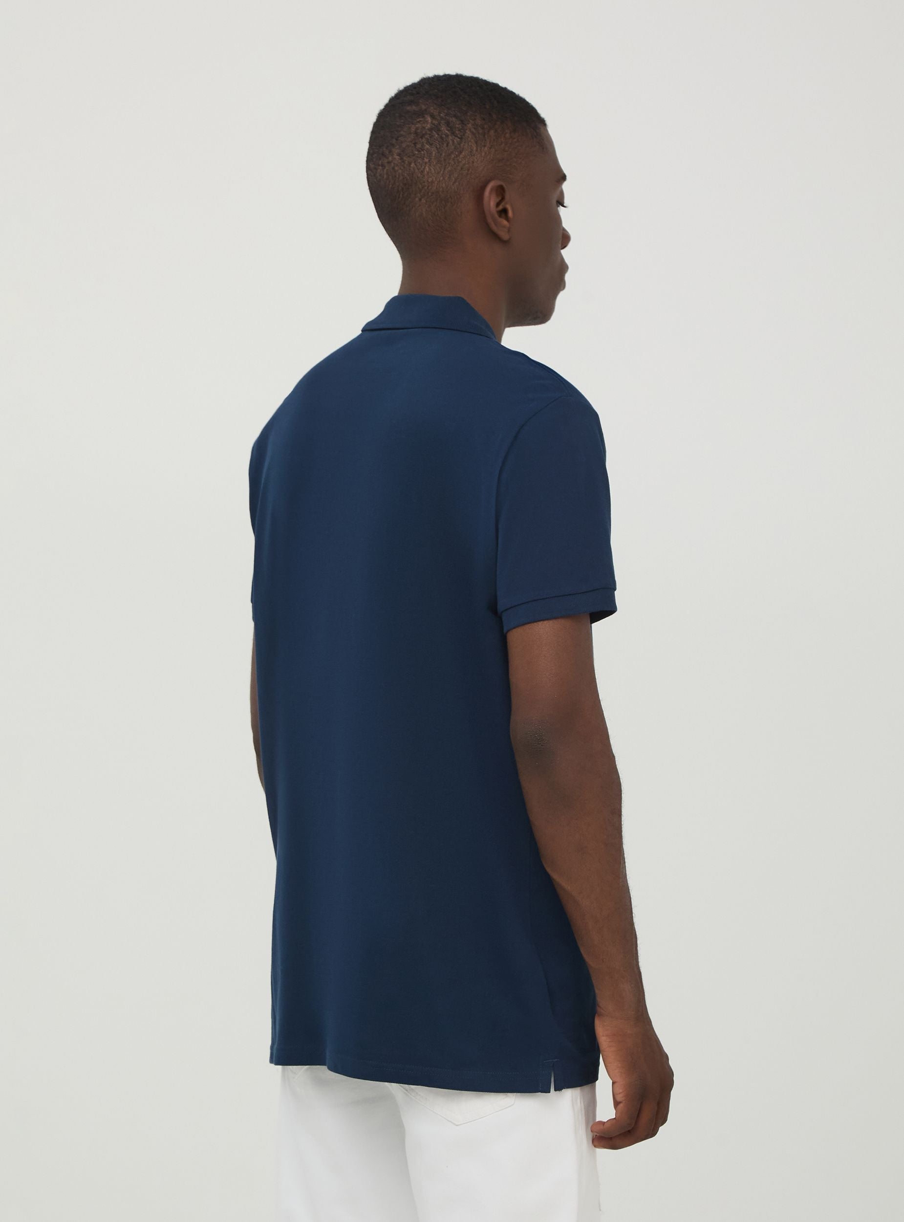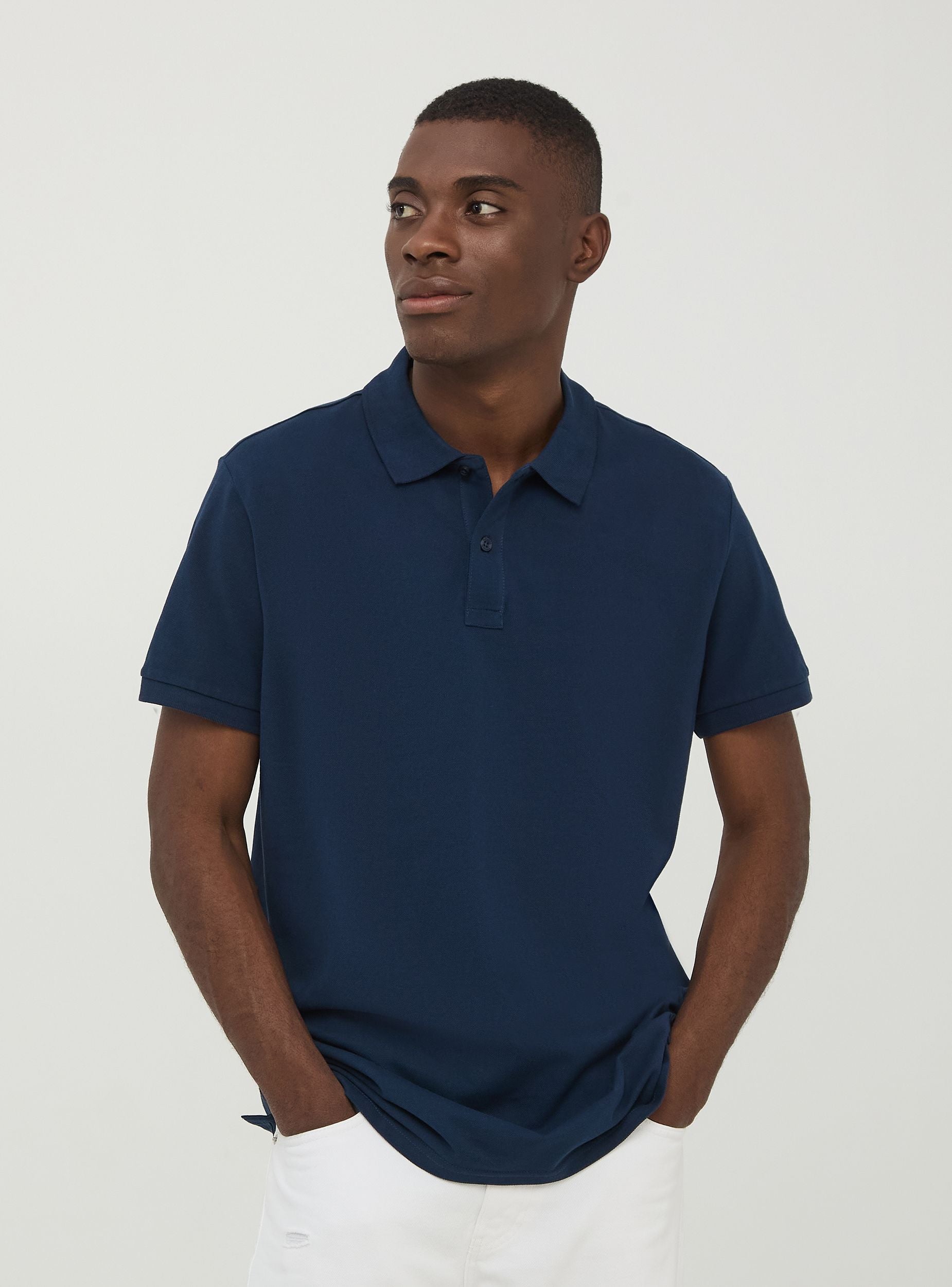 Maglietta da uomo modello polo a tinta unita. Tessuto in cotone piquet. Modello a maniche corte con colletto classico con bottoni. Vestibilità regular.