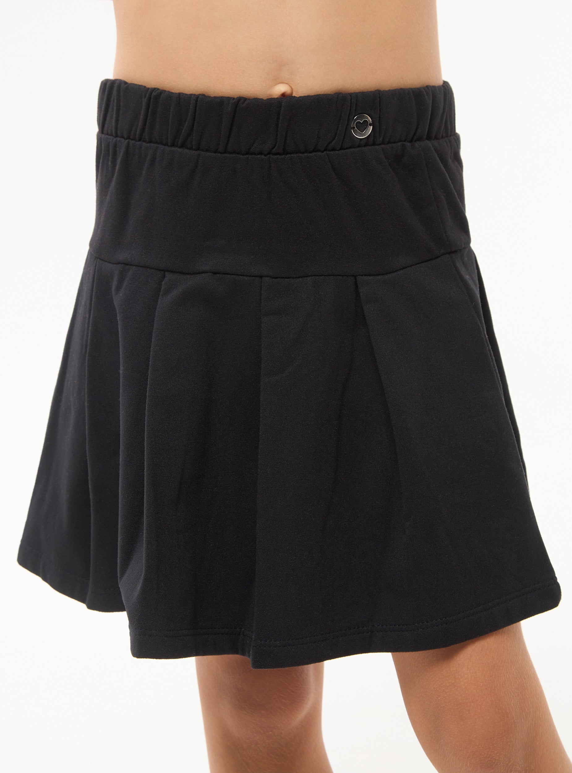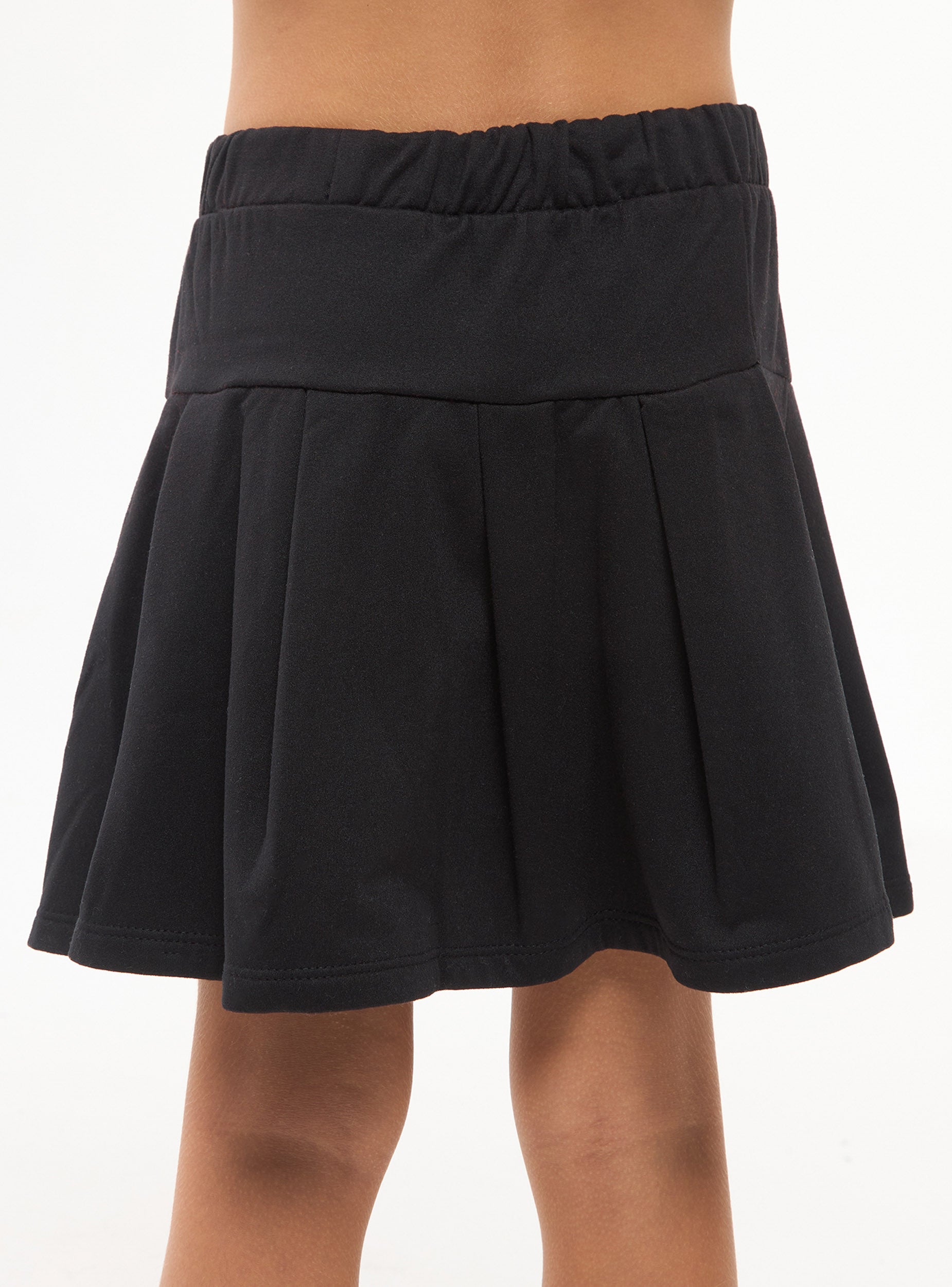 Gonna da bambina a pieghe. Elastico in vita, tessuto tinta unita. Lunghezza sopra al ginocchio.