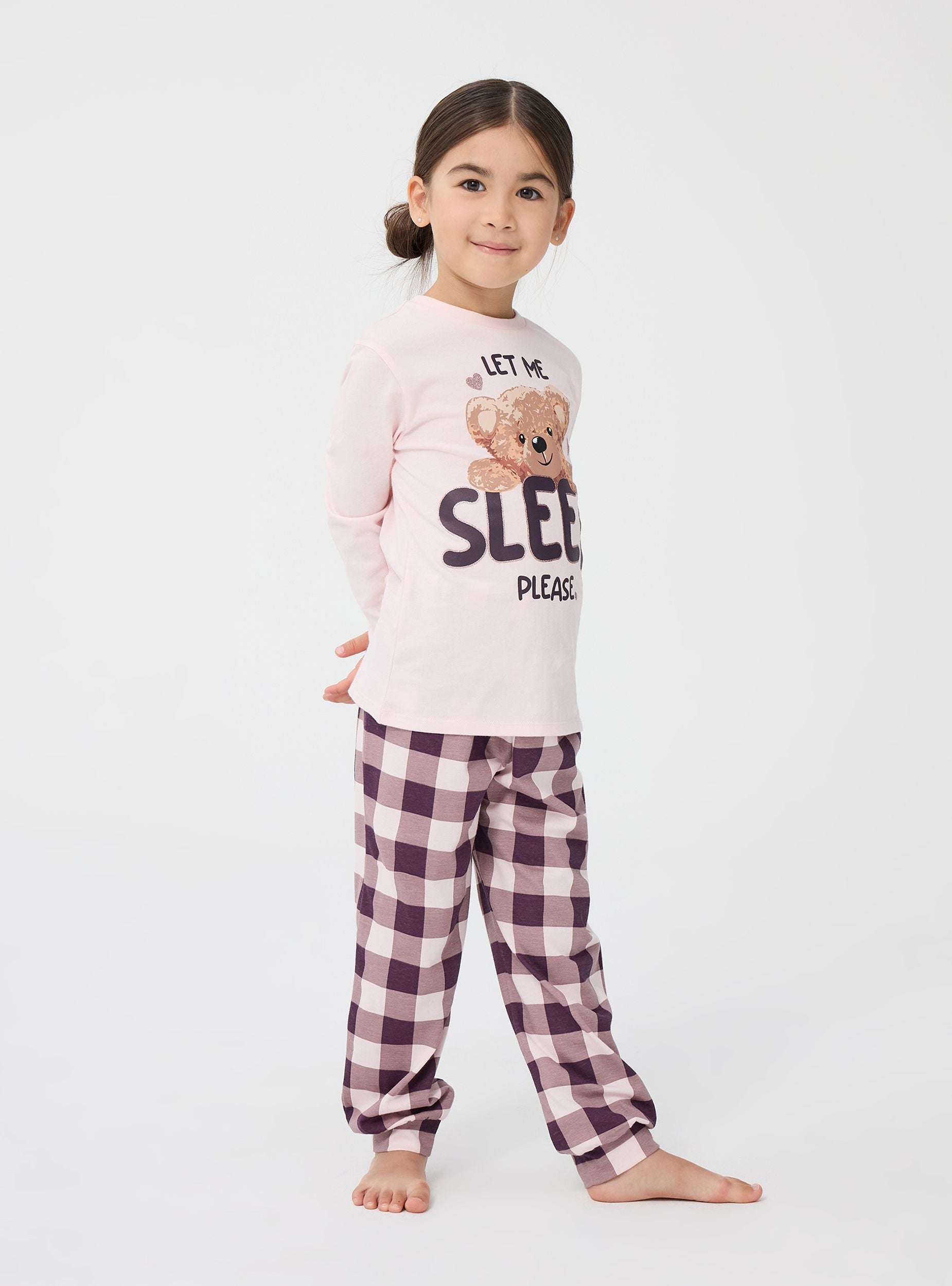 Set pigiama maglia con orsetto e pantaloni a quadri