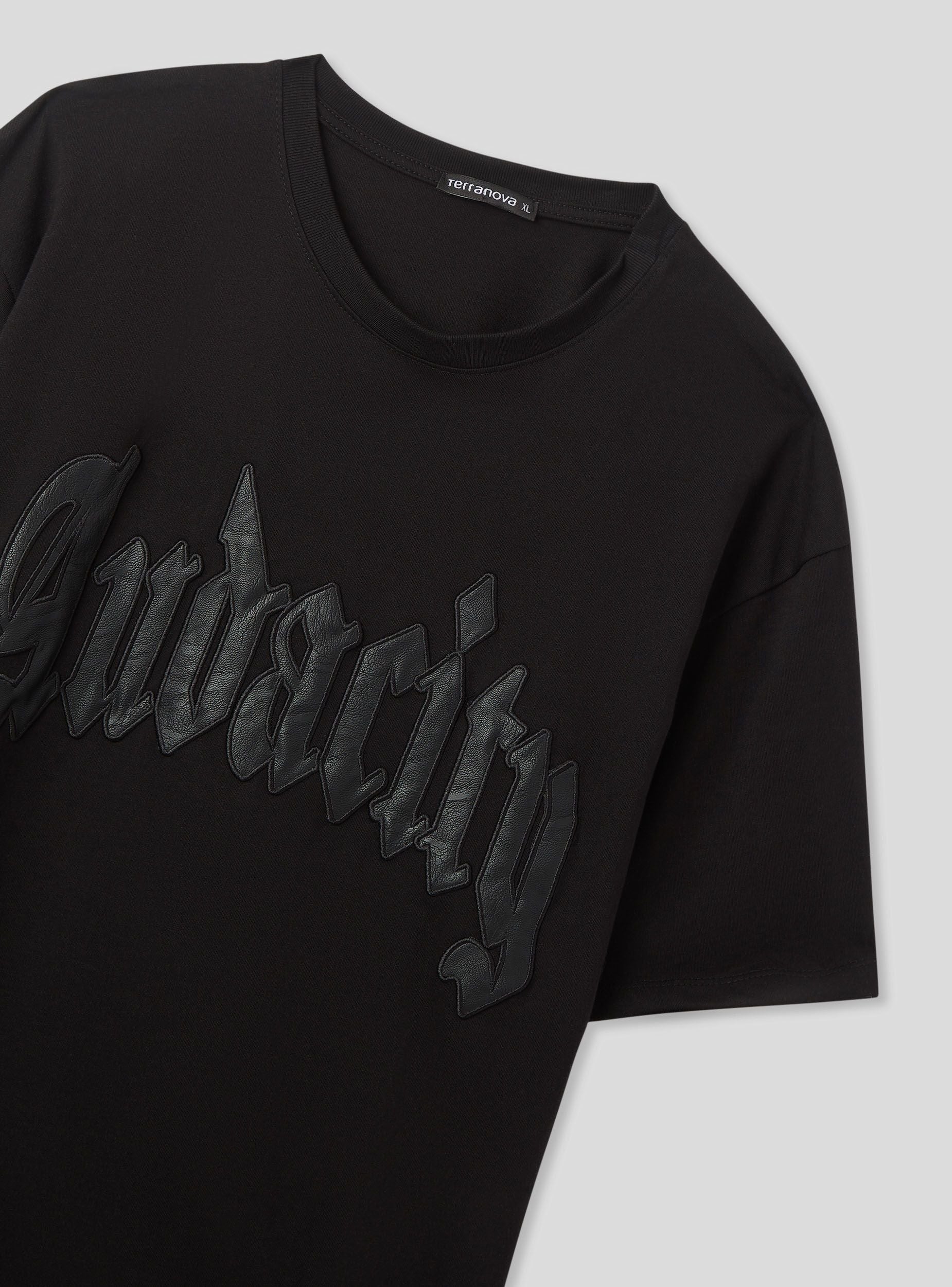 T-shirt in cotone da uomo con maniche corte e collo rotondo. Il patch frontale rende questa t-shirt perfetta per un look streetwear e audace, ideale per il tempo libero, eventi casual o outfit urban. Si abbina facilmente a jeans, jogger o pantaloncini per un outfit moderno e grintoso, perfetto per chi ama distinguersi con originalità.