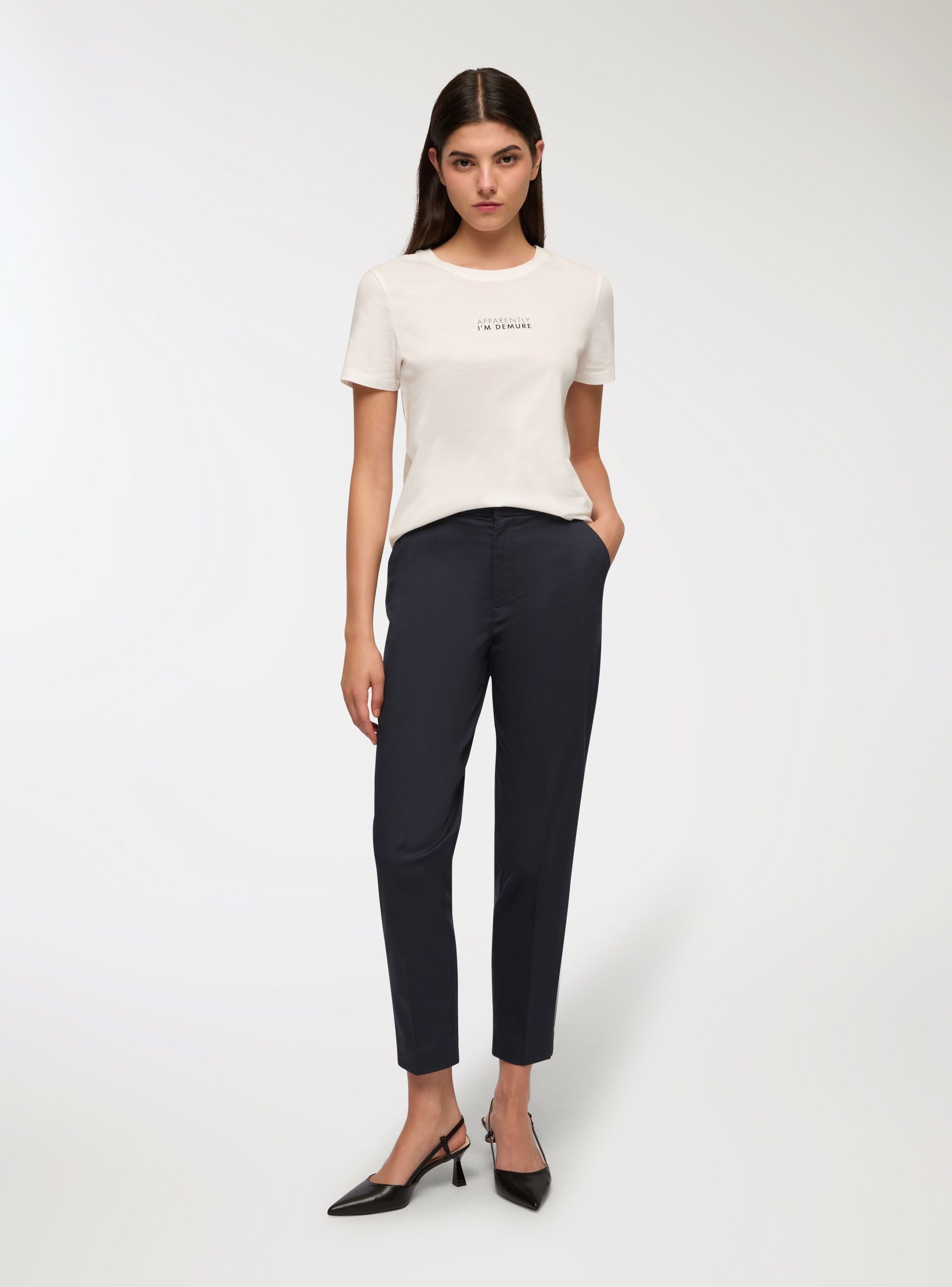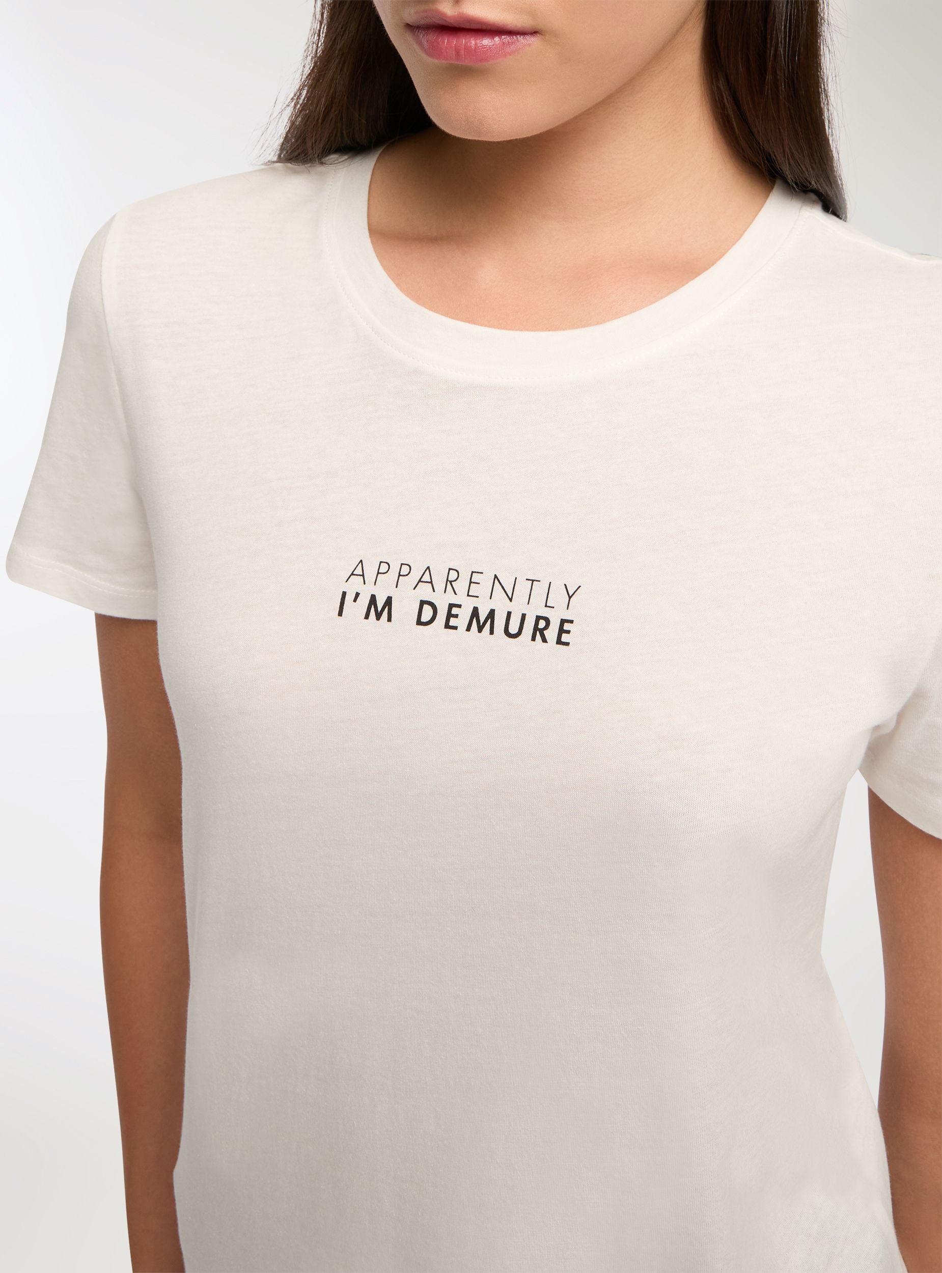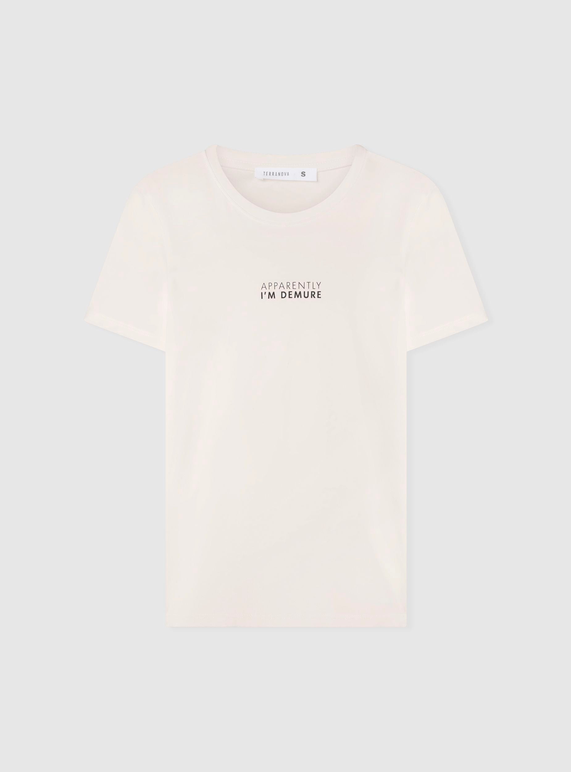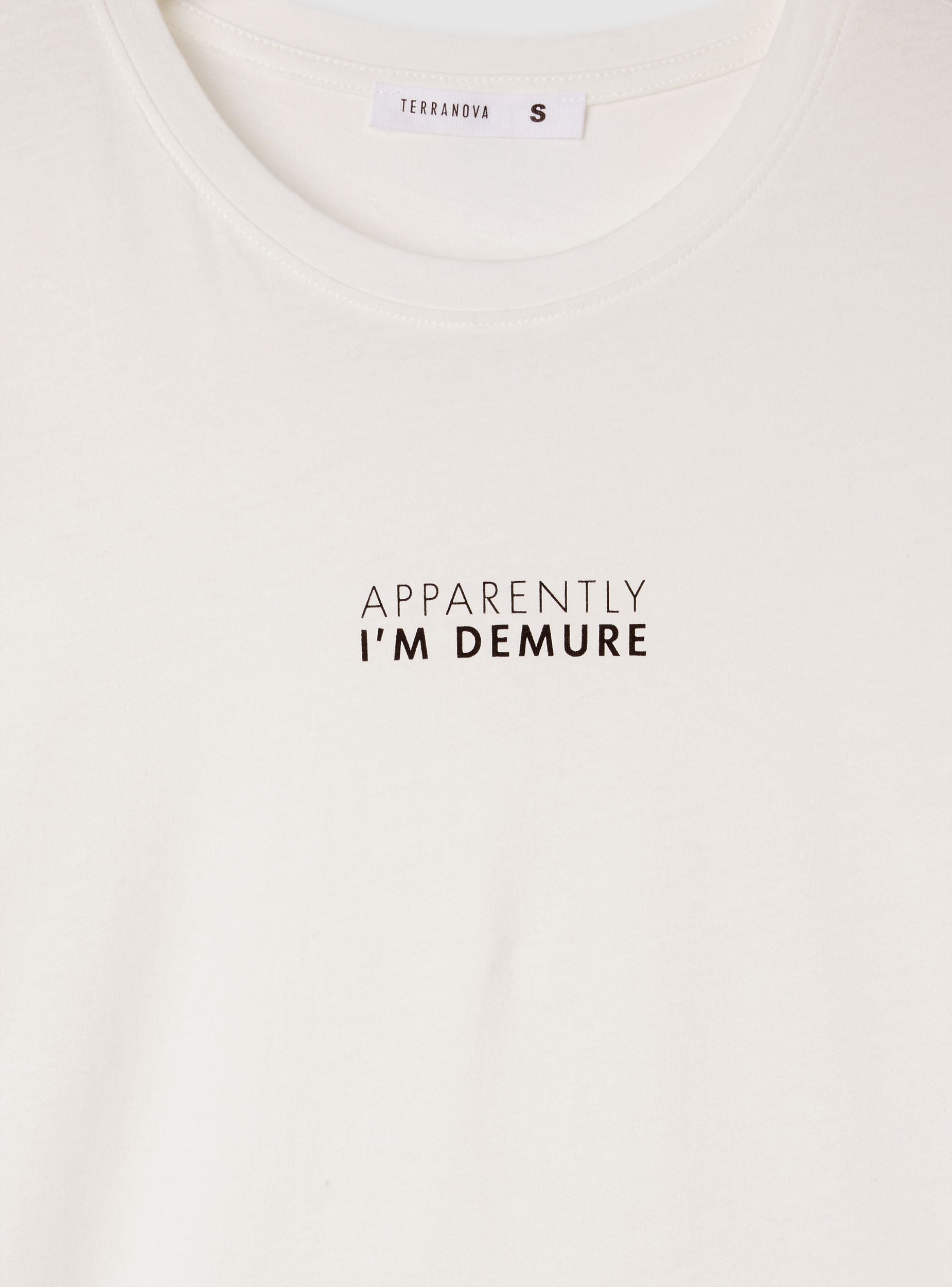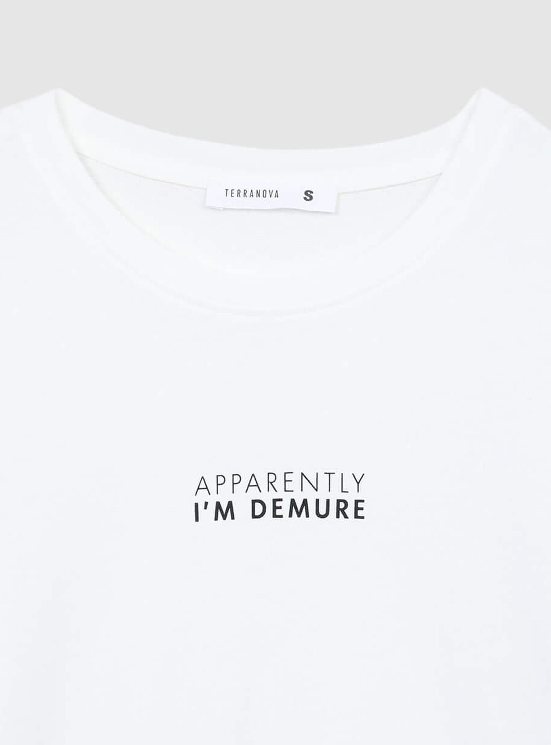 T-shirt con scritta demure