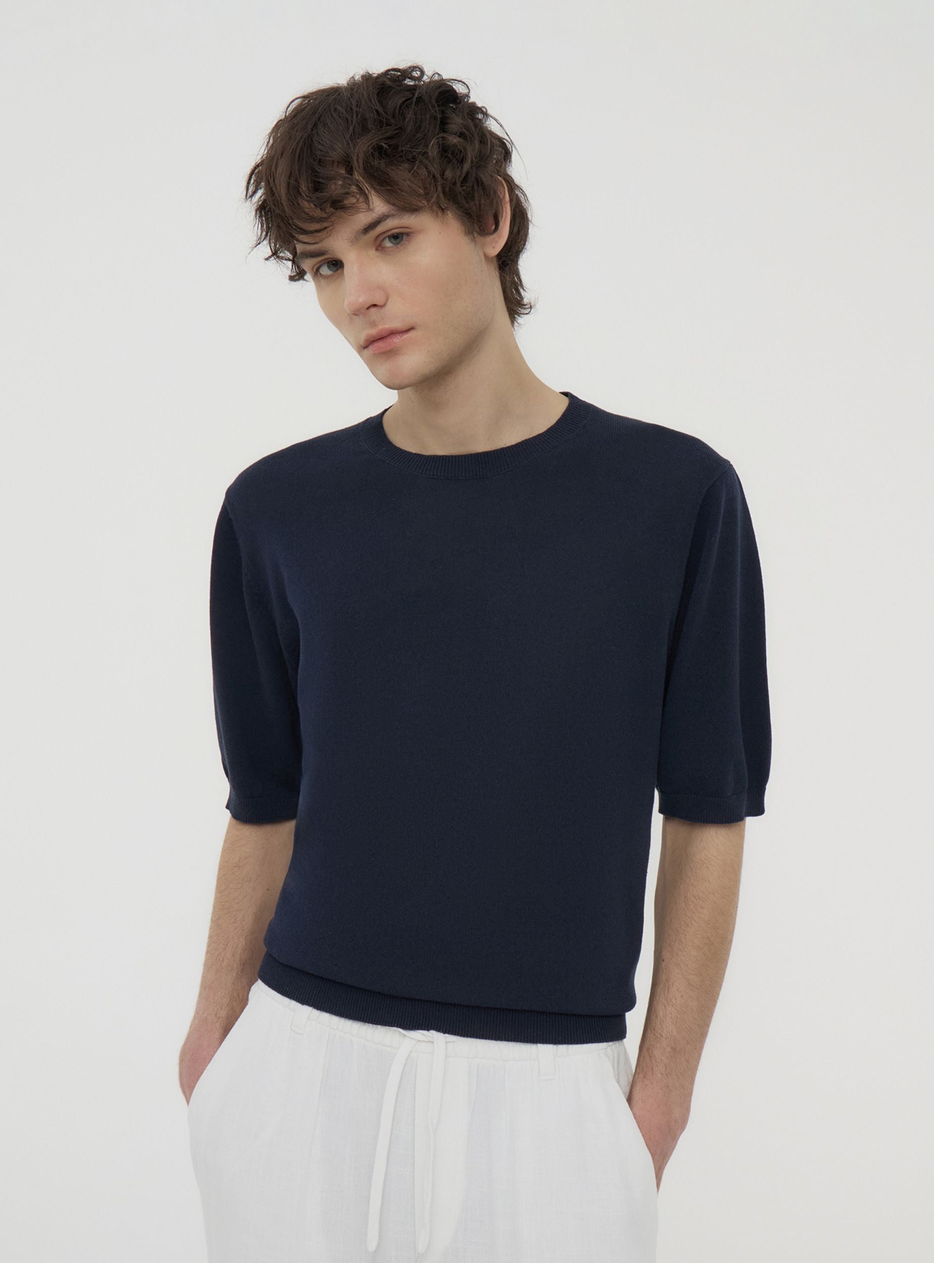 T-shirt da uomo a tinta unita realizzata in maglia di cotone, pensata per garantire comfort e libertà di movimento durante tutta la giornata. Le maniche corte e il girocollo si combinano a una vestibilità versatile, perfetta per un look casual che si adatta con facilità al tempo libero, al lavoro informale o alle uscite quotidiane. Il design semplice ma curato si arricchisce di dettagli a coste su collo, maniche e fondo, che donano un tocco di stile in più. Ideale da abbinare a jeans, pantaloni chino o bermuda per un outfit pratico, moderno e sempre attuale. Un capo essenziale, valorizzato dalla qualità della maglia di cotone.