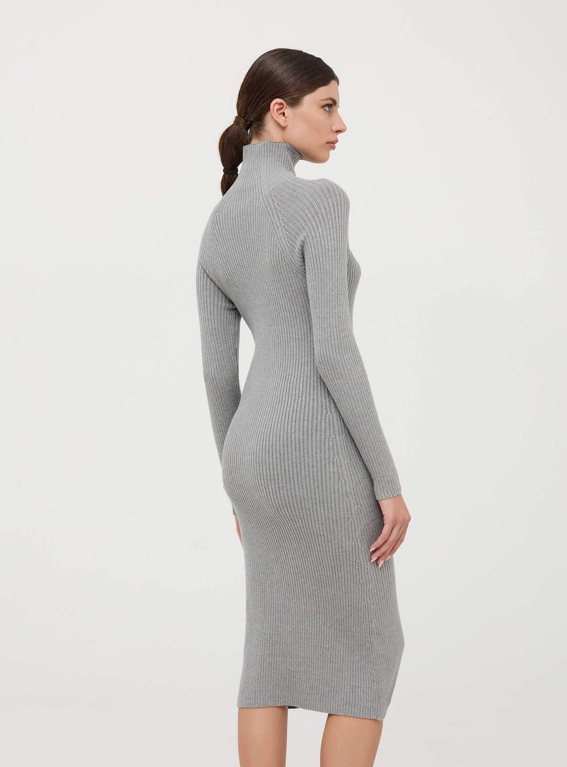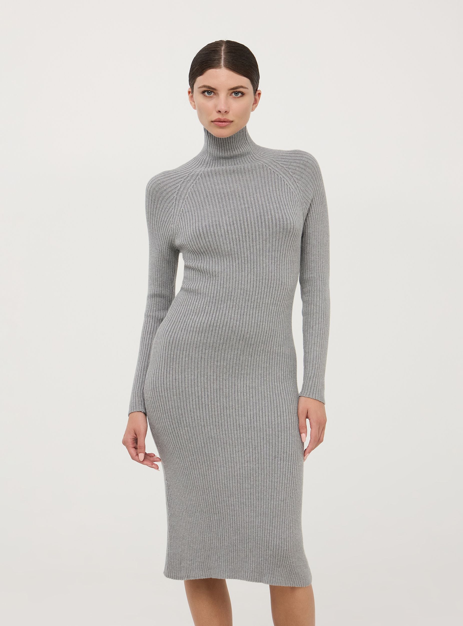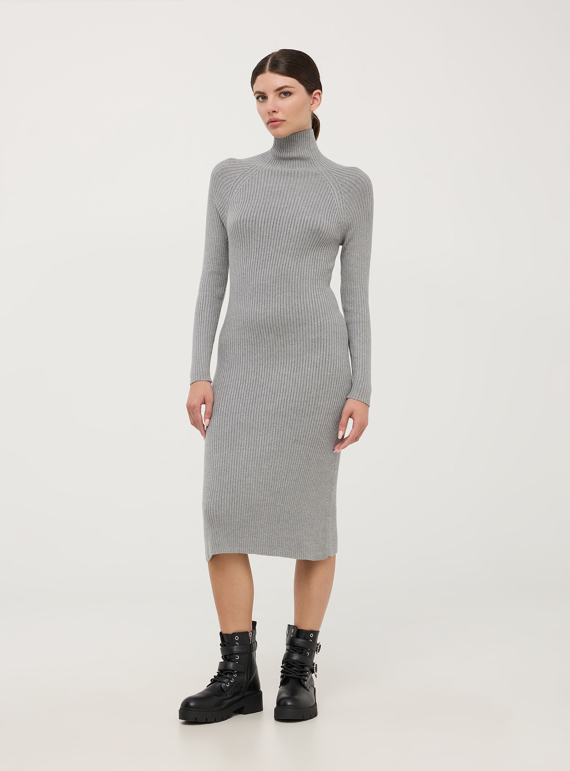 Abito midi da donna a costine, con design dolcevita e maniche lunghe. La midi e la vestibilità aderente lo rendono ideale per un look elegante e sofisticato durante la stagione invernale.