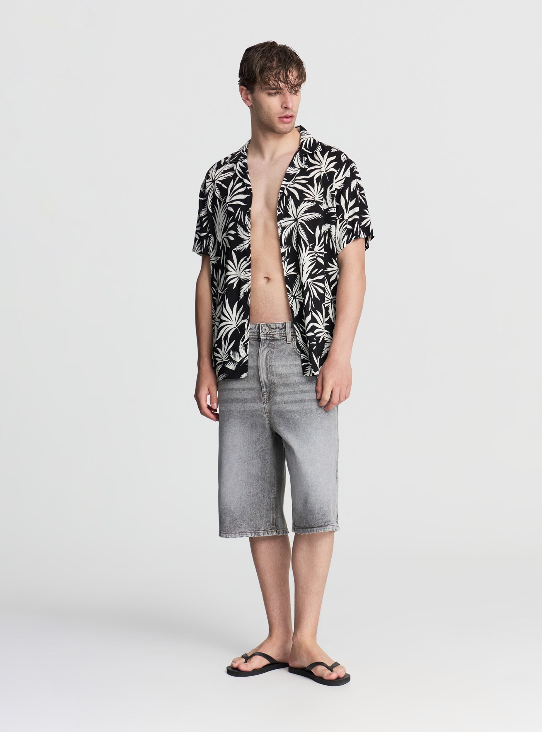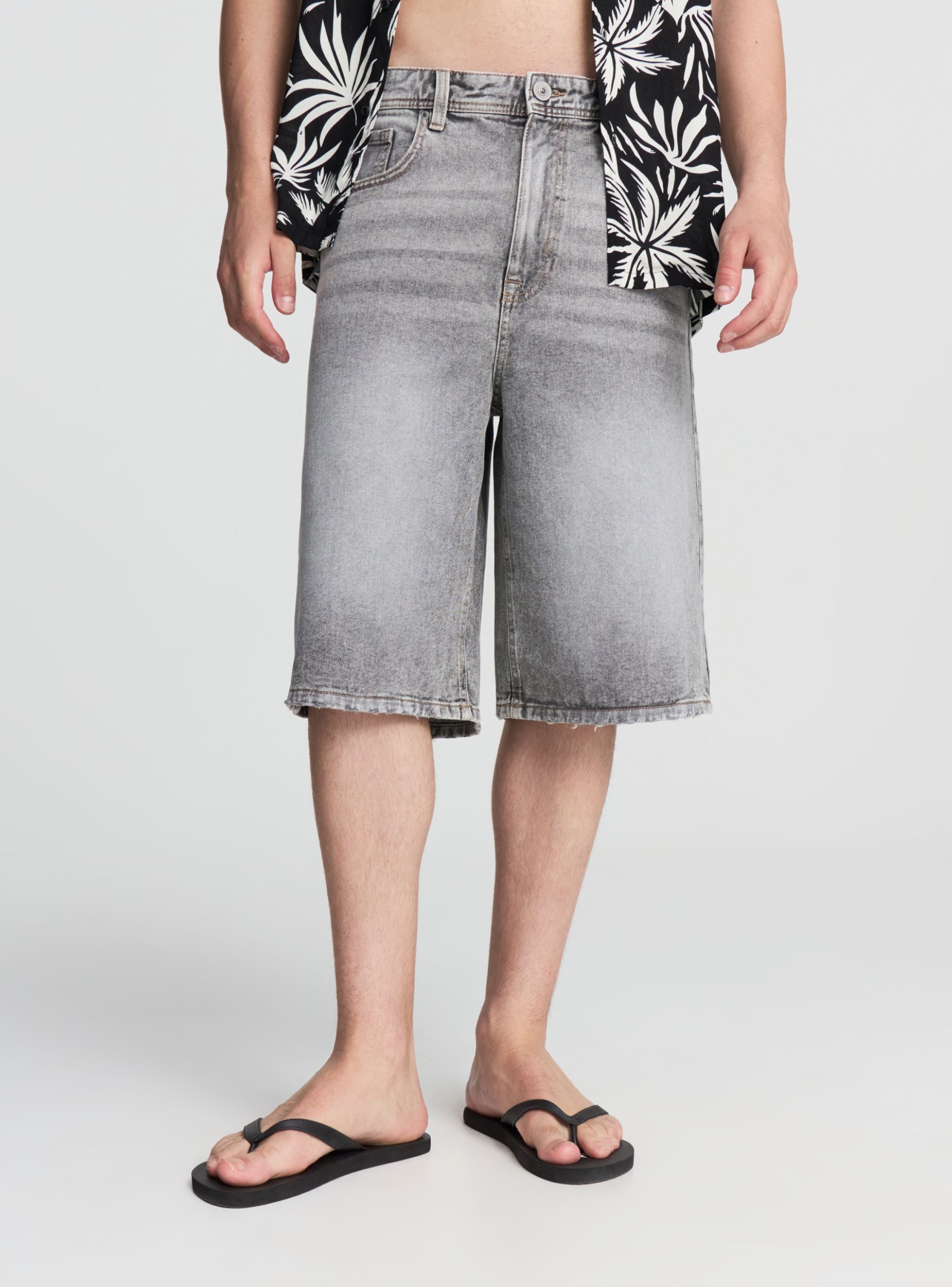 Męskie szorty baggy, model bermudy z denimu. Wyposażone w zapięcie z przodu na guzik i zamek, oferują praktyczność dzięki przednim i tylnym kieszeniom. Idealne do zestawienia z t-shirtami lub casualowymi koszulami, nadają się do wszechstronnych stylizacji na czas wolny, podróże lub nieformalne wyjścia.Szczegóły