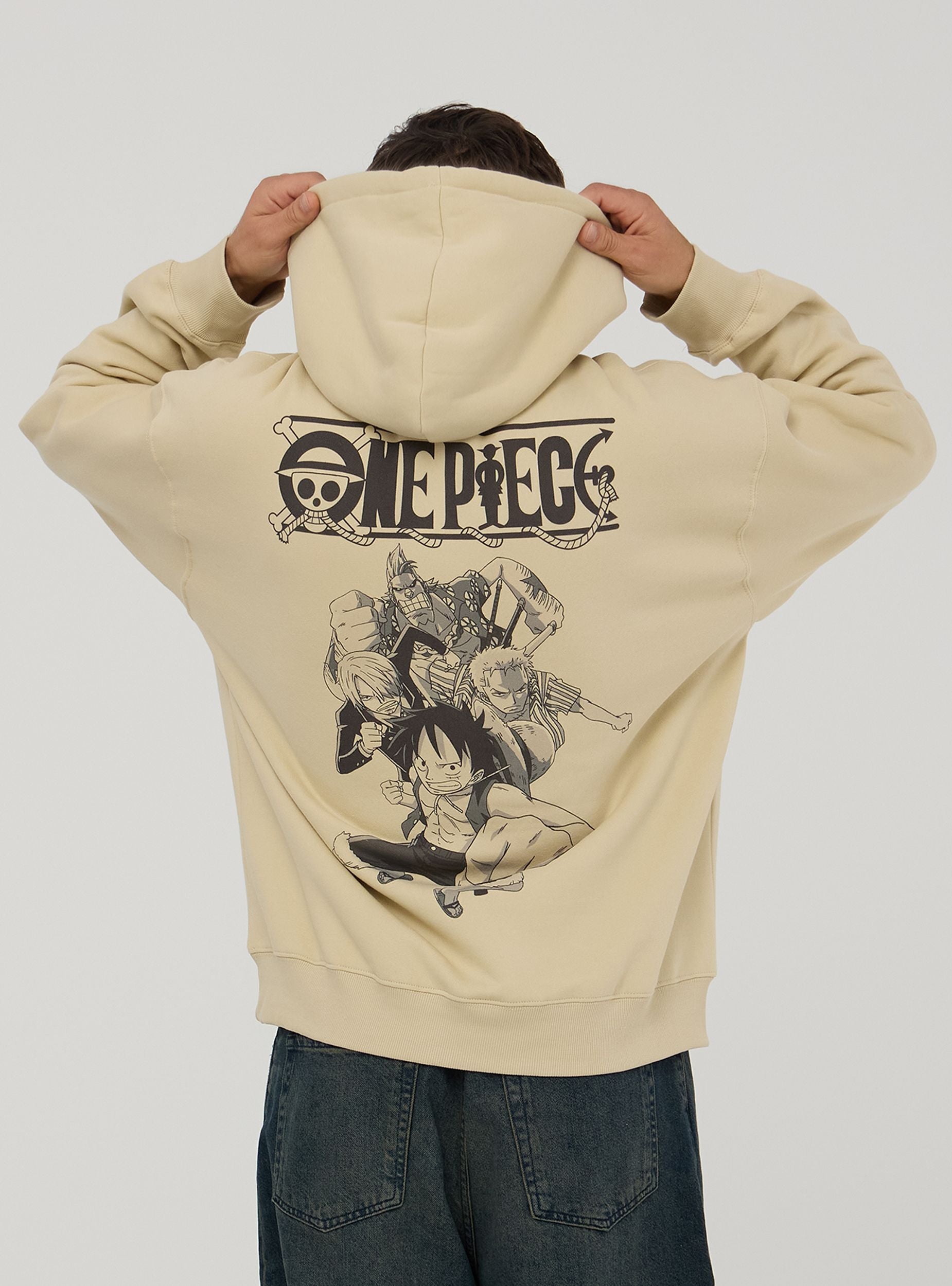 Męska bluza z regulowanym kapturem i nadrukiem One Piece® zarówno z przodu, jak i z tyłu, wykonana z ciężkiego materiału. Ta bluza ma praktyczną przednią kieszeń kangurkę, elastyczne ściągacze na mankietach i dolnym brzegu dla optymalnego dopasowania. Szczegółowe nadruki oddają hołd postaciom z mangi, idealne dla prawdziwych fanów. Doskonała do noszenia w czasie wolnym lub do wyrażania swojej pasji podczas zjazdów, konwentów komiksowych lub wydarzeń tematycznych. Świetna na casualowy i wygodny look, łatwo łączy się dżinsami lub spodniami sportowymi dla swobodnego stroju. Luźny krój.Szczegóły