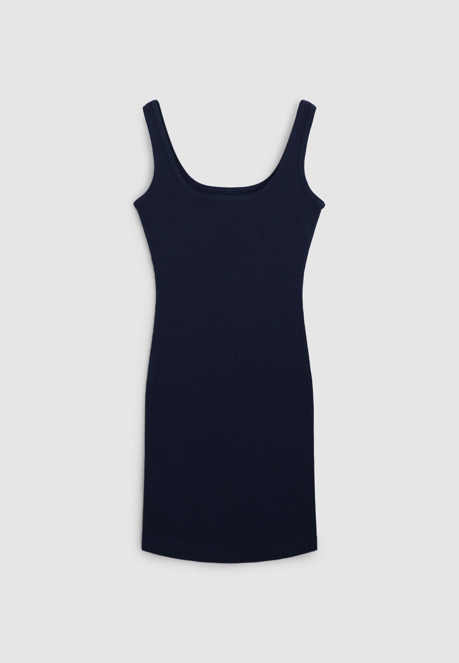 Sukienka damska charakteryzująca się dopasowanym krojem w stylu bodydress. Posiada prosty jednolity kolor, co czyni ją wszechstronną w różnych stylizacjach. Kwadratowy dekolt dodaje modnego i wyrafinowanego akcentu, podczas gdy ramiączka dopełniają projekt, oferując minimalistyczny i elegancki wygląd. Ta sukienka jest idealna do noszenia zarówno na casualowe okazje, z lekką kurtką lub rozpiętą koszulą, jak i w bardziej eleganckich kontekstach, gdy zestawiona z wyrafinowanymi akcesoriami i butami.Szczegóły