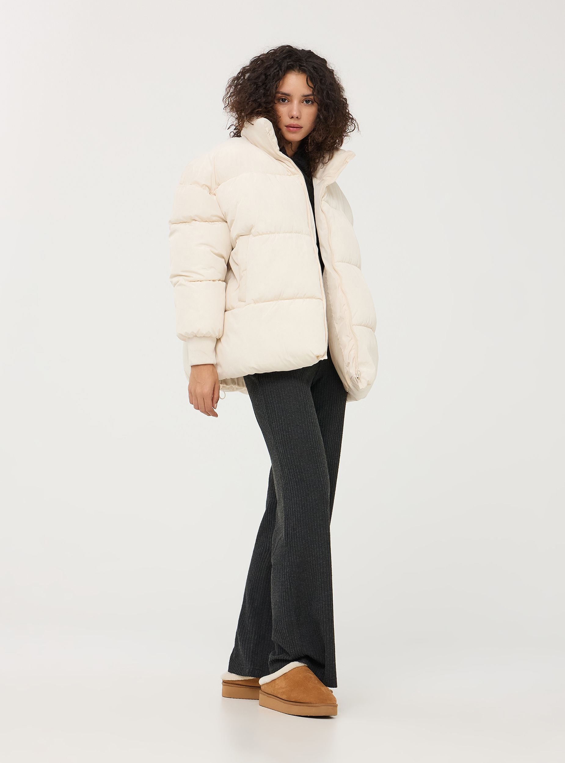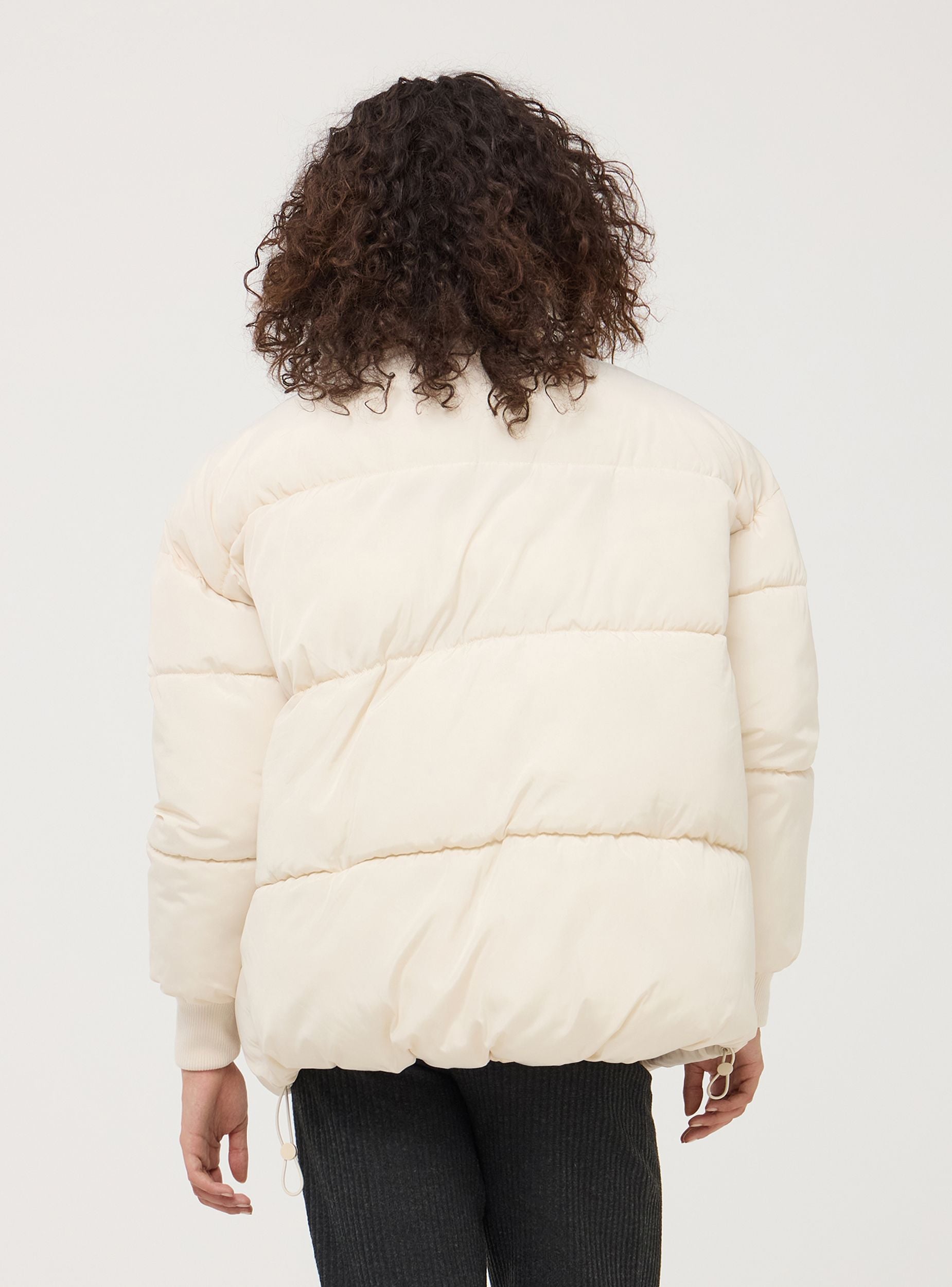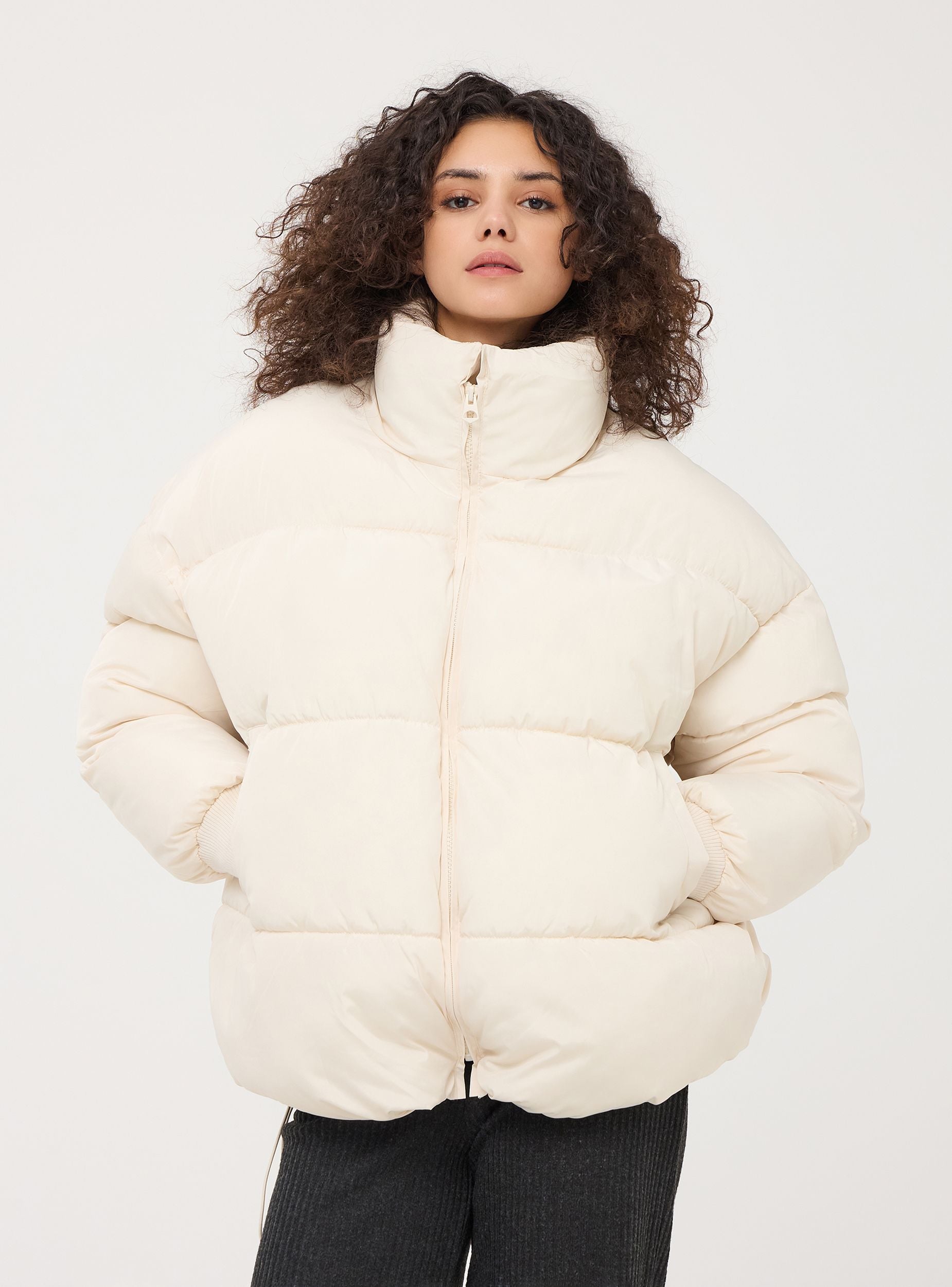Kurtka damska ocieplana z wysokim kołnierzem. Zapięcie na zamek błyskawiczny w tym samym kolorze, kieszenie wpuszczane z podszewką z polaru zaprojektowane, aby utrzymać twoje ręce w cieple, oferując wyjątkowy komfort i miękką ochronę przed zimnem. Długie rękawy z ściągaczem w prążki. Dolny brzeg z sznurkiem i stoperem. Luźny krój oferuje nowoczesną i swobodną sylwetkę, idealną do warstwowania i dodania odrobiny stylu streetwear do twojego zimowego stroju. Obfite wypełnienie i efekt puff nie tylko zapewniają wyjątkowe ciepło, ale także tworzą objętościowy i przyciągający wzrok wygląd, idealny na najzimniejsze dni z klasą. Idealna na zimne dni w mieście lub na weekendowy wypad, ta kurtka utrzyma cię w cieple i stylu w każdej sytuacji.Szczegóły