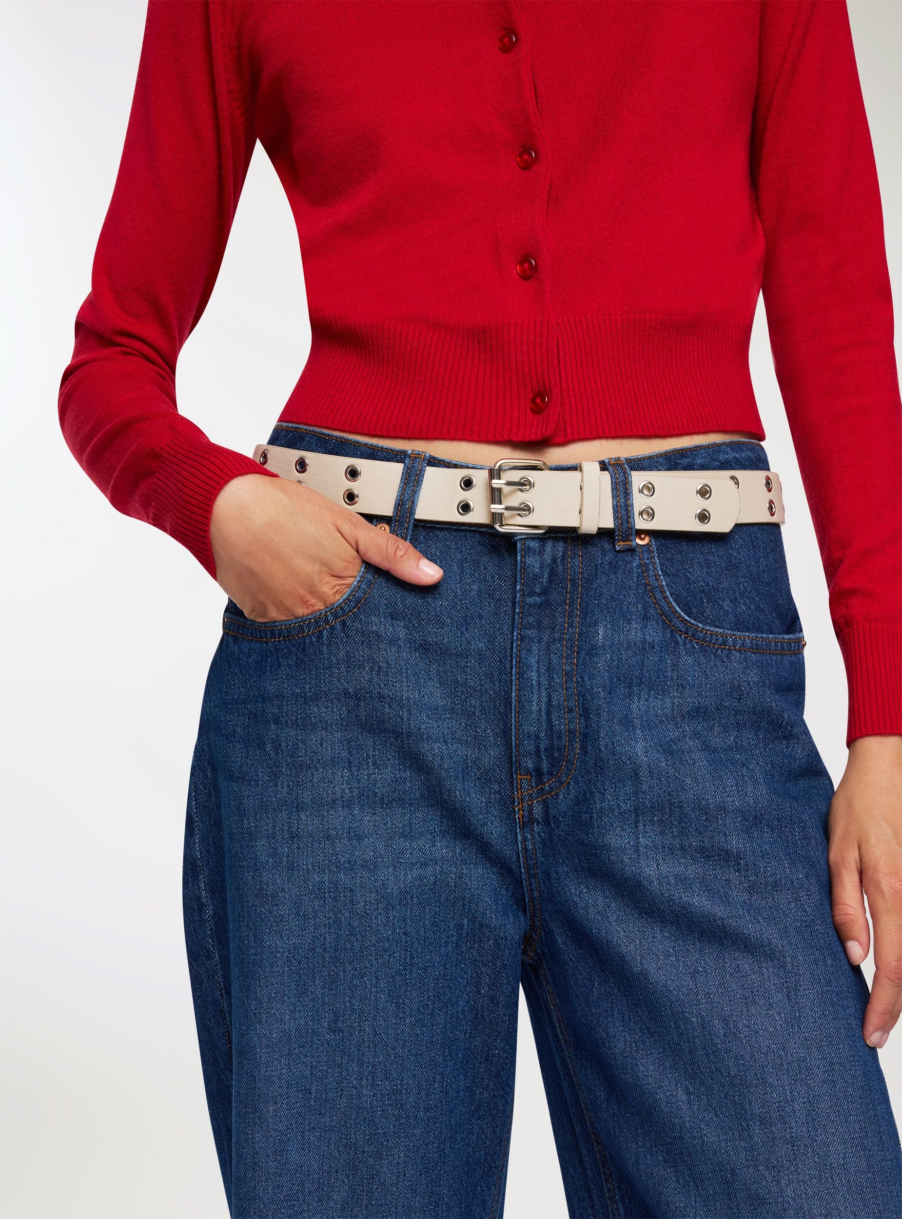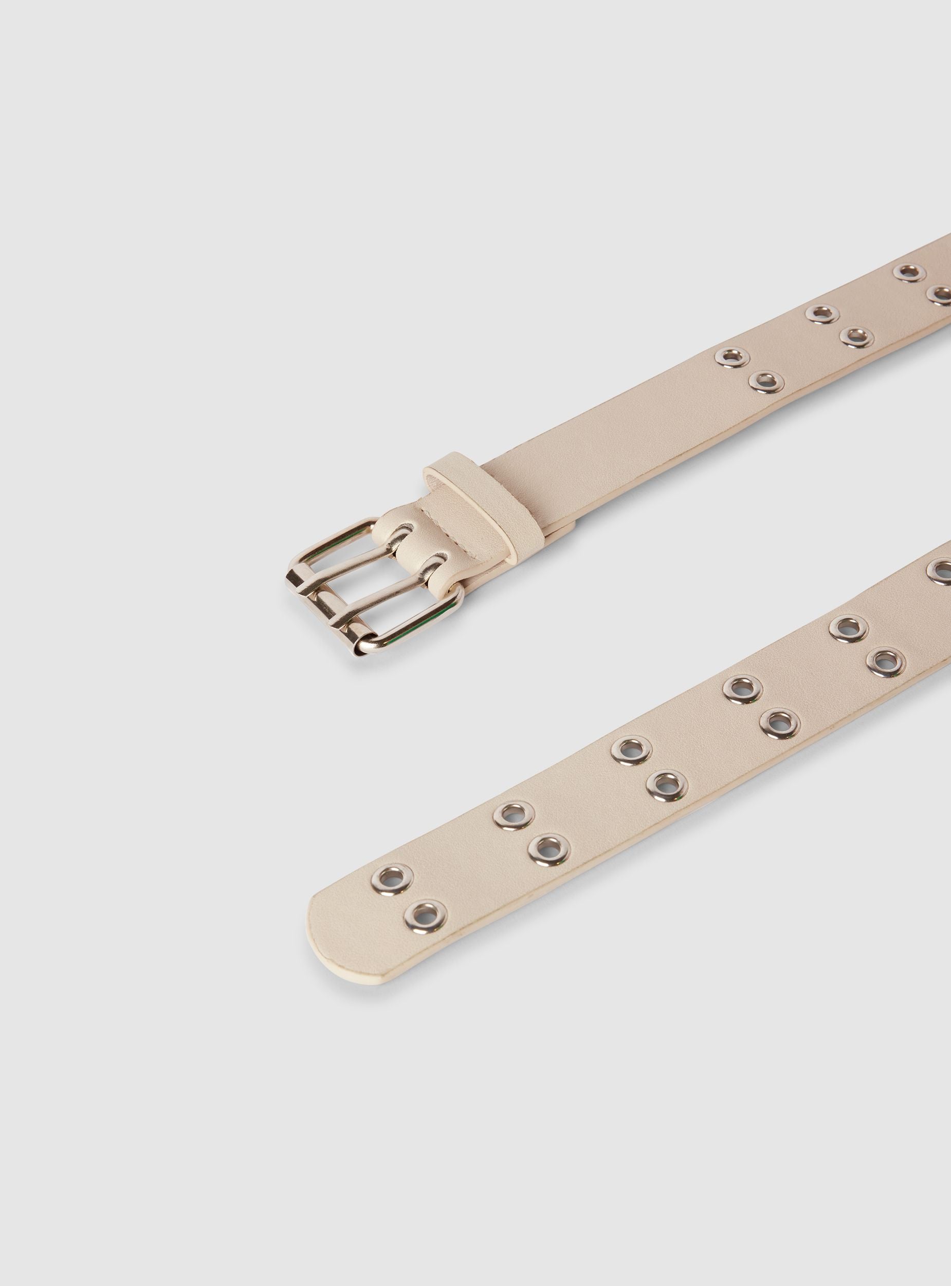 Pasek damski z detalami w postaci oczek na całej długości. Idealny do dodania stylowego akcentu do każdego stroju, ten pasek doskonale pasuje do casualowych i modnych looków. Wykonany z jednolitej sztucznej skóry, wyposażony jest w kwadratową klamrę z podwójnym zapięciem. Doskonały do noszenia z dżinsami lub spodniami, oferuje nowoczesny i wszechstronny design, który wyróżnia się elegancją i praktycznością.Szczegóły