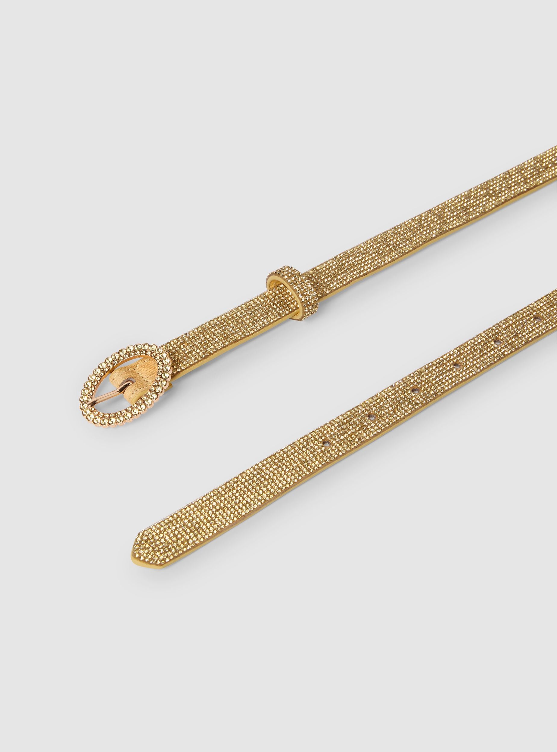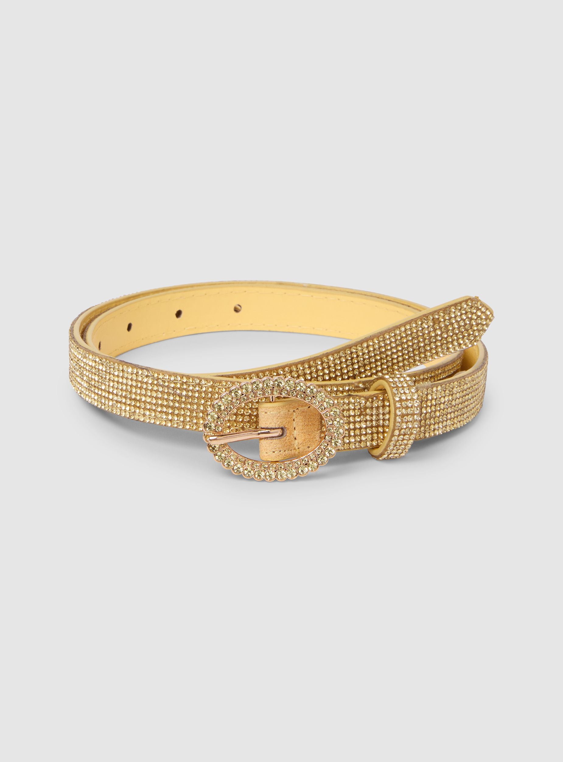 Idealny pasek damski, aby dodać odrobinę elegancji i blasku do każdej stylizacji. Doskonały na specjalne okazje lub wieczory, ten pasek wyróżnia się wyrafinowanym wzornictwem z kryształkami i zapięciem z ozdobną klamrą. Może być łączony z eleganckimi sukienkami lub spodniami, aby uzyskać wyrafinowany i glamour wygląd.Szczegóły