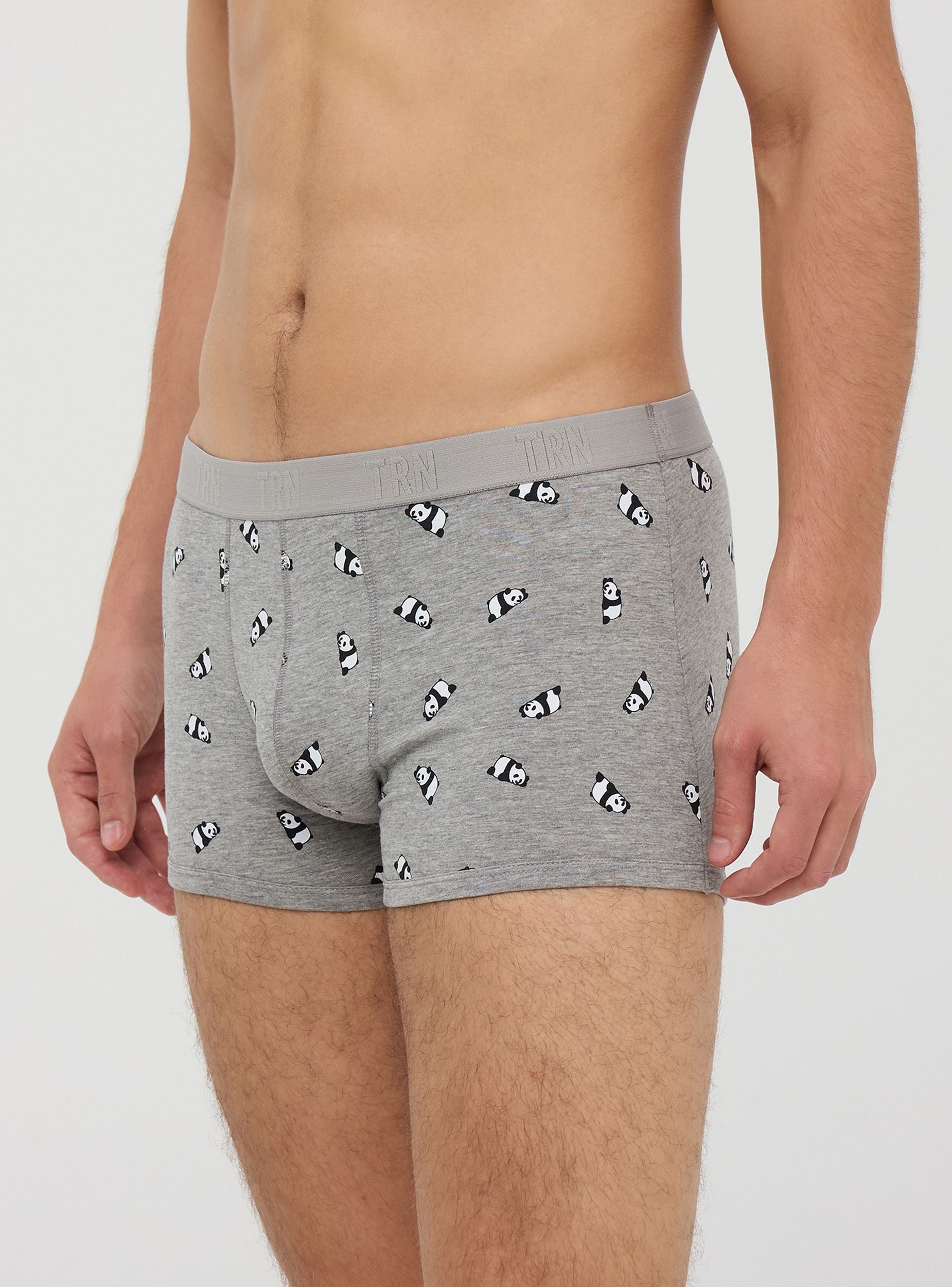 Męskie bokserki z krótkimi nogawkami z nadrukiem pandy na całej powierzchni. Miękka elastyczna taśma jacquardowa w pasie z logo dla większego komfortu. Fodrowana część przednia.Szczegóły