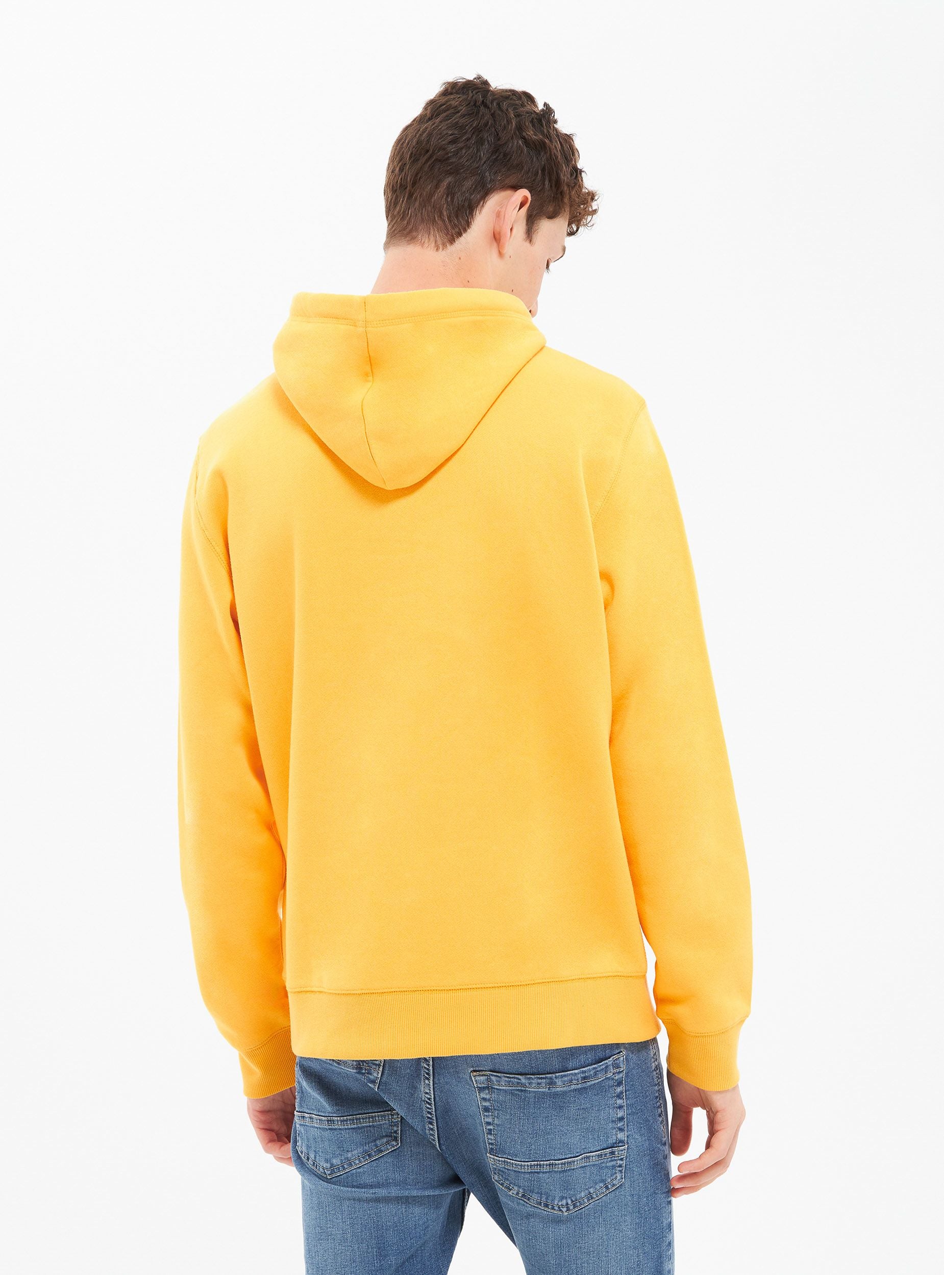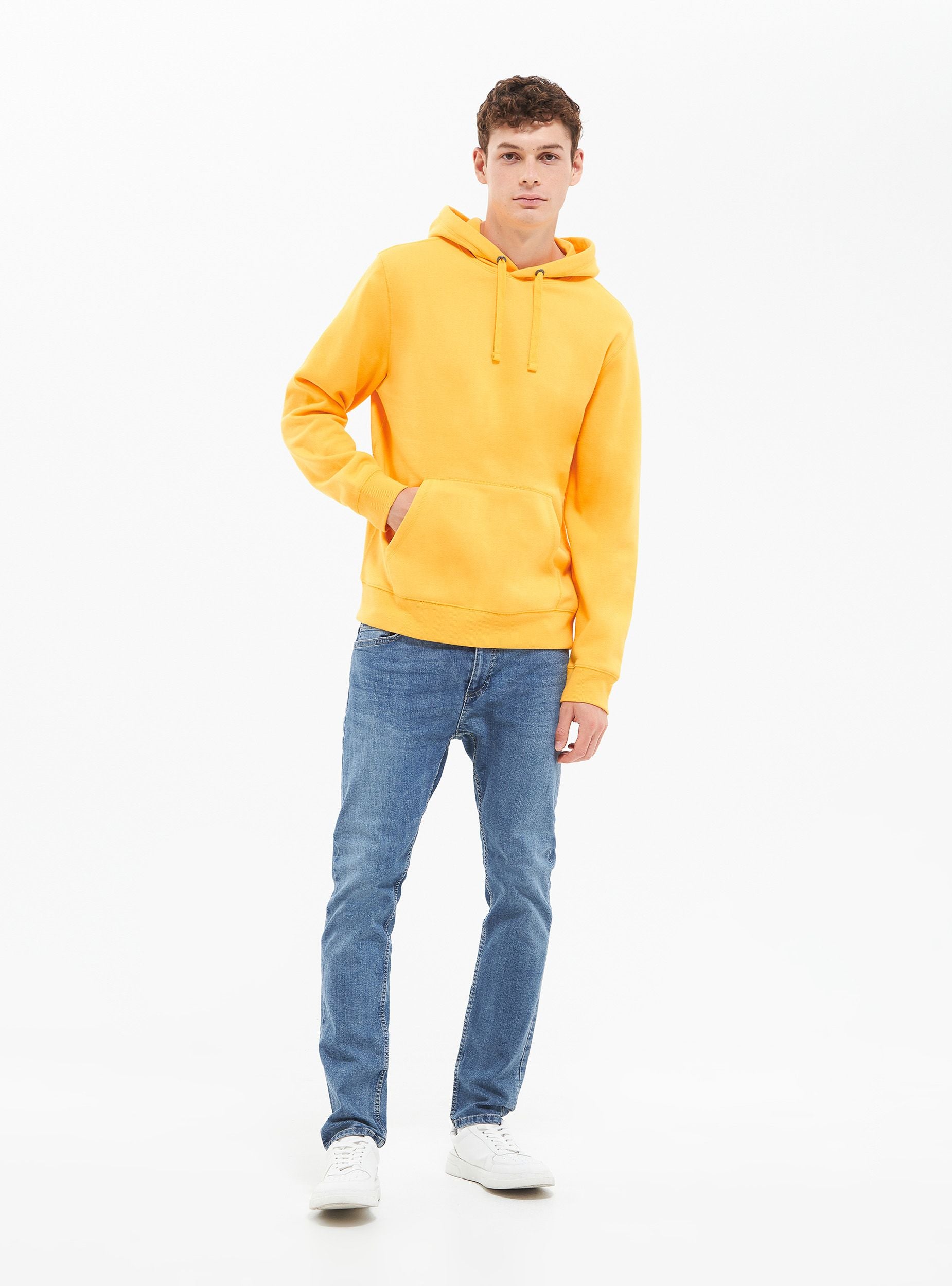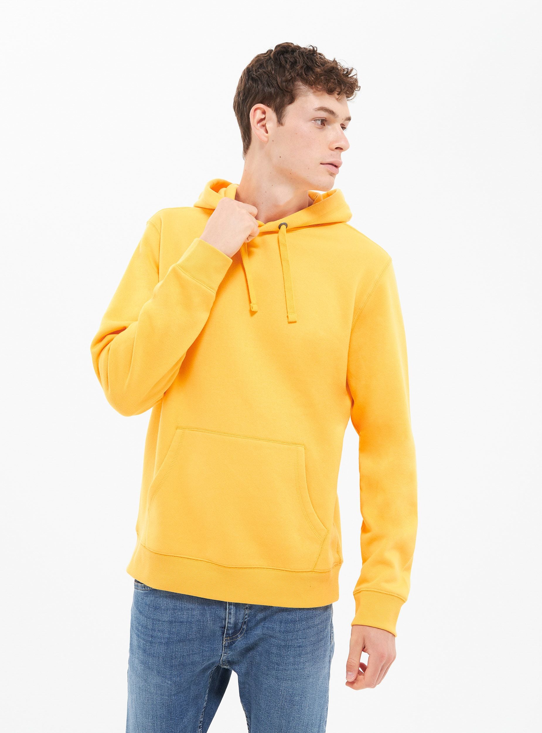 Męska bluza z kapturem. Model zamknięty z kapturem regulowanym za pomocą sznurka i długimi rękawami. Kieszeń przednia typu kangur. Wykonana z ciężkiego materiału jednokolorowego. Regularny krój.Szczegóły