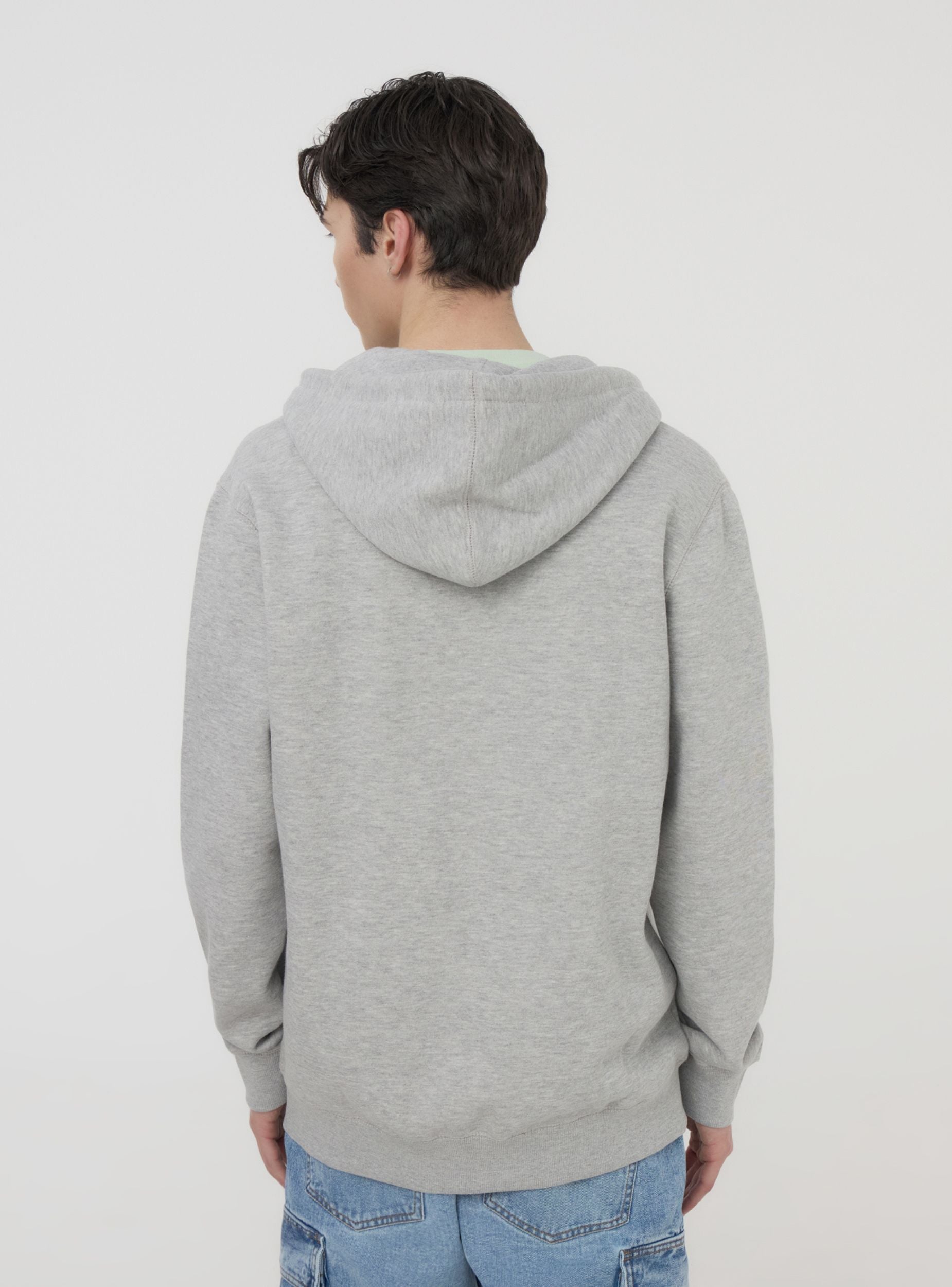 Męska ciężka bluza idealna na czas wolny i chłodniejsze dni. Posiada jednolity kolor, który pasuje do różnych stylów, regulowany kaptur z sznurkiem dla optymalnej ochrony, praktyczne zapięcie na zamek błyskawiczny z przodu oraz pojemne kieszenie dla maksymalnej funkcjonalności. Długie rękawy dopełniają design, zapewniając komfort i ciepło w każdej sytuacji.