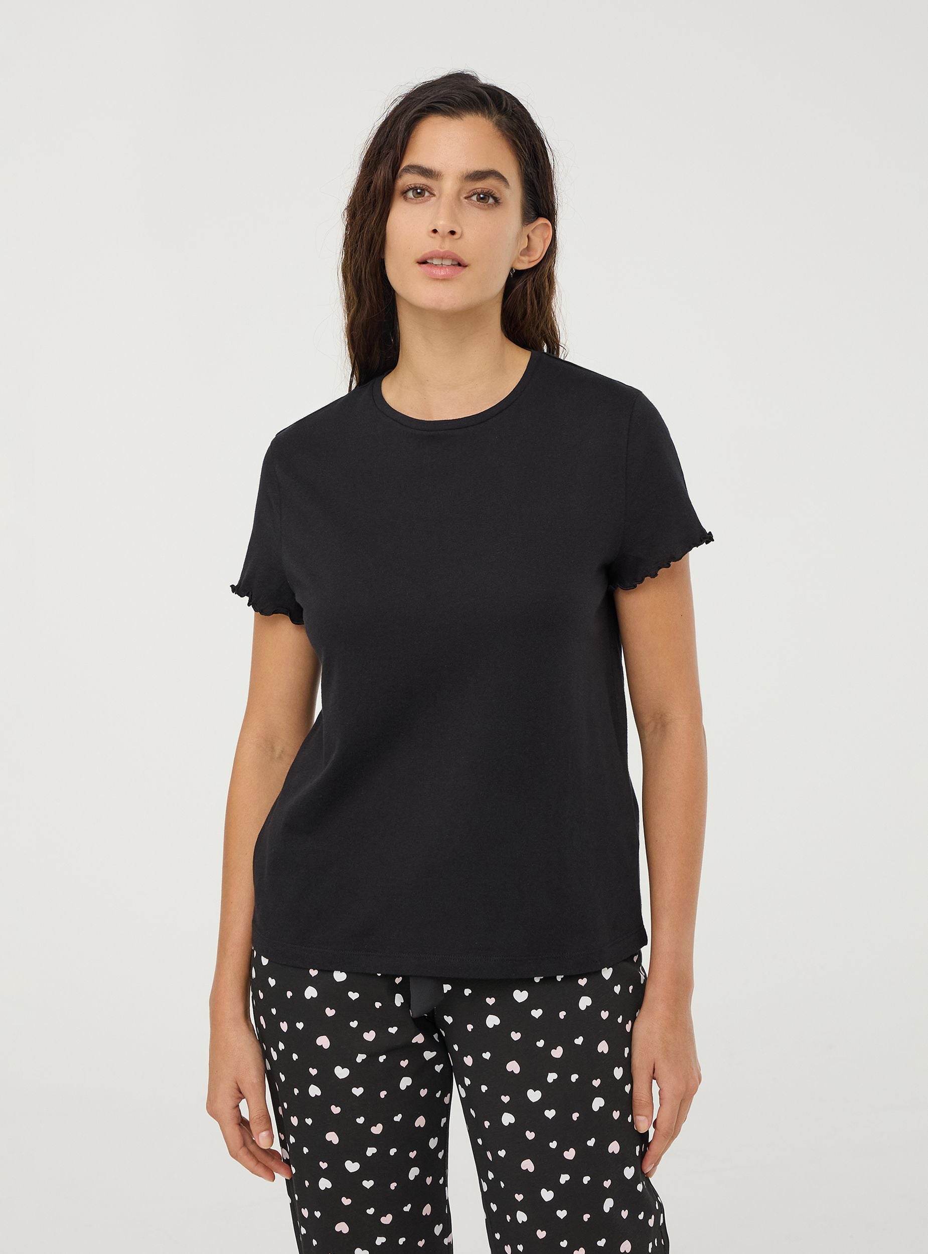 Koszulka nocna damska z okrągłym dekoltem, w jednolitym kolorze i krótkich rękawach. Jej prosty design sprawia, że jest idealna dla tych, którzy szukają wygodnego i swobodnego wyglądu na noc, oferując swobodę ruchu i podstawowy styl. Doskonała do zestawienia z długimi spodniami lub szortami.Szczegóły