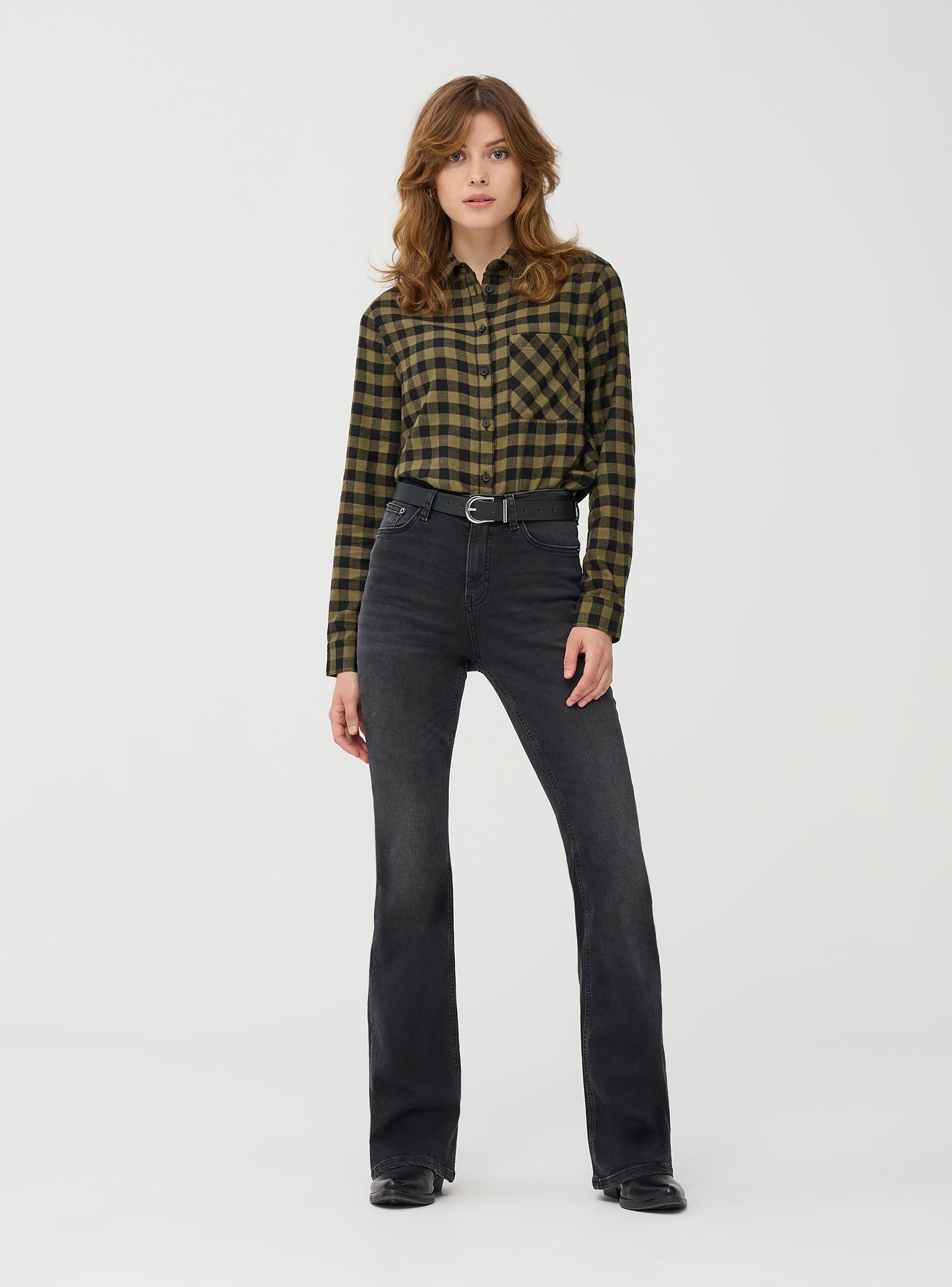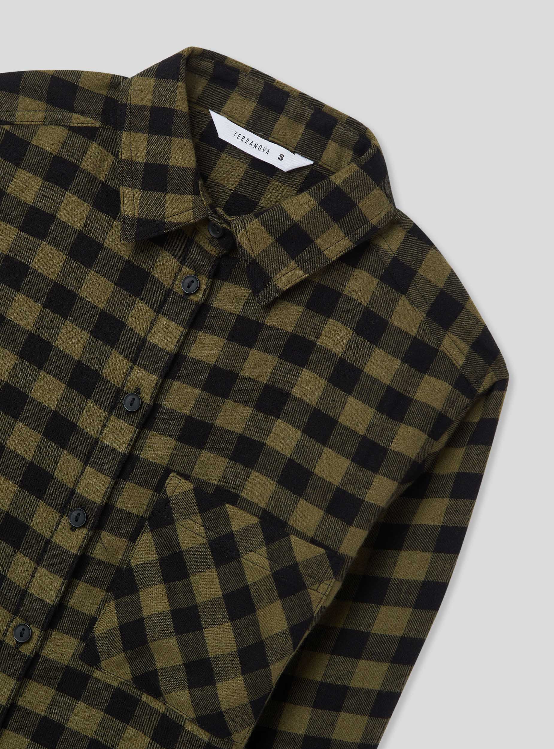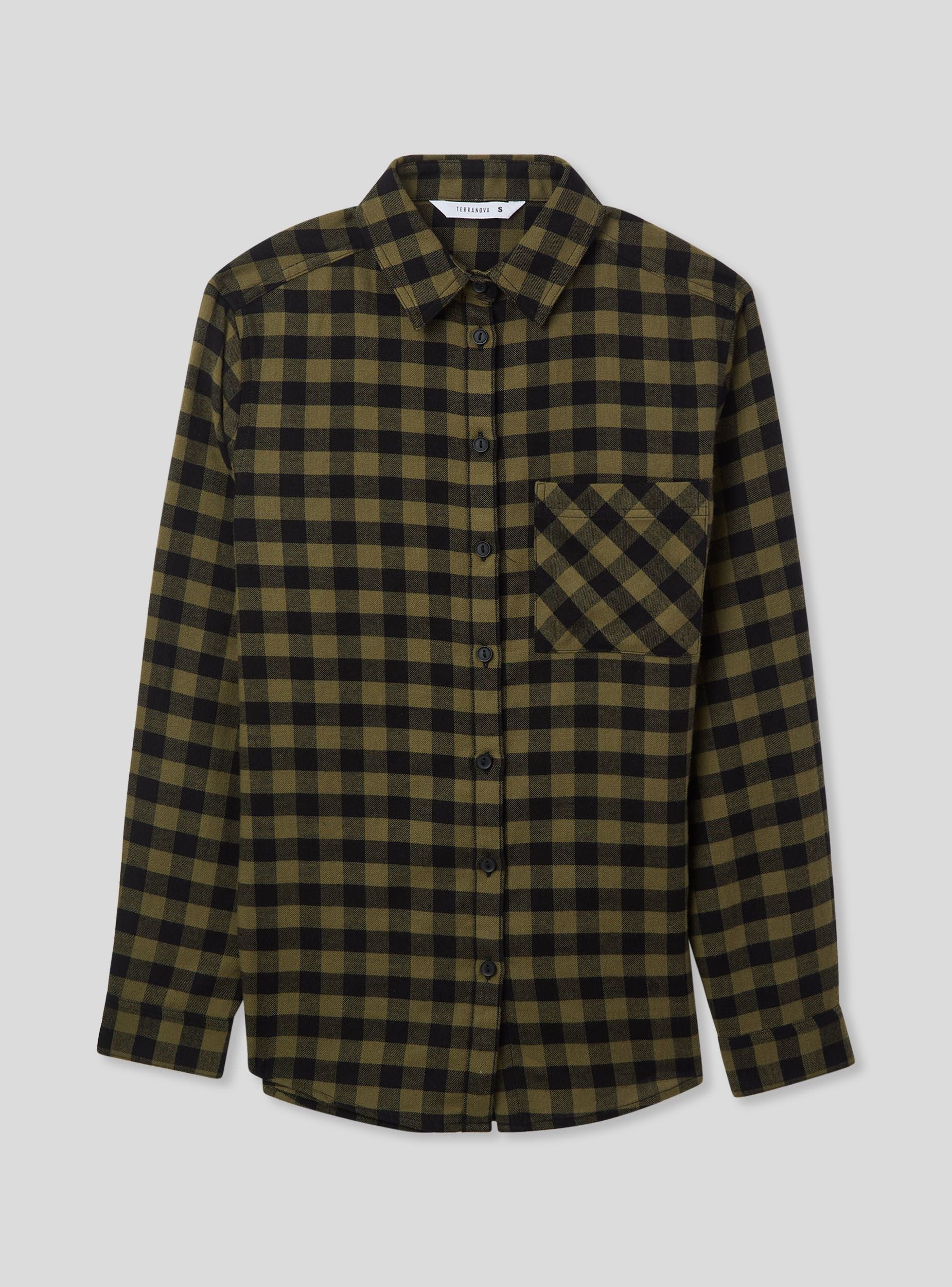 Koszula damska z flaneli w kratę, ma zapięcie z przodu na guziki. Koszula ma klasyczny kołnierzyk i kieszonkę na piersi. Długie rękawy kończą się zapięciem na mankietach. Koszula oferuje wygodne dopasowanie i jest odpowiednia na sezon zimowy.Szczegóły