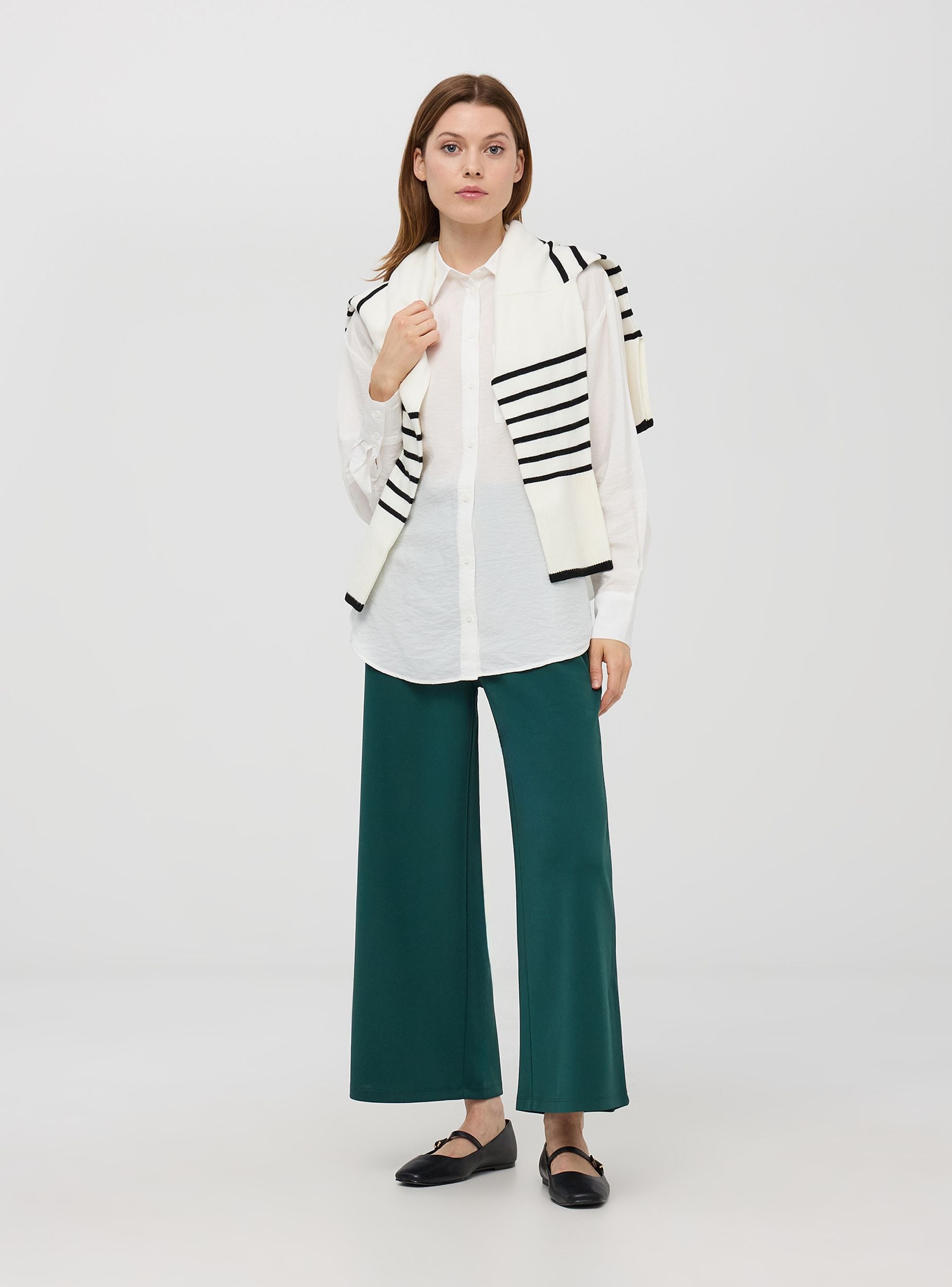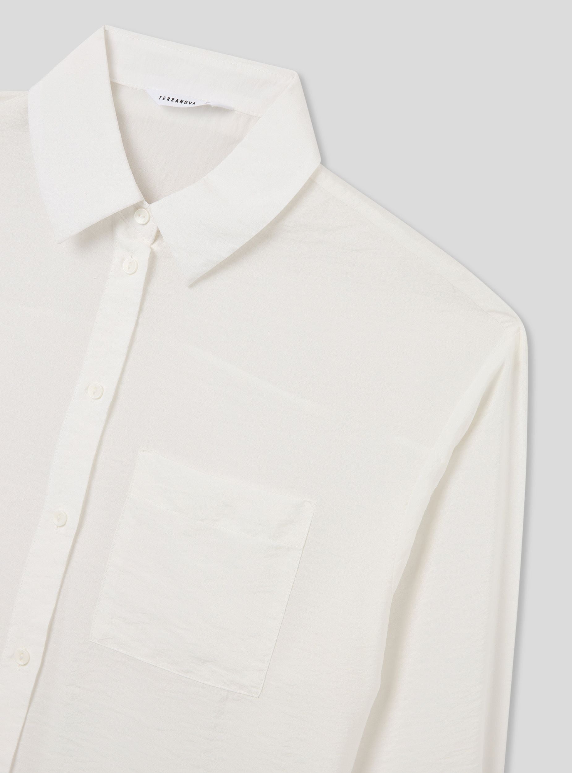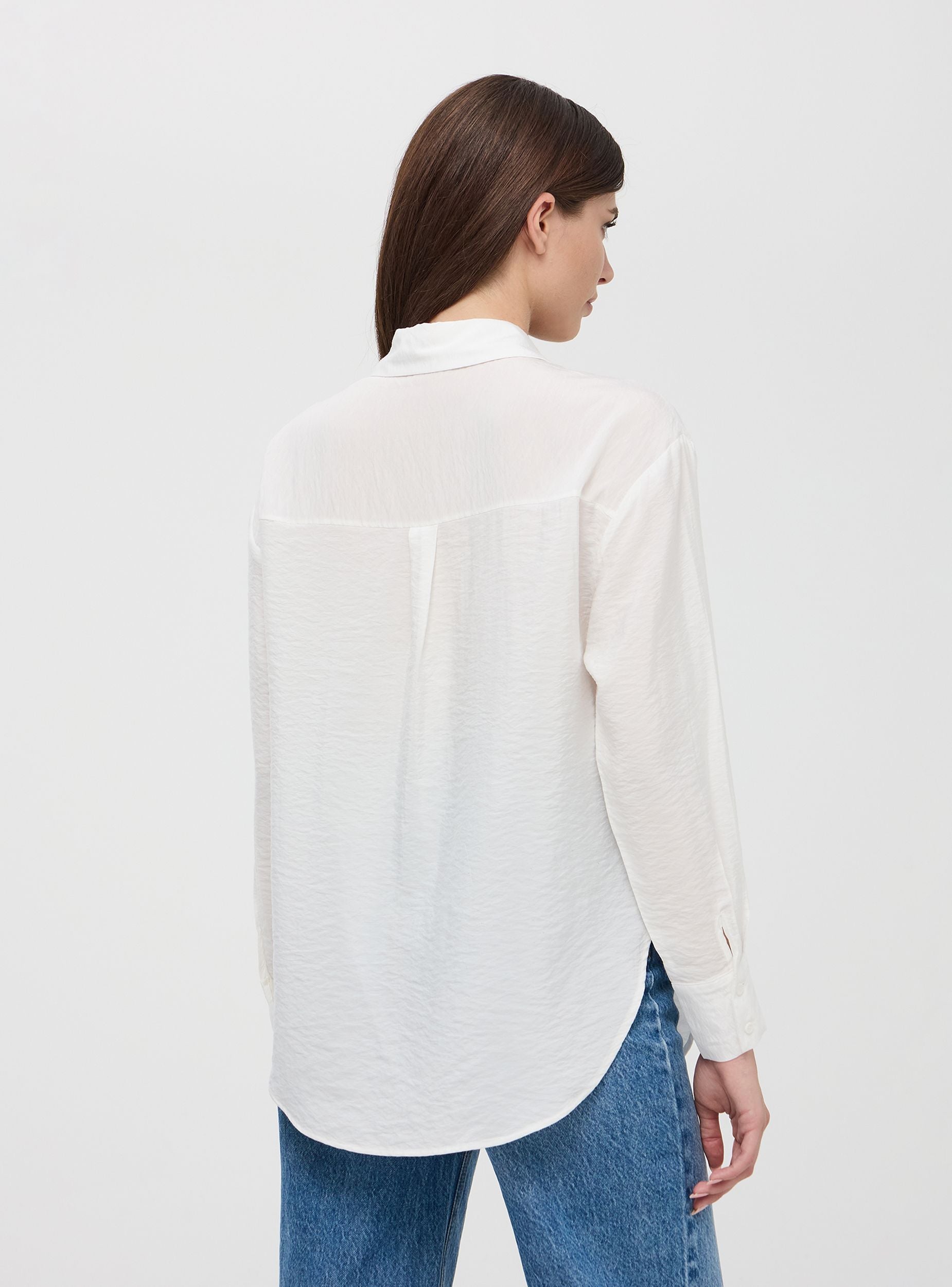 Koszula z długim rękawem wykonana z mieszanki wiskozy. Posiada klasyczny kołnierzyk, kieszonkę po lewej stronie klatki piersiowej oraz zapięcie z przodu na guziki w tym samym kolorze. Dopasowanie jest wygodne i luźne, odpowiednie do kontekstów casualowych i formalnych.