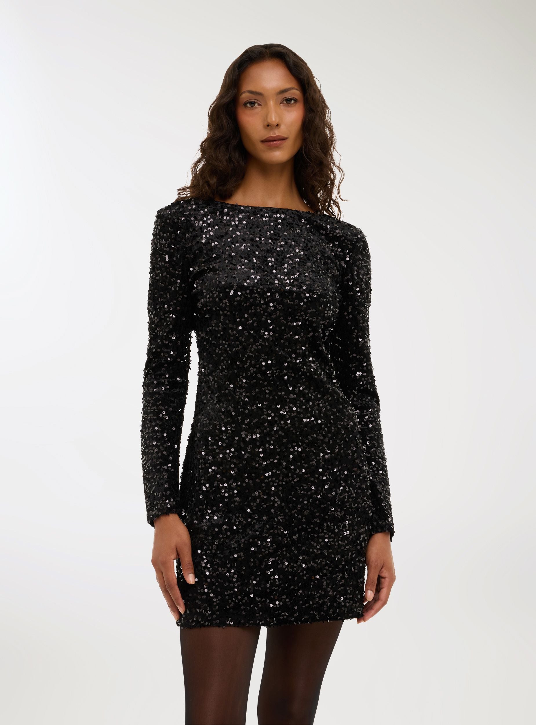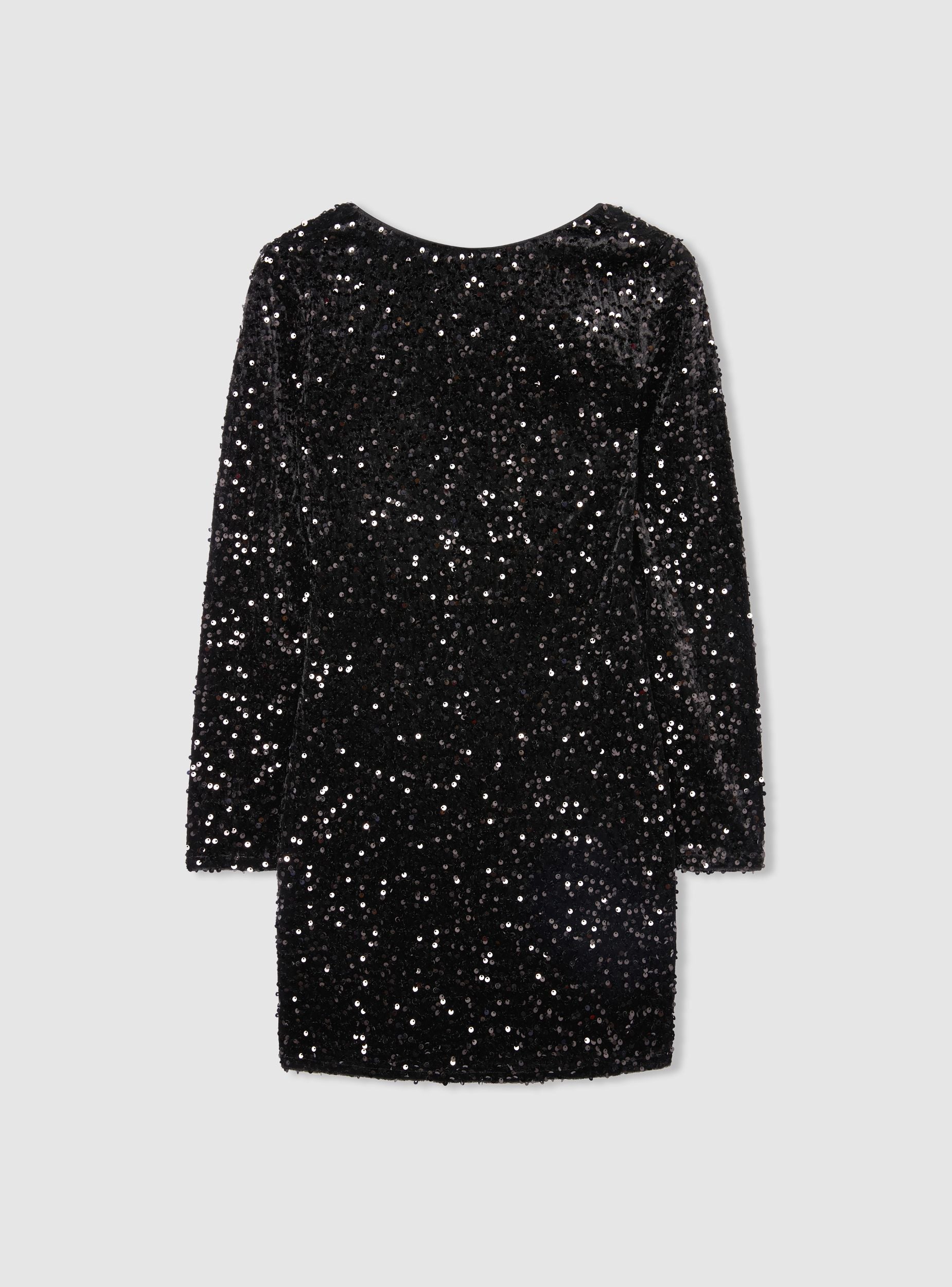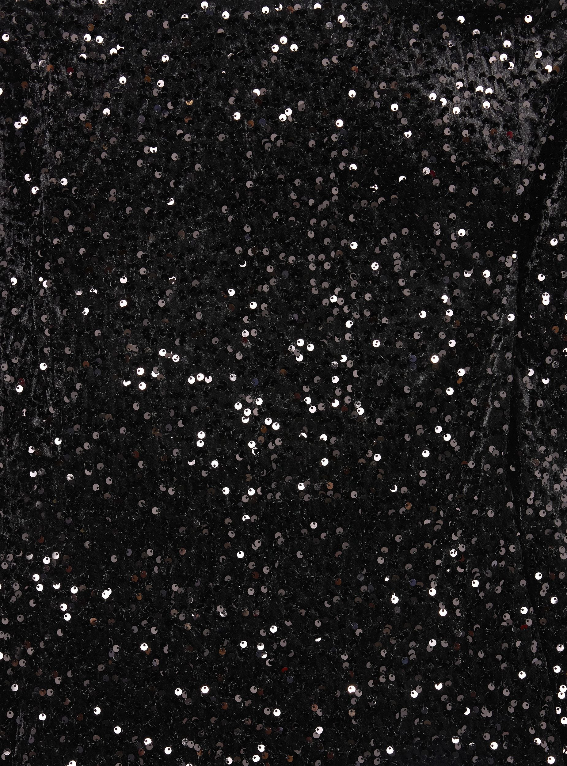 Sukienka damska z cekinami, idealna na eleganckie wieczory i specjalne okazje. Posiada okrągły dekolt oraz dopasowany krój podkreślający sylwetkę. Długie rękawy dodają szyku, a błyszczący design sprawia, że jest idealna, by zabłysnąć na każdym wydarzeniu. Wszechstronny i efektowny element garderoby na niezapomniany look.Szczegóły
