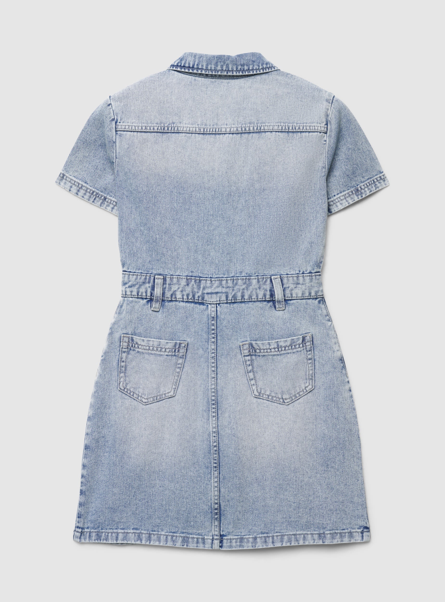 Abito da donna in stile chemisier, perfetto per il tempo libero e look casual urbani. Modello a maniche corte con colletto a camicia e chiusura frontale con bottoni a pressione. Presenta cintura integrata con passanti, tasche anteriori arrotondate e tasche applicate sul retro. Linee sagomate sul corpino valorizzano la vestibilità. Da abbinare a sneakers o sandali per outfit versatili.Dettagli