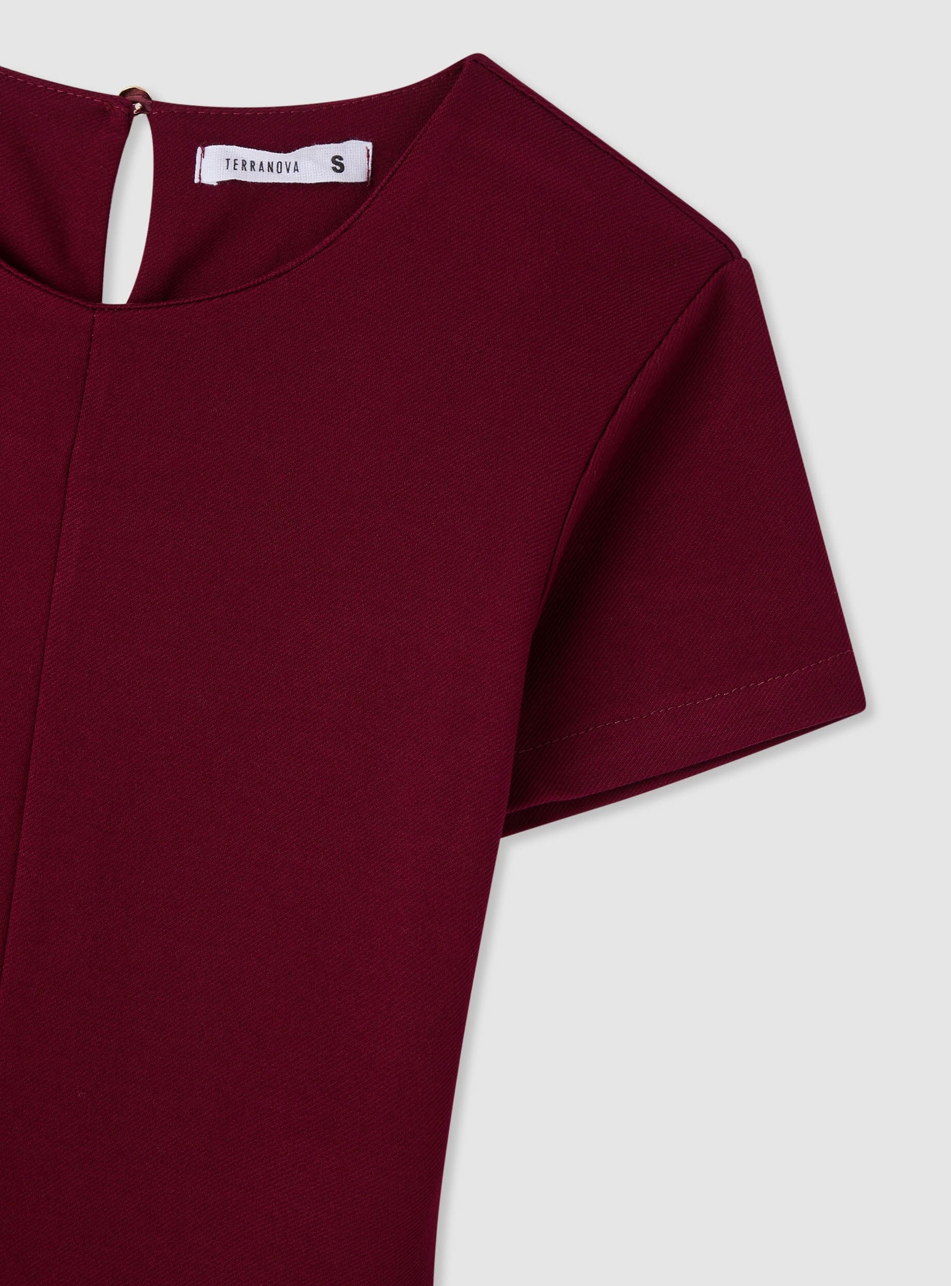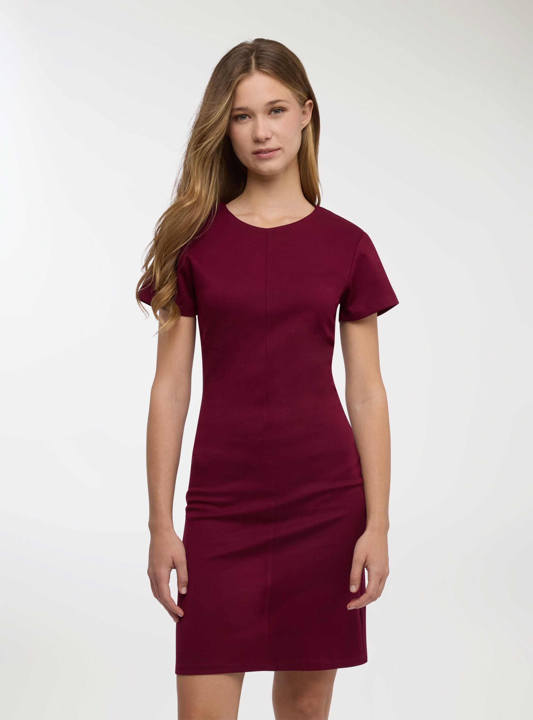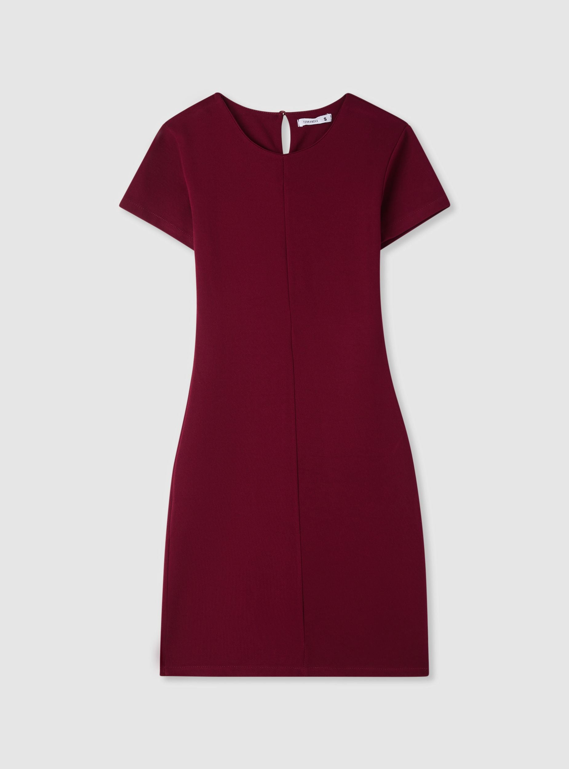 Abito da donna in tinta unita con linea dritta e vestibilità regular. Presenta girocollo, maniche corte e dettaglio di apertura posteriore con bottone. Lunghezza sopra il ginocchio, ideale per l’ufficio o il tempo libero. Facile da abbinare a blazer e décolleté per un look formale, oppure a cardigan e stivali per occasioni casual.Dettagli