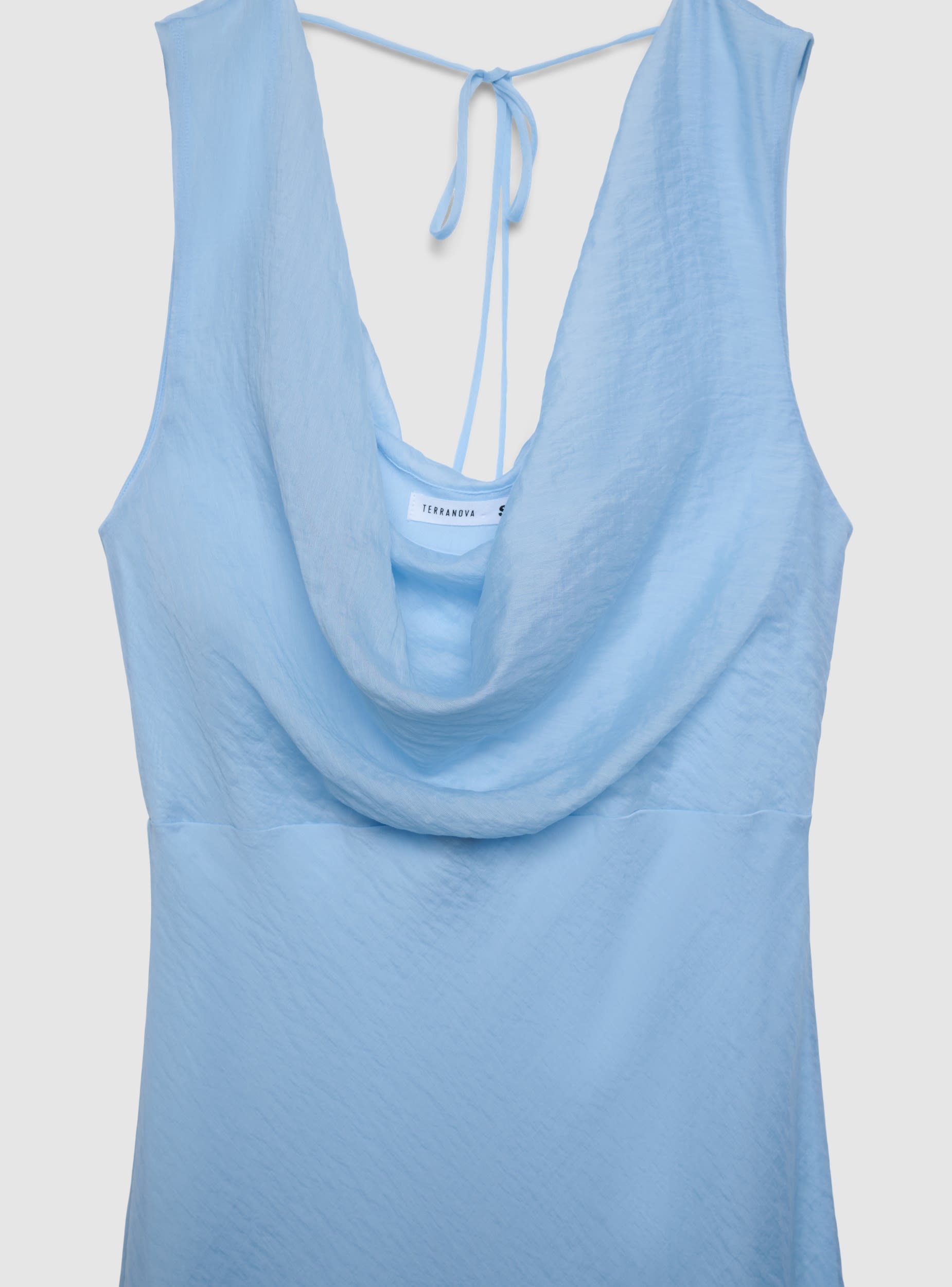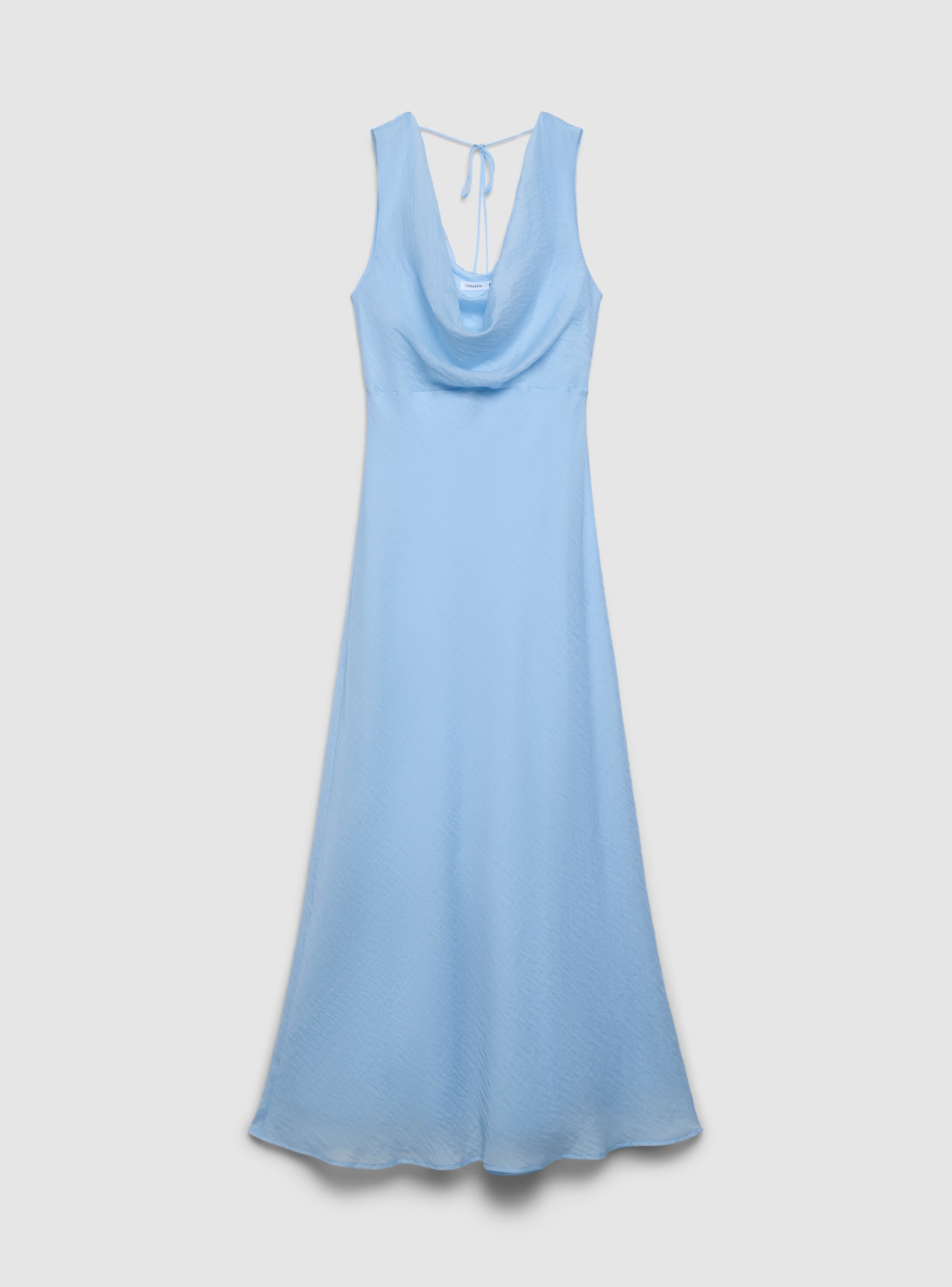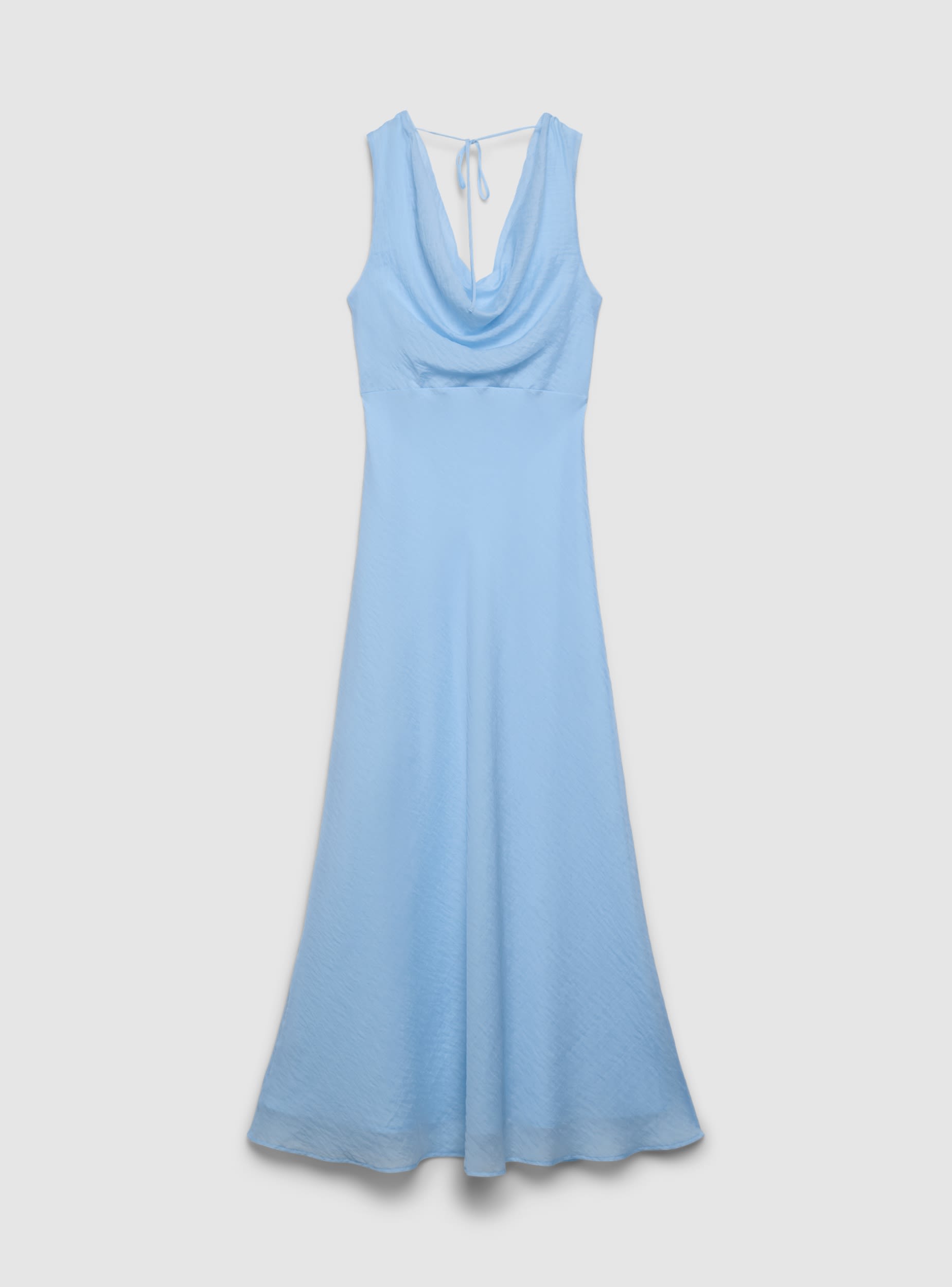 Abito da donna midi svasato, tinta unita. Senza maniche con scollo morbido sul davanti e profondo sul retro, impreziosito da laccetto da annodare. Linea fluida che cade dalla vita e valorizza la silhouette, ideale per cerimonie, serate o occasioni speciali. Facile da abbinare a sandali con tacco o ballerine e una borsa a tracolla per un look elegante.Dettagli
