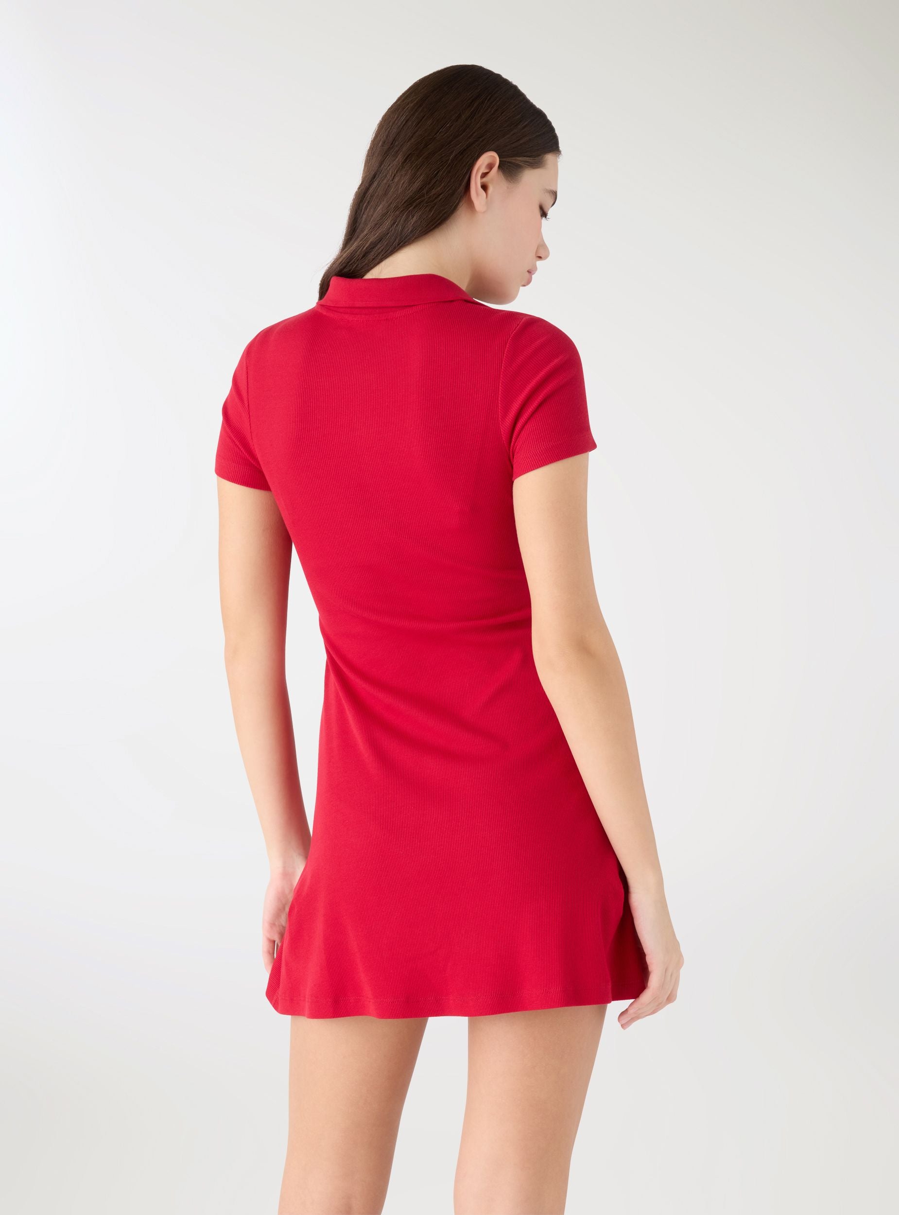 Abito da donna con collo polo e mezza abbottonatura a tre bottoni, ideale per il tempo libero e look urban. Linea svasata con vestibilità regular che accompagna la figura senza costringere. Maniche corte e finitura a tinta unita per abbinamenti versatili con sneakers o sandali. Perfetto anche con una giacca leggera per la mezza stagioneDettagli