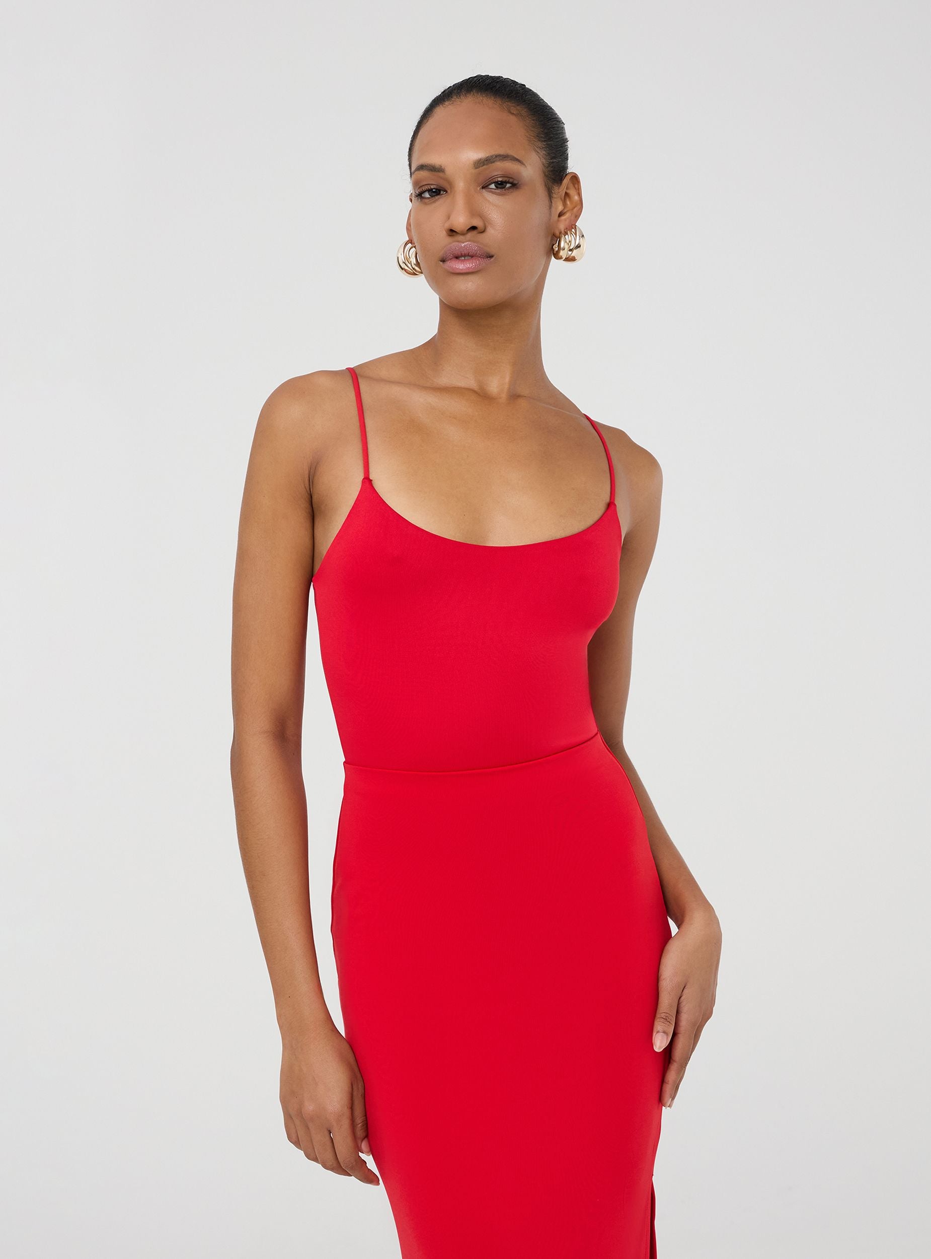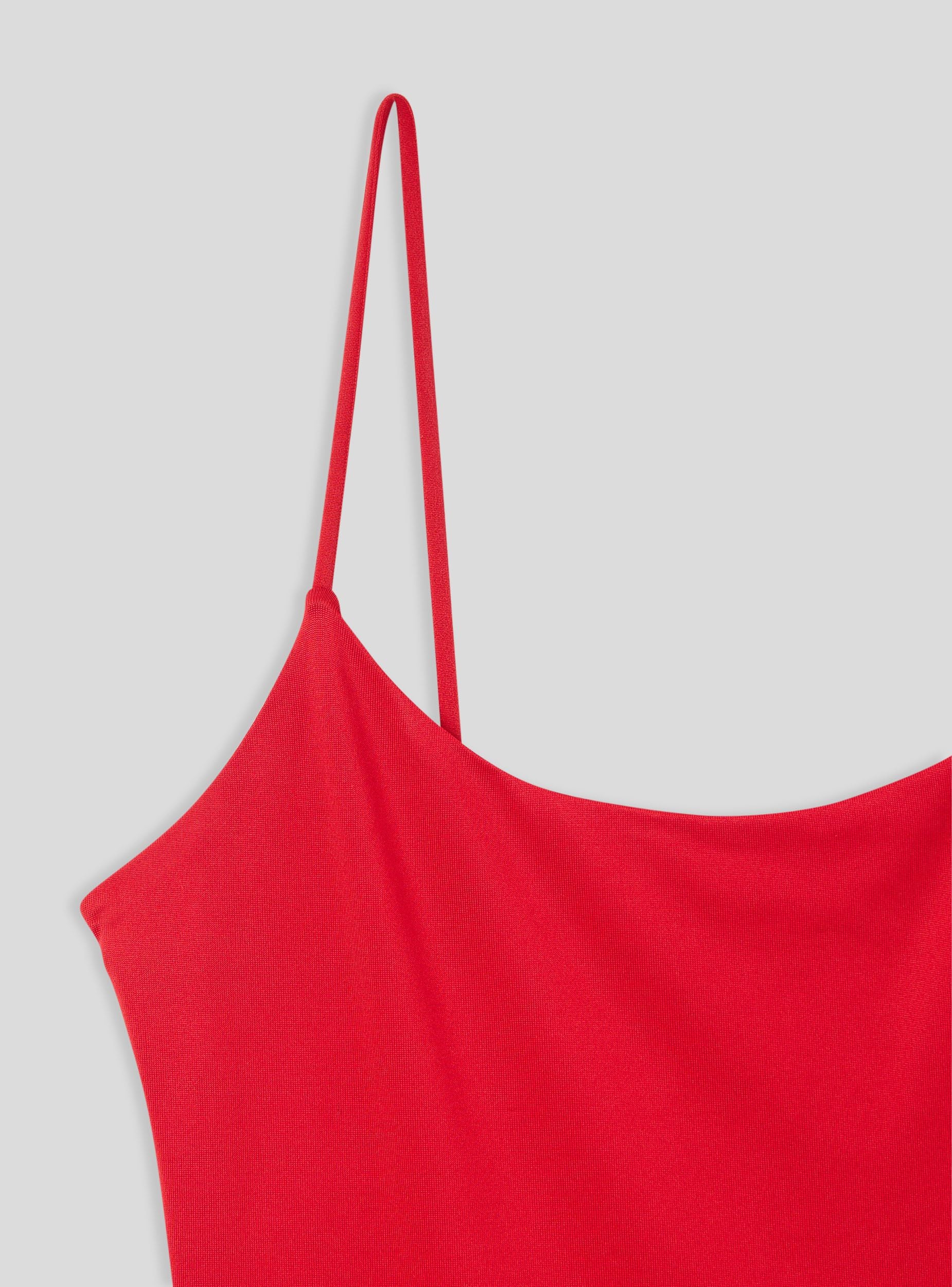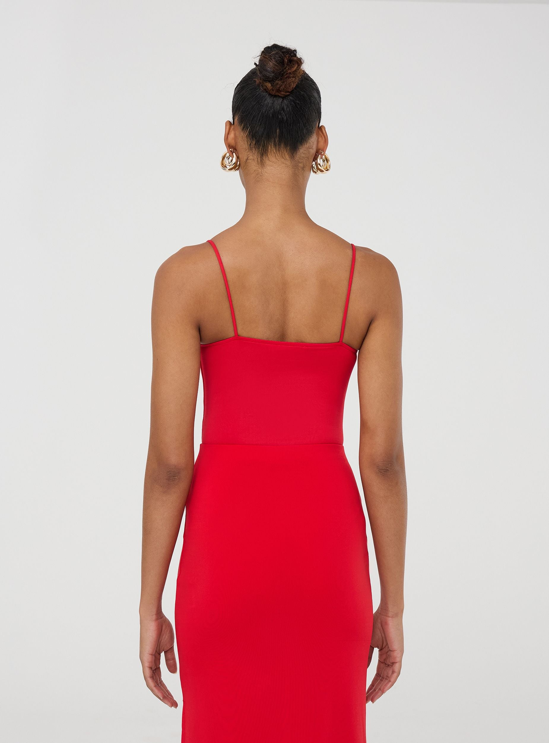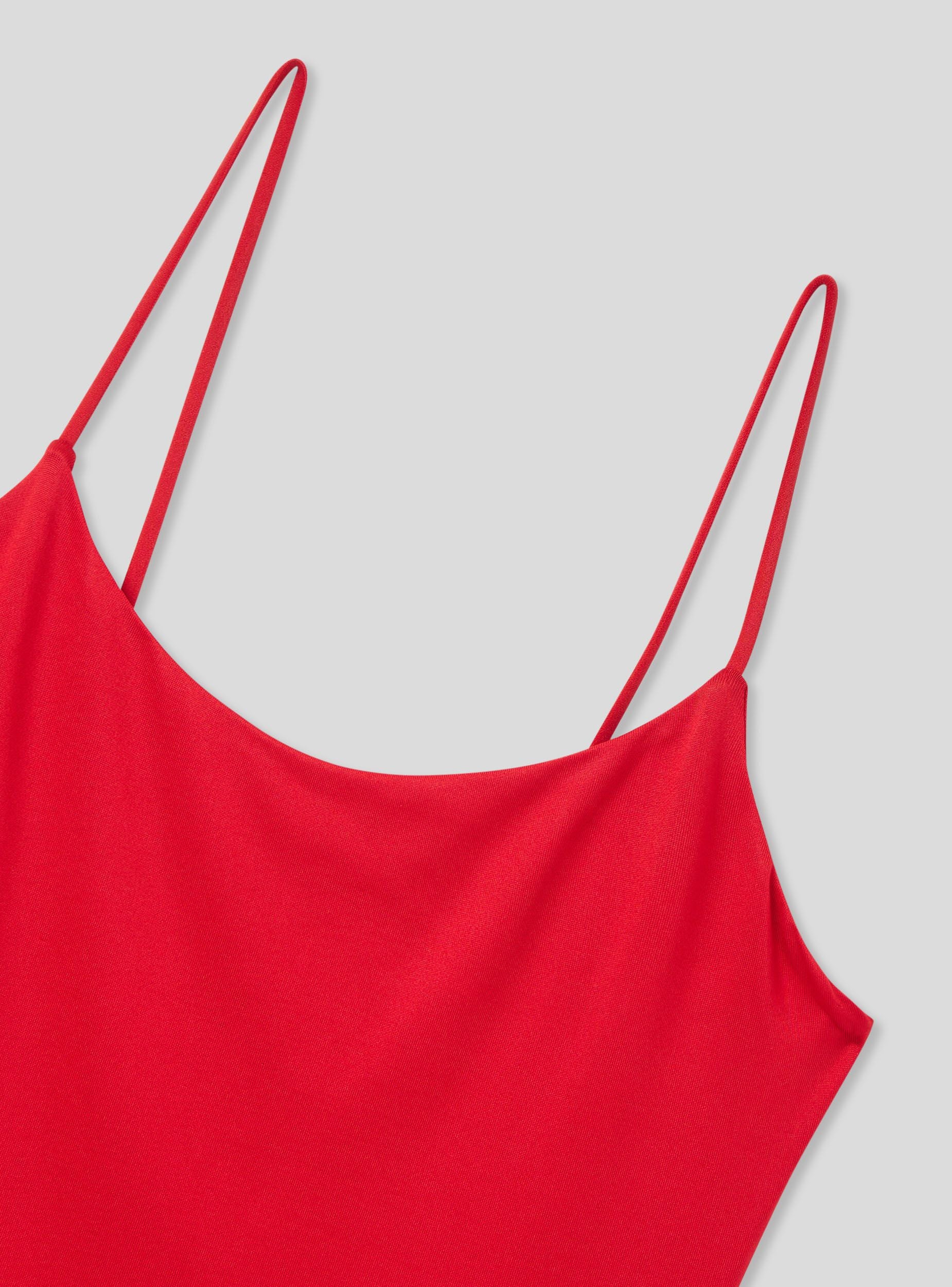 Top da donna dall'eleganza minimal, caratterizzato da una tinta unita che lo rende perfetto per ogni occasione. Le spalline sottili aggiungono un tocco delicato e femminile, mentre il design aderente valorizza la silhouette con stile. Ideale da abbinare a pantaloni o gonne, è un capo versatile che unisce semplicità e raffinatezza per creare look sempre curati.