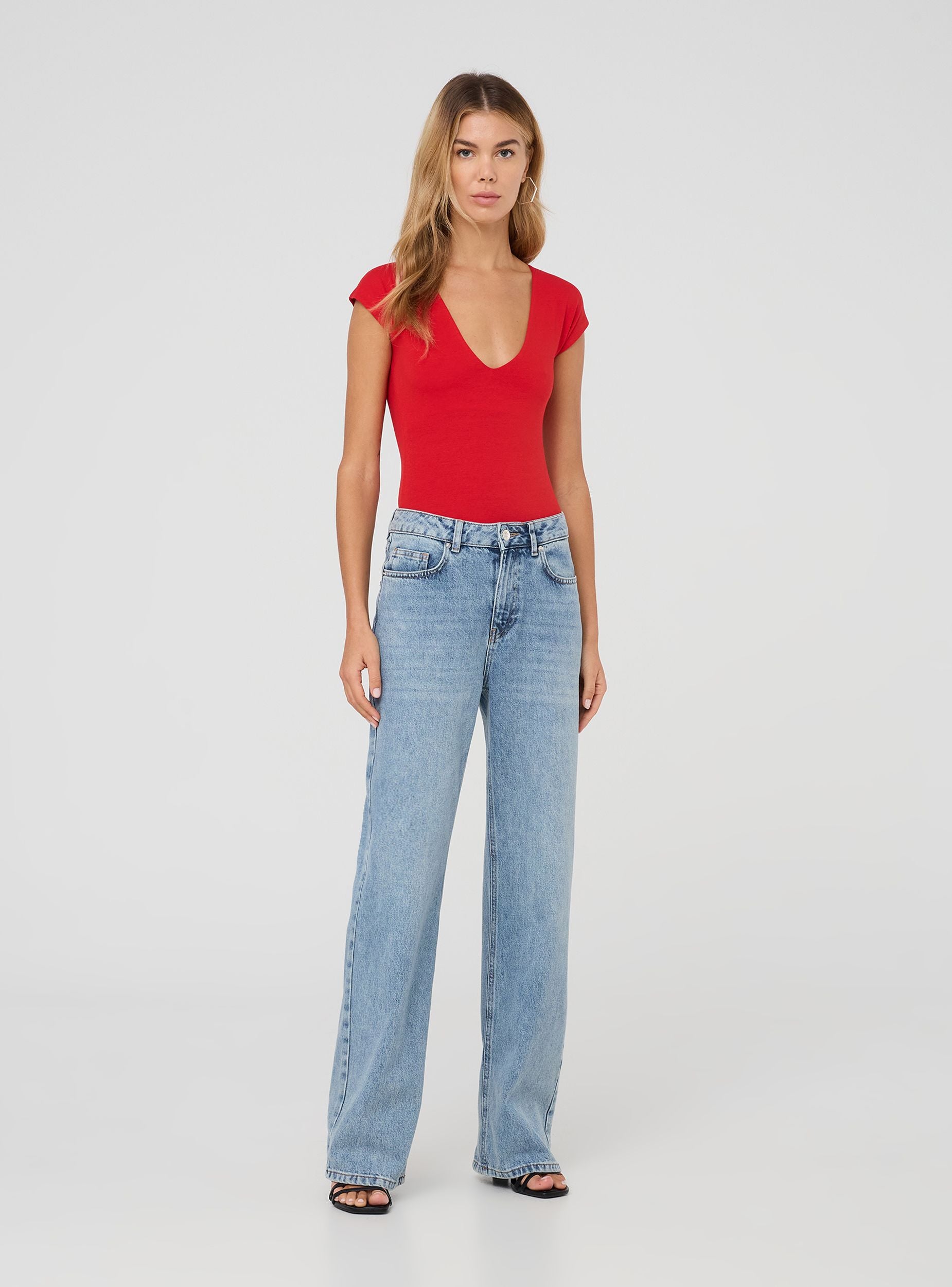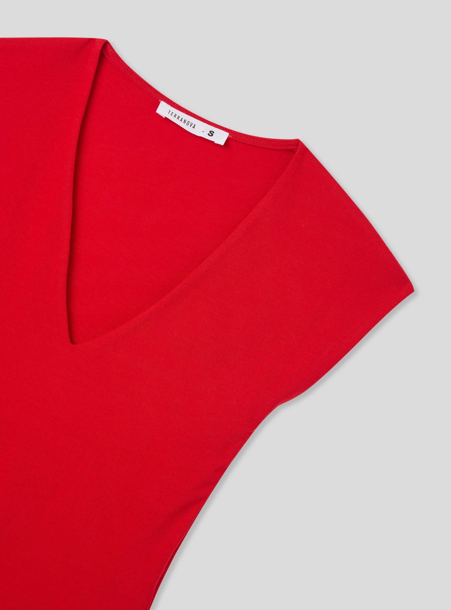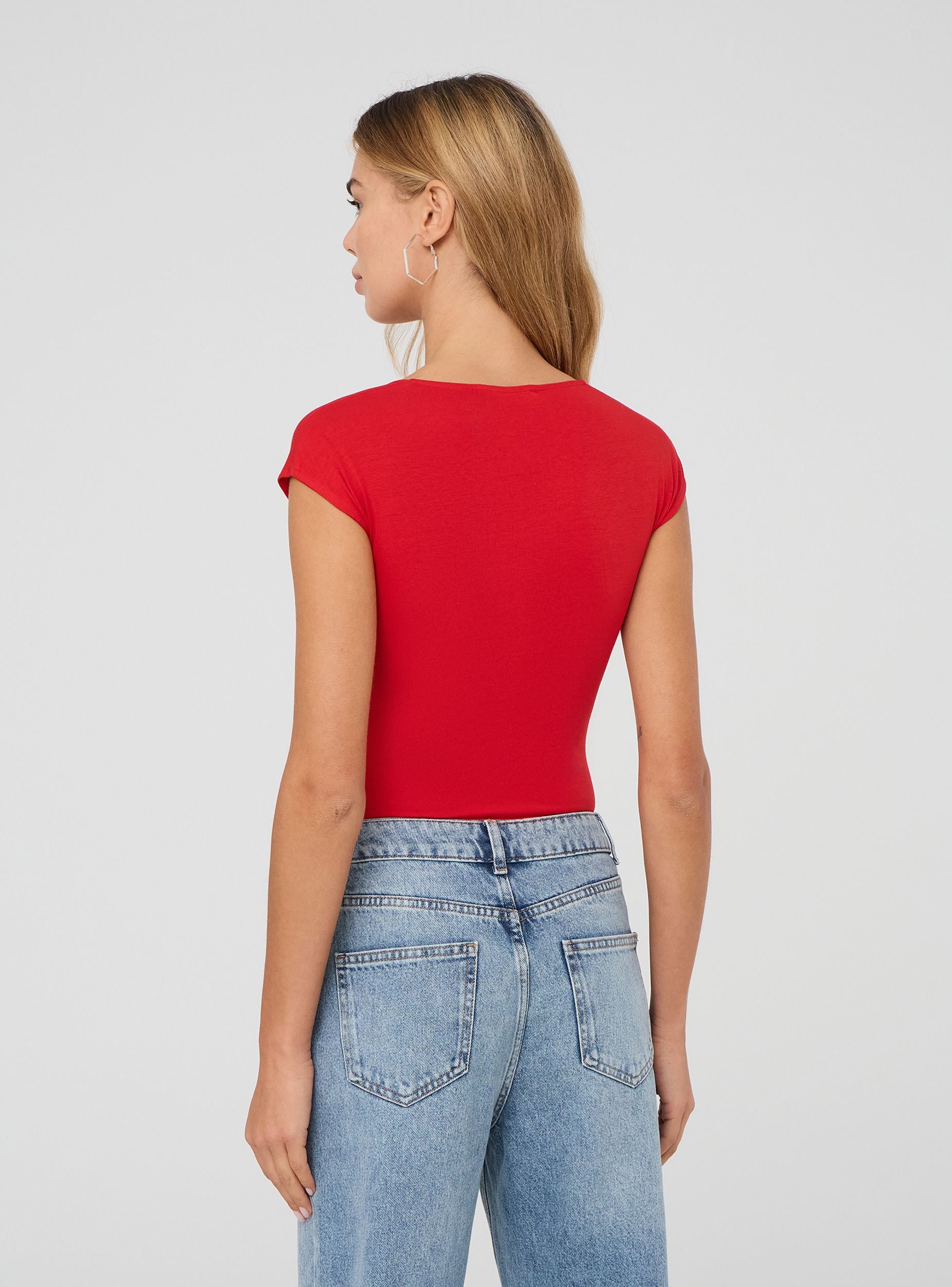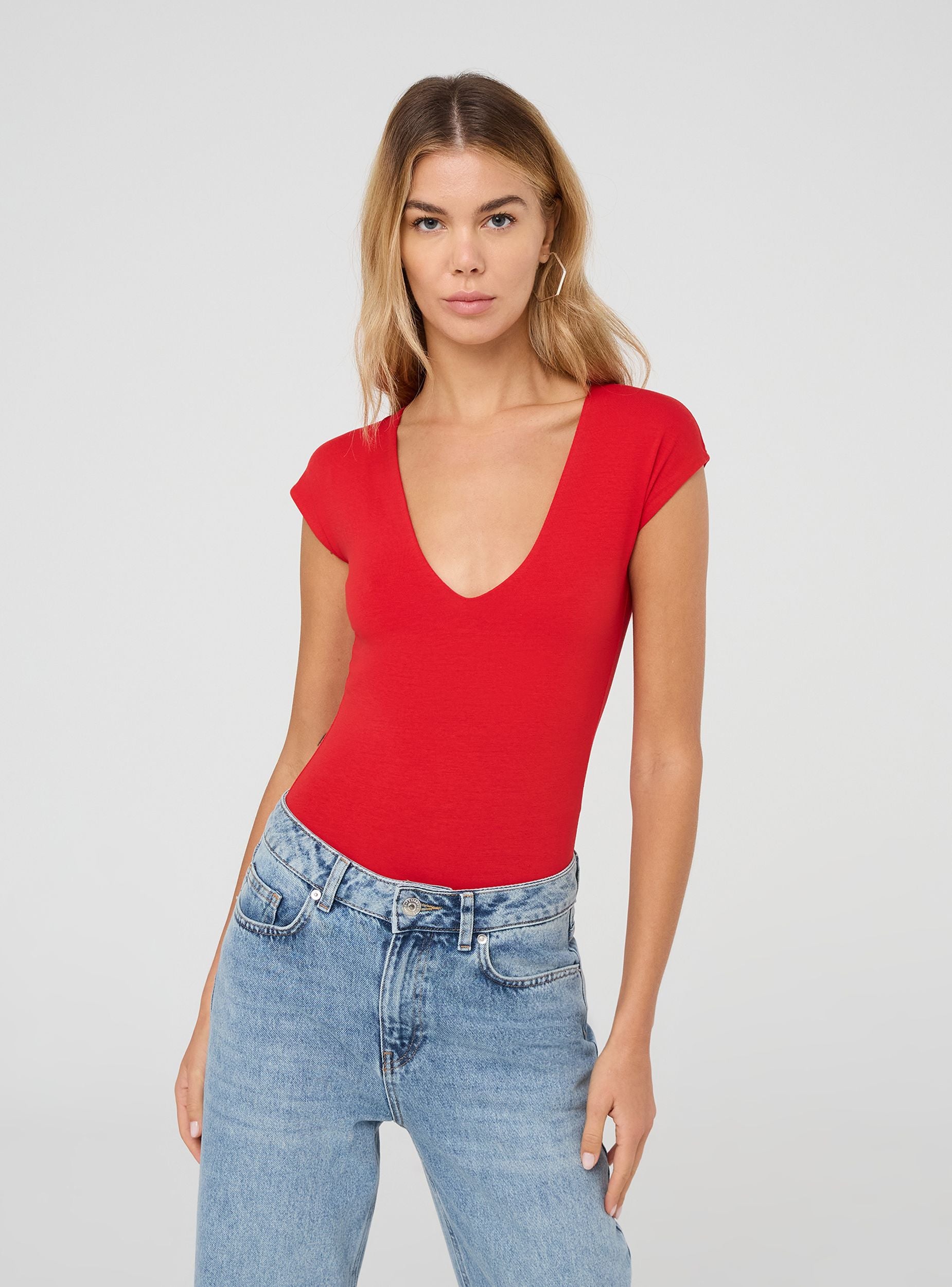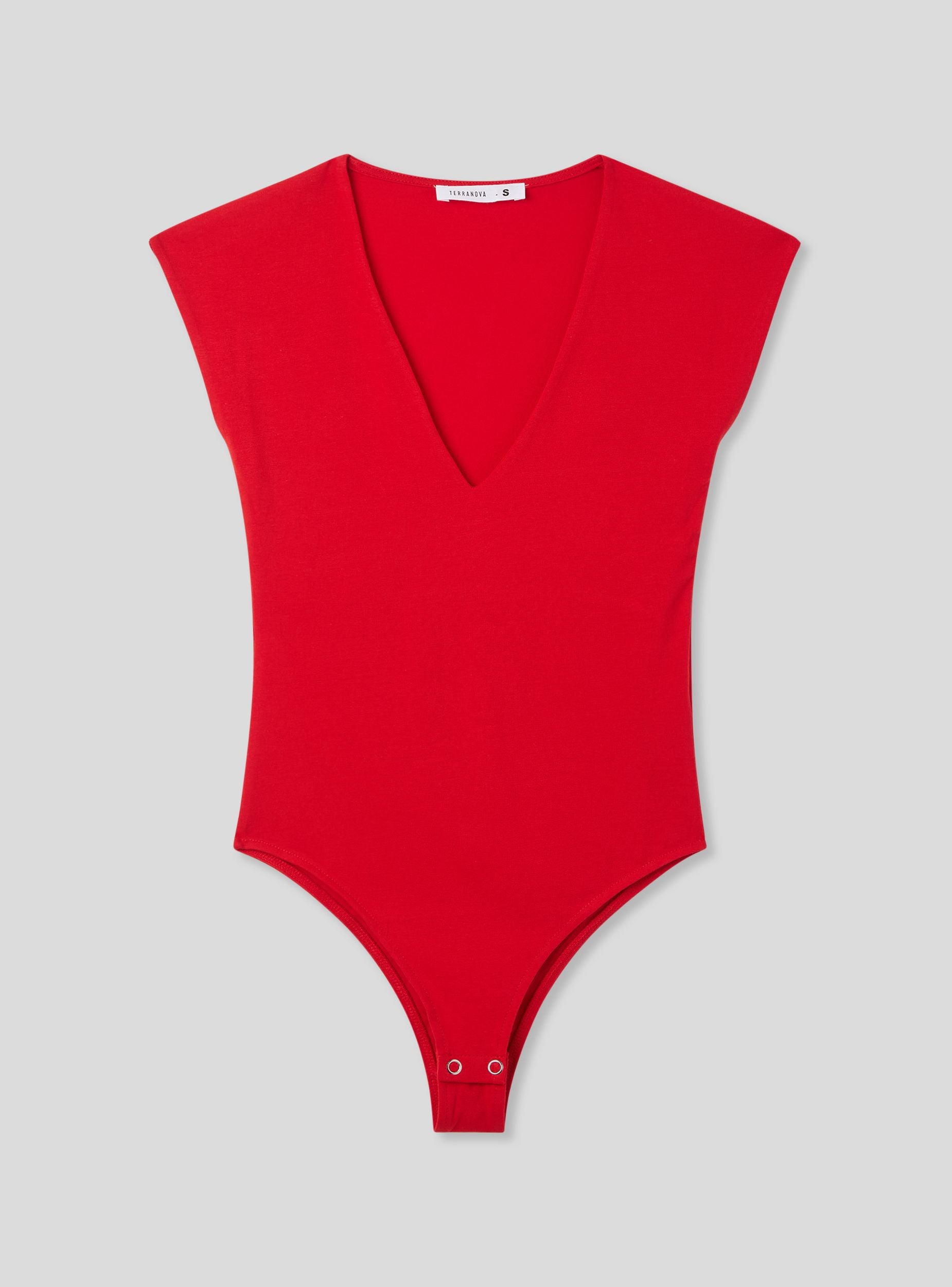 Body da donna dallo stile essenziale e moderno, caratterizzato da un tessuto elasticizzato che si adatta perfettamente alla silhouette, garantendo comfort e vestibilità ottimale. Presenta una tinta unita, ideale per abbinamenti versatili. Lo scollo a V aggiunge un tocco femminile e raffinato, rendendolo perfetto sia per look casual che per outfit più eleganti. La chiusura a bottoni a pressione sul fondo garantisce praticità e comodità durante l'uso. Un capo ideale per chi cerca uno stile semplice ma elegante.Dettagli