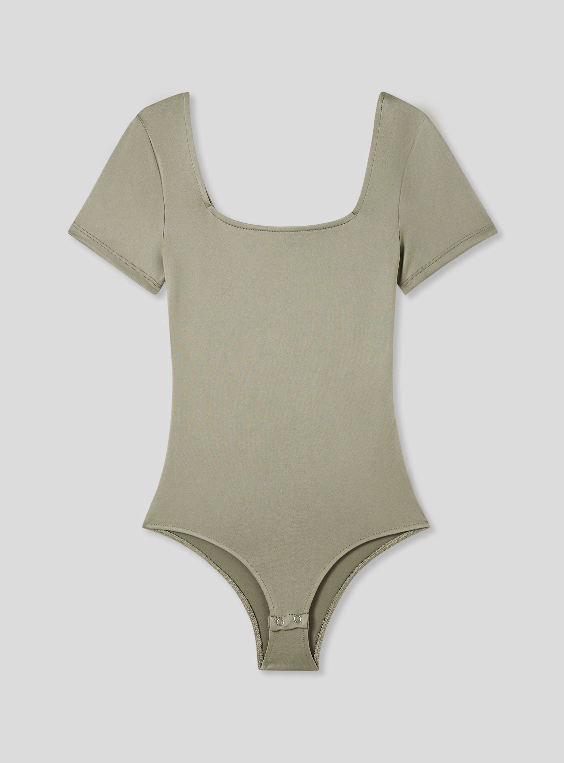 Body da donna con scollo quadrato, caratterizzato da una linea aderente e tinta unita. Le maniche corte completano il design essenziale, mentre il tessuto elasticizzato assicura una vestibilità comoda e sagomata. Presenta bottoni a pressione sul fondo per una chiusura pratica e sicura.Dettagli