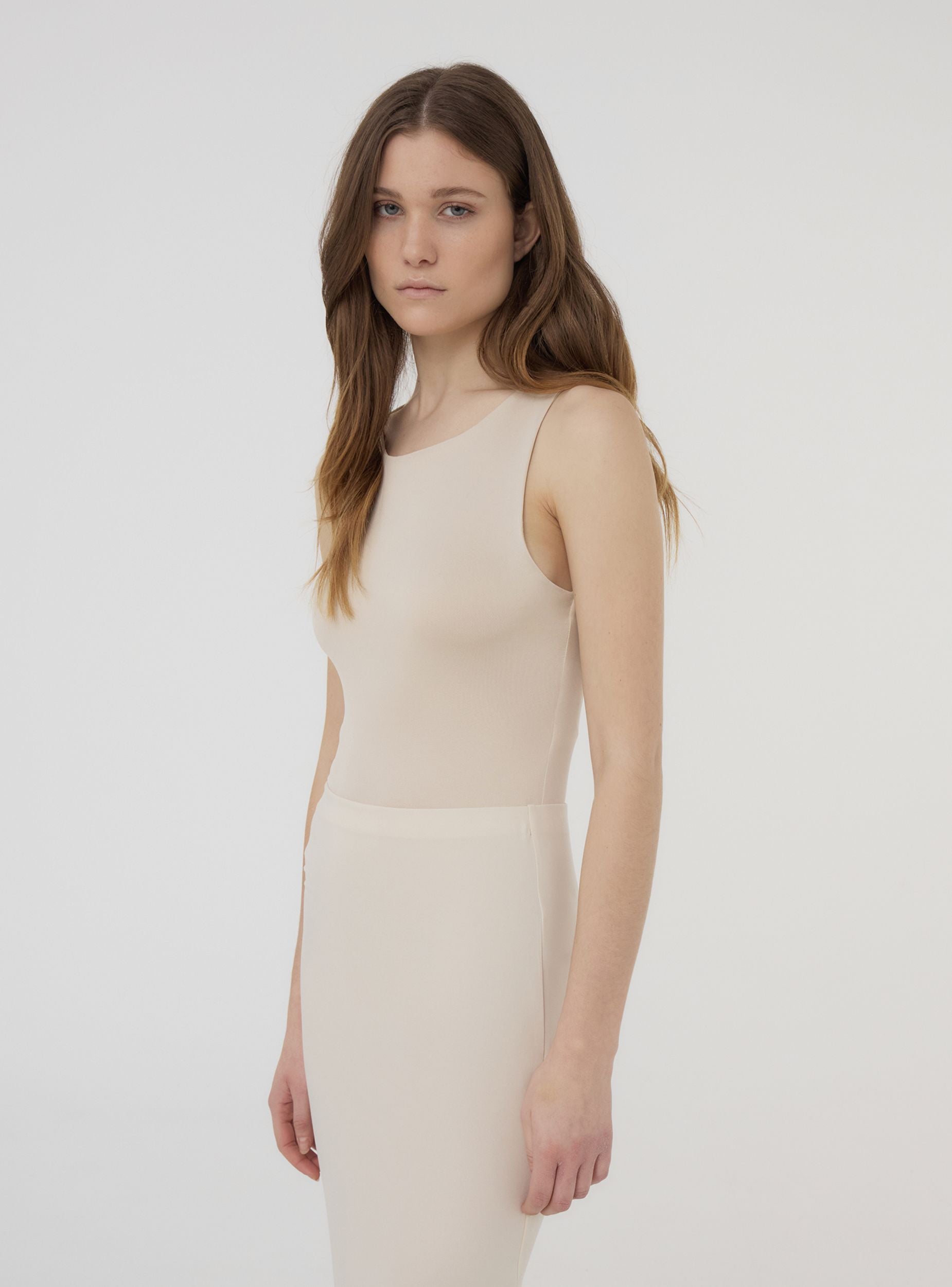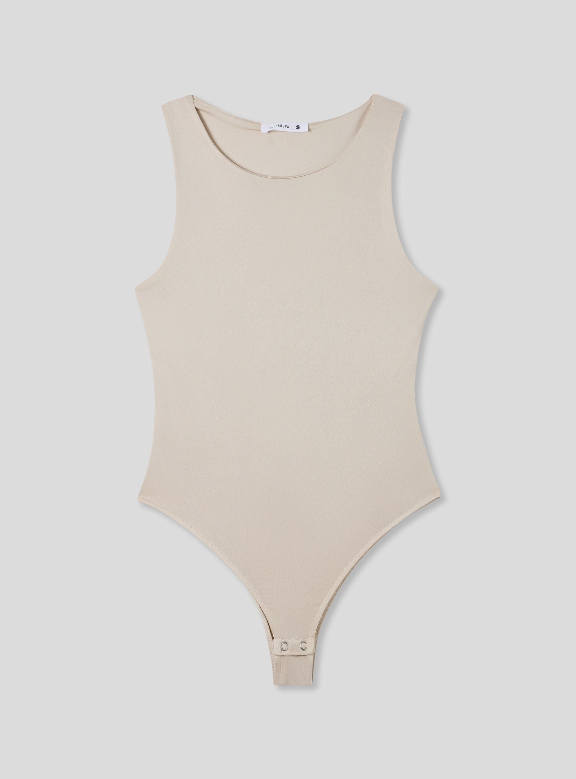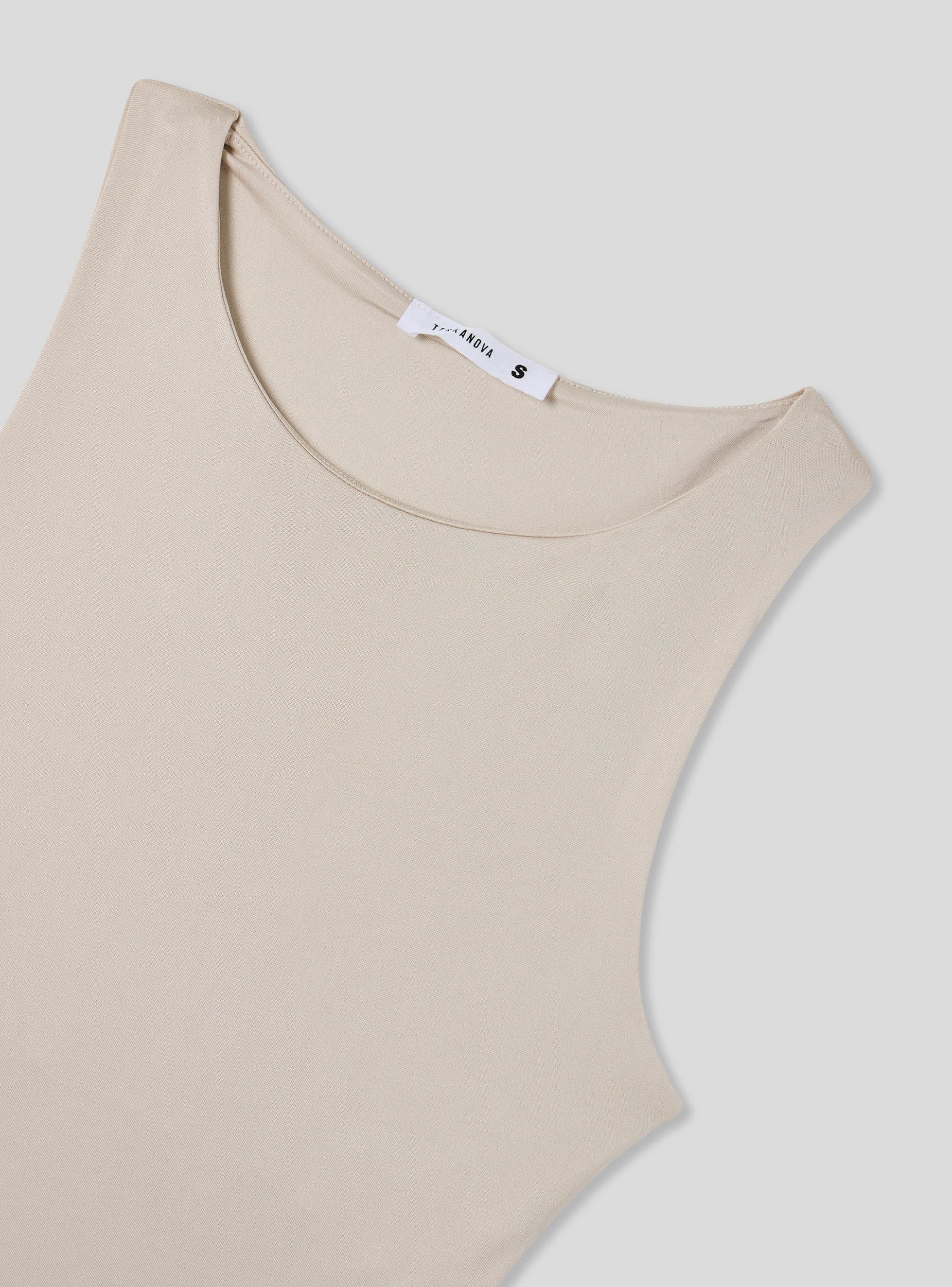 Body da donna a tinta unita, caratterizzato da un design elasticizzato che si adatta perfettamente alla figura, garantendo una vestibilità aderente e confortevole. La scollatura arrotondata e le spalline ampie conferiscono un tocco minimalista e versatile. Il capo è dotato di una pratica chiusura con bottoni a pressione nella parte inferiore, ideale per indossarlo con facilità. Un capo essenziale per creare look eleganti o casual, da abbinare a jeans o gonne per un tocco di stile moderno e femminile.Dettagli