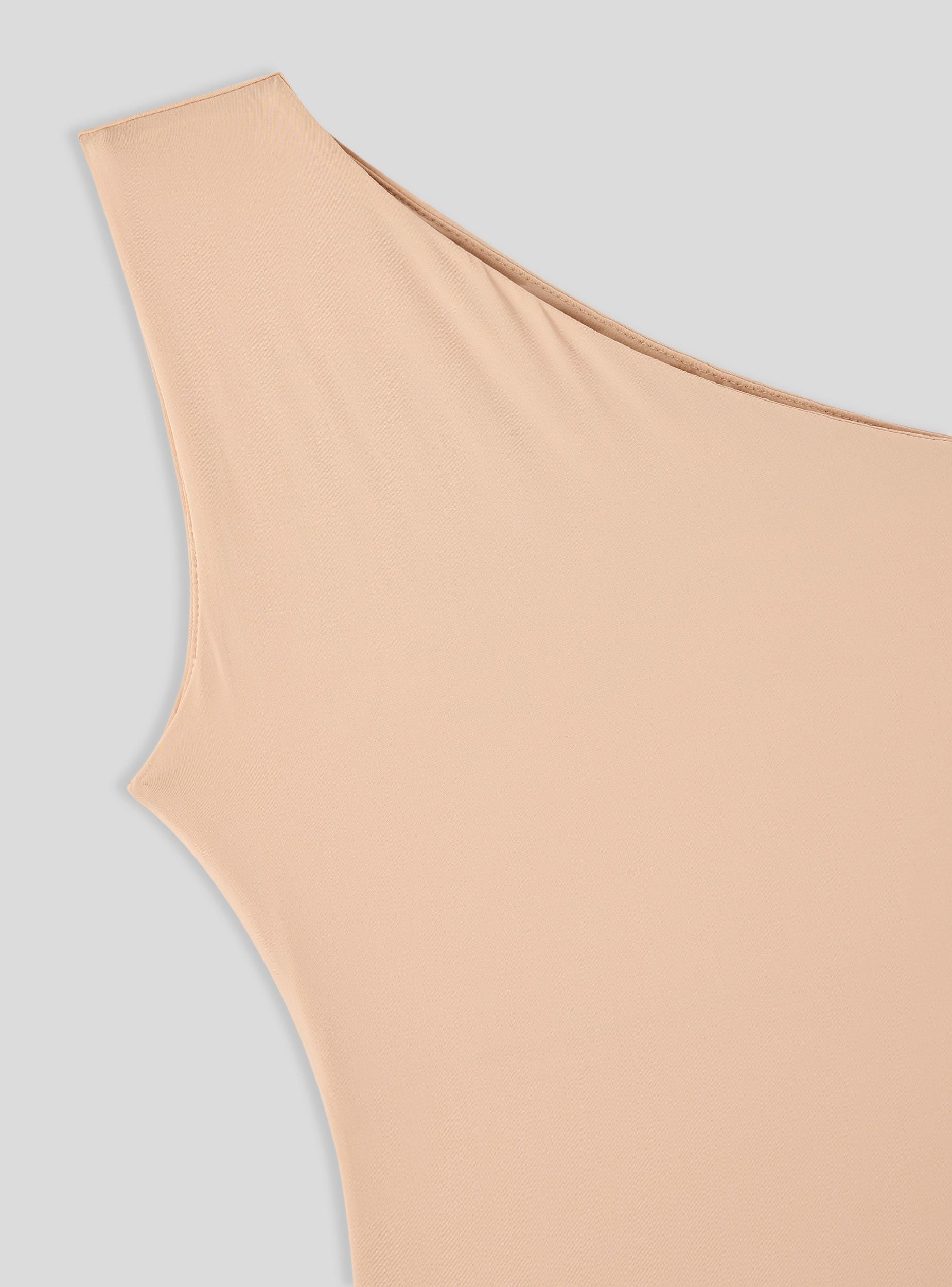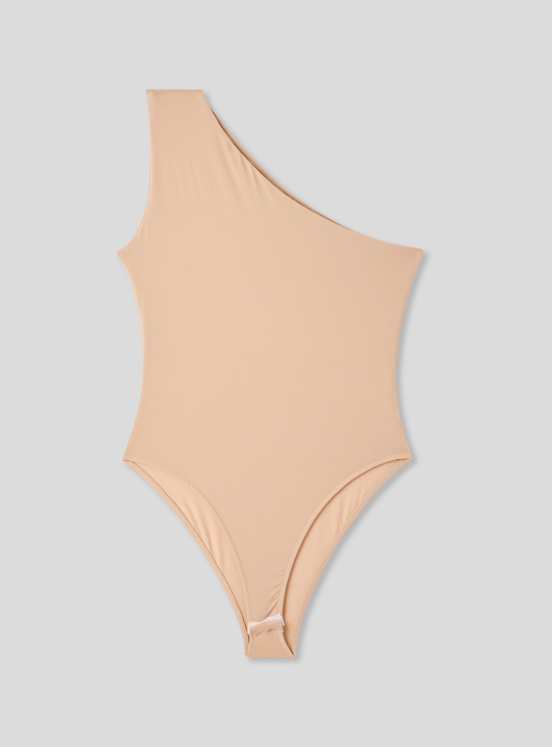 Body da donna monospalla a tinta unita, ideale per look moderni e versatili. Il design aderente valorizza la silhouette, mentre la spalla scoperta aggiunge un tocco di originalità. Perfetto da abbinare a jeans o gonne per outfit sia casual che eleganti. Chiusura pratica al cavallo. Ideale per uno stile essenziale e contemporaneo.