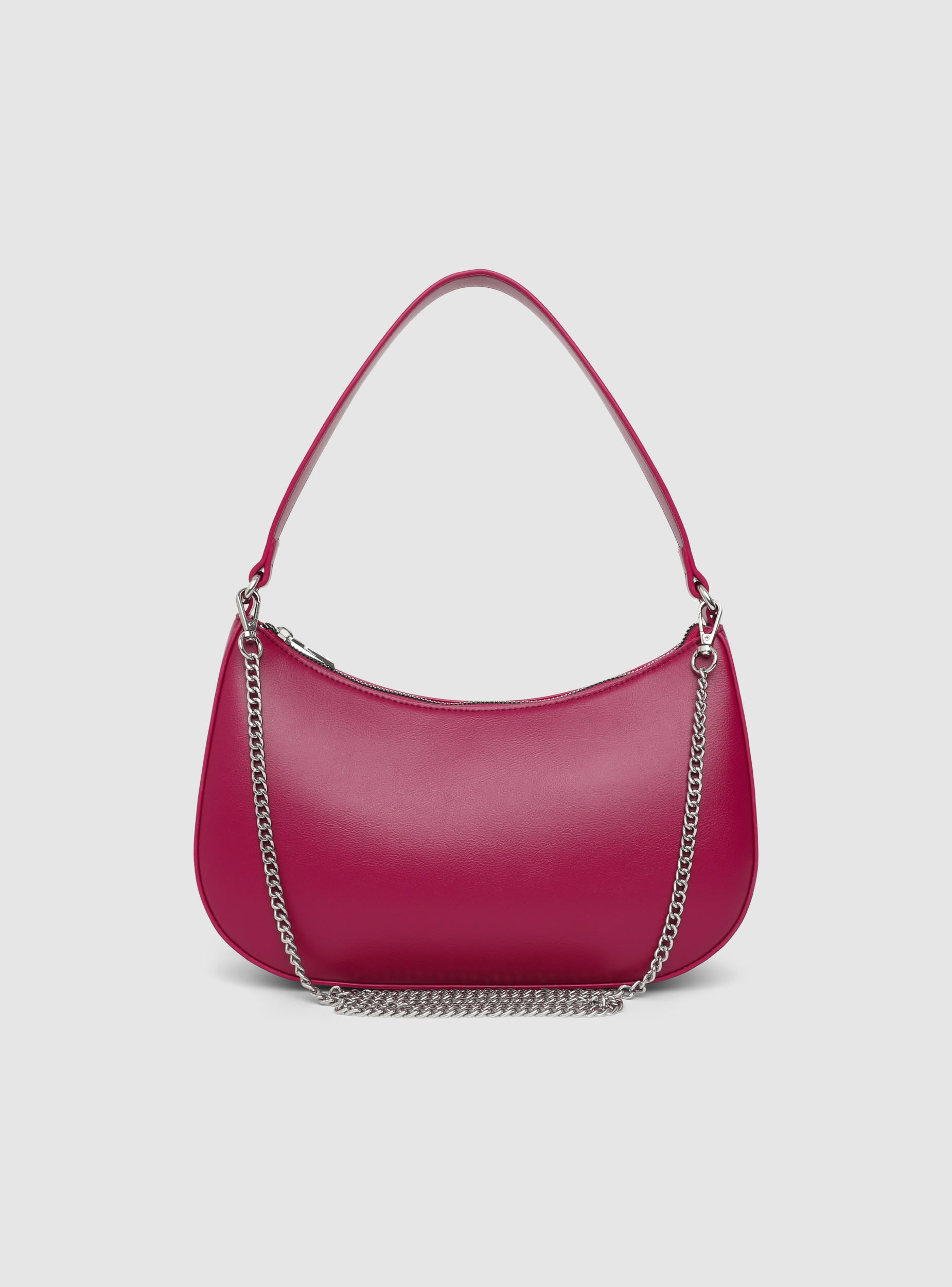 Borsa da donna a tracolla con silhouette a mezzaluna. Tracolla a catena opzionale per portarla crossbody. Chiusura con zip superiore per tenere al sicuro l’essenziale. Design minimal e pulito, ideale per uscite serali o look urbani. Dimensioni lunghezza 28,5cm x larghezza 3cm x altezza 15,5cm.Dettagli