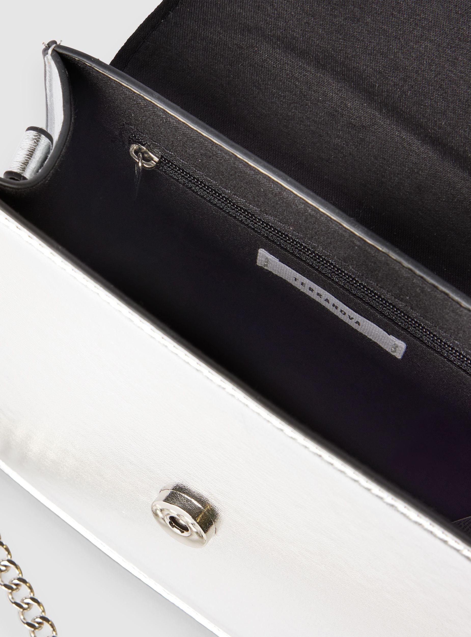 Borsa a tracolla da donna con finitura laminata, perfetta per dare un tocco luminoso al look. Il design strutturato e compatto la rende ideale per portare con sé l’essenziale, mentre la tracolla a catena aggiunge un dettaglio moderno. Versatile e femminile, si indossa facilmente sia a spalla che crossbody. Un accessorio di tendenza per completare outfit da giorno o da sera con stile. Dimensioni: Altezza 12,5 cm, Lunghezza 18,5 cm, Profondità 8,7 cm.