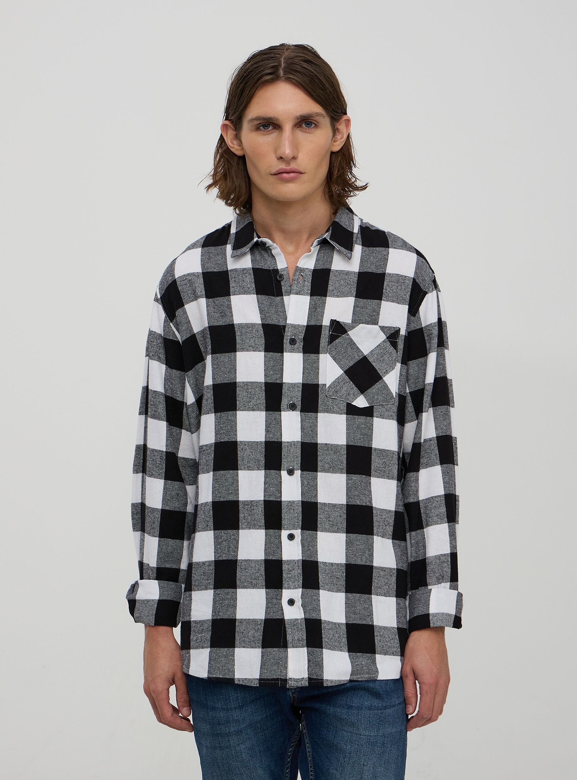 Camicia da uomo a manica lunga con fantasia a quadri, caratterizzata da un tessuto in flanella e una vestibilità regolare. Il capo presenta un colletto tradizionale e una chiusura frontale con bottoni. Sul petto, una tasca applicata aggiunge un tocco di praticità e stile. Ideale per un look casual ma curato, perfetto per essere indossato da solo o abbinato a strati per un outfit versatile.Dettagli