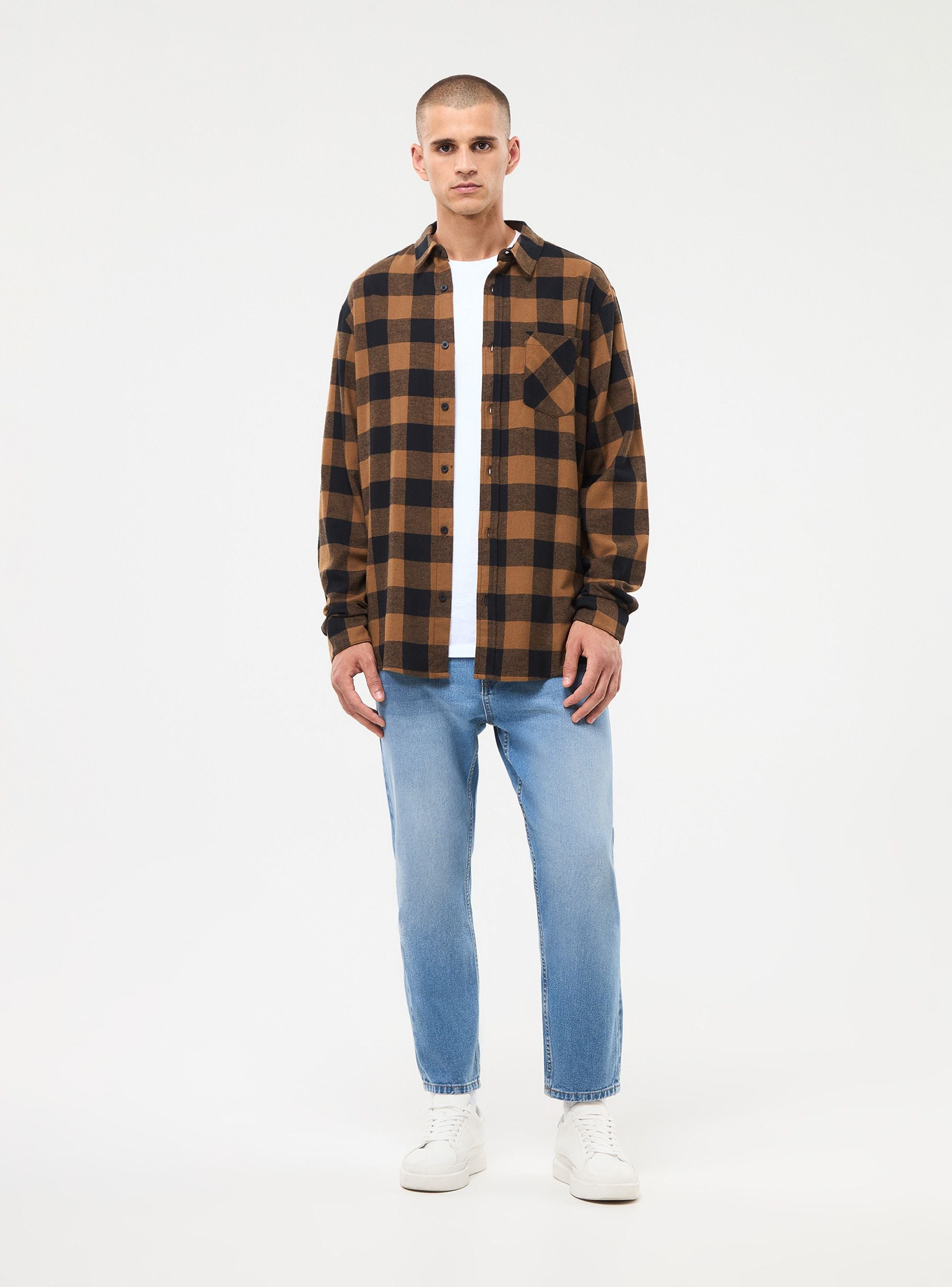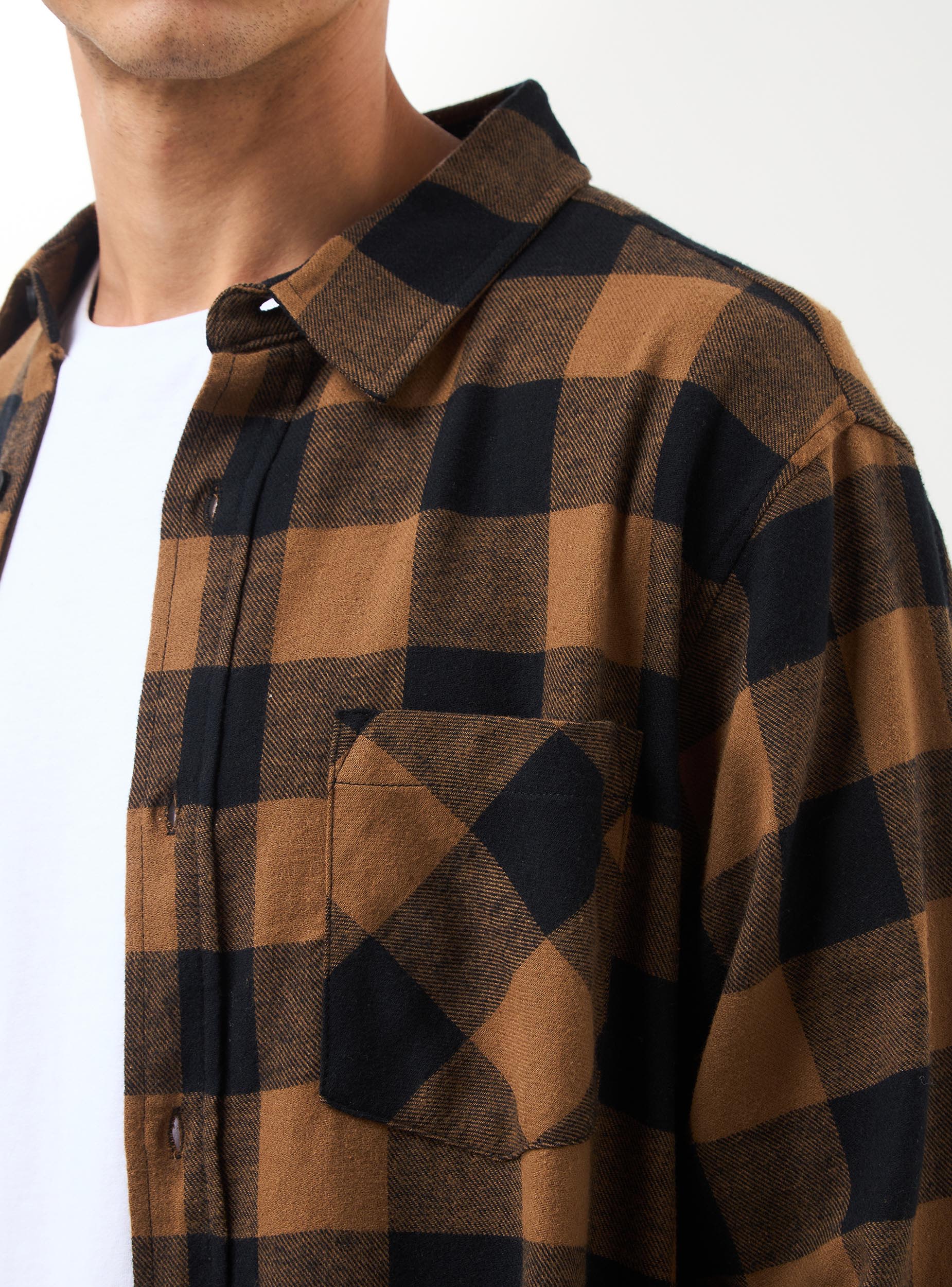 Camicia da uomo a manica lunga con fantasia a quadri, caratterizzata da un tessuto in flanella e una vestibilità regolare. Il capo presenta un colletto tradizionale e una chiusura frontale con bottoni. Sul petto, una tasca applicata aggiunge un tocco di praticità e stile. Ideale per un look casual ma curato, perfetto per essere indossato da solo o abbinato a strati per un outfit versatile.Dettagli