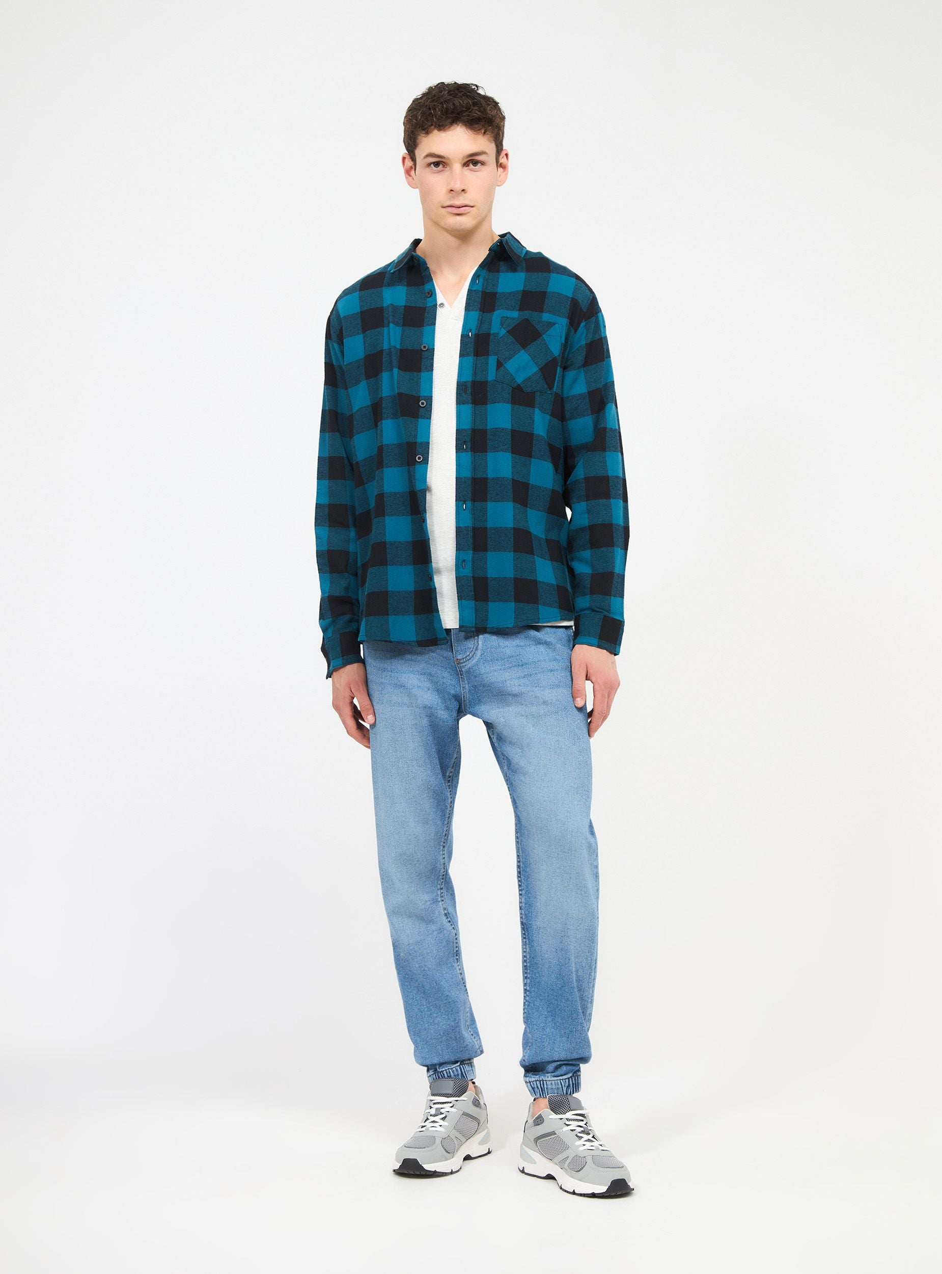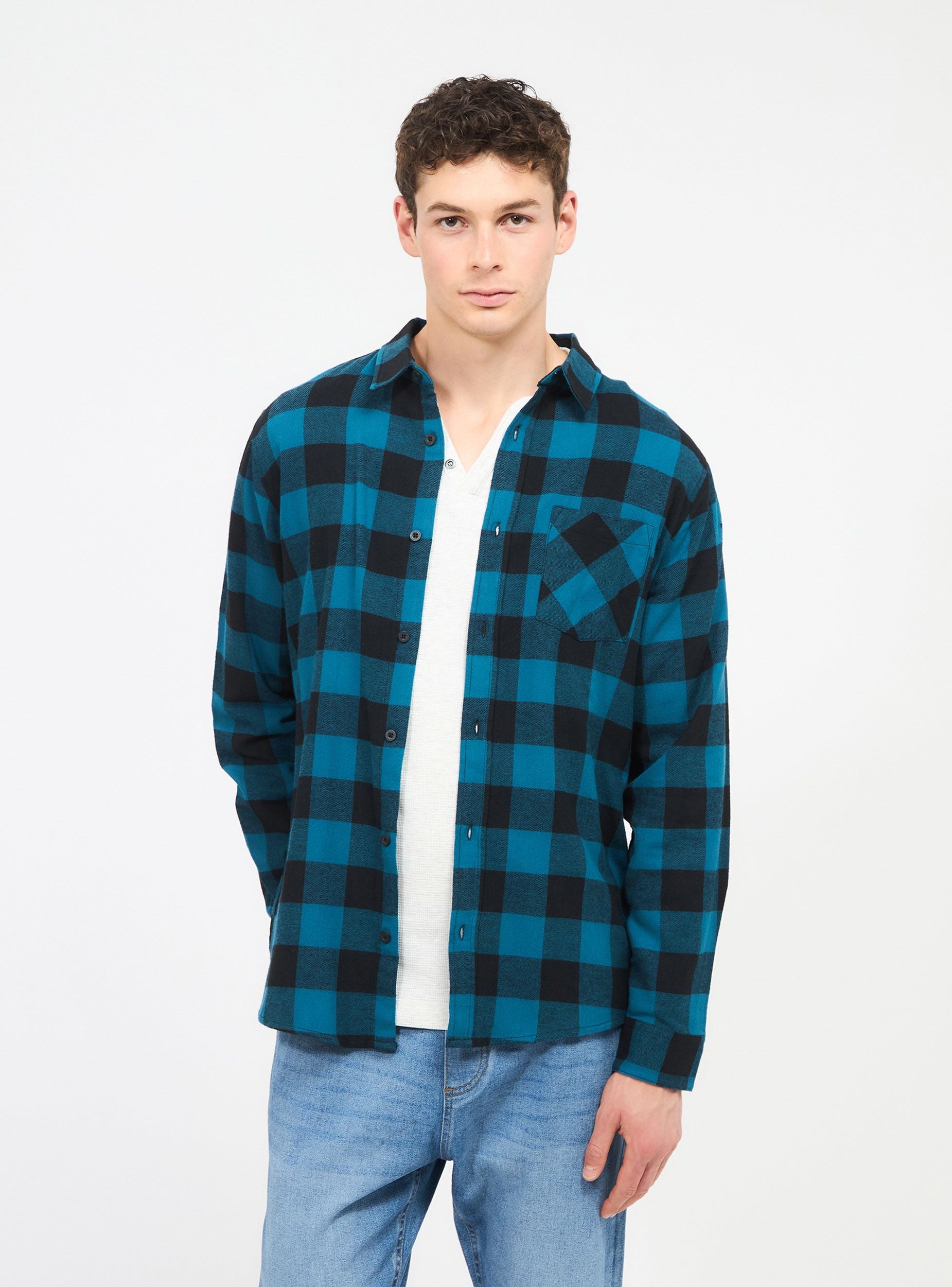 Camicia da uomo a manica lunga con fantasia a quadri, caratterizzata da un tessuto in flanella e una vestibilità regolare. Il capo presenta un colletto tradizionale e una chiusura frontale con bottoni. Sul petto, una tasca applicata aggiunge un tocco di praticità e stile. Ideale per un look casual ma curato, perfetto per essere indossato da solo o abbinato a strati per un outfit versatile.Dettagli