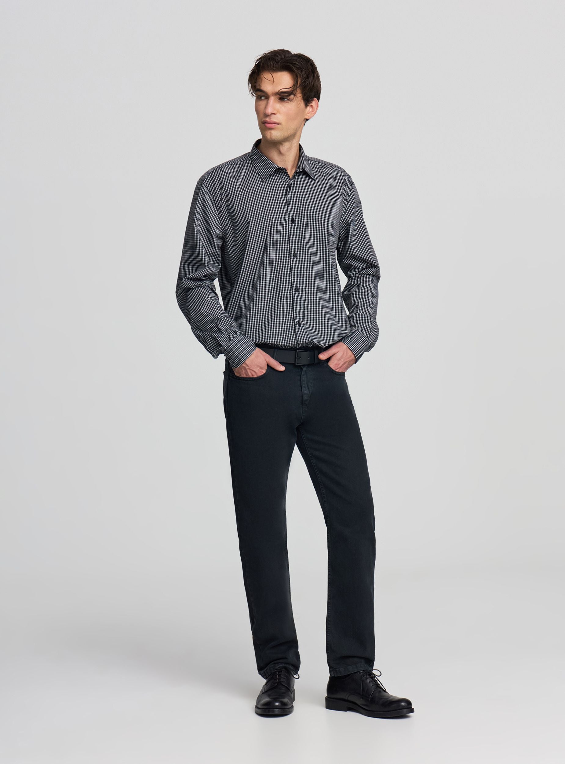 Camicia da uomo a quadri con colletto classico e maniche lunghe. Chiusura frontale con bottoni, ideale per look casual o per l’ufficio sotto una giacca. Vestibilità regular. Si abbina a jeans o pantaloni chino per un outfit versatile.Dettagli