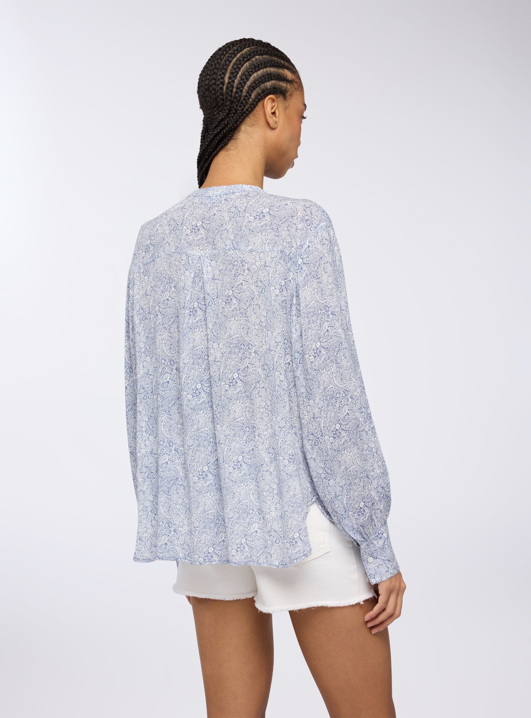 Camicia coreana da donna con un'elegante fantasia crinkle, che dona movimento e un aspetto raffinato al tessuto. Il design fluido si abbina a una linea morbida che esalta la vestibilità confortevole. Perfetta per un look sofisticato e pratico.Dettagli